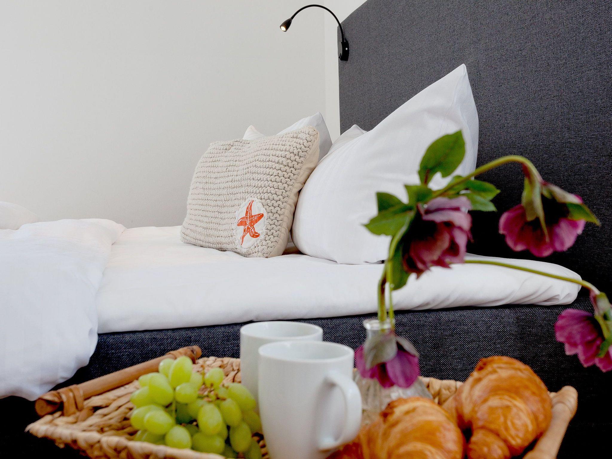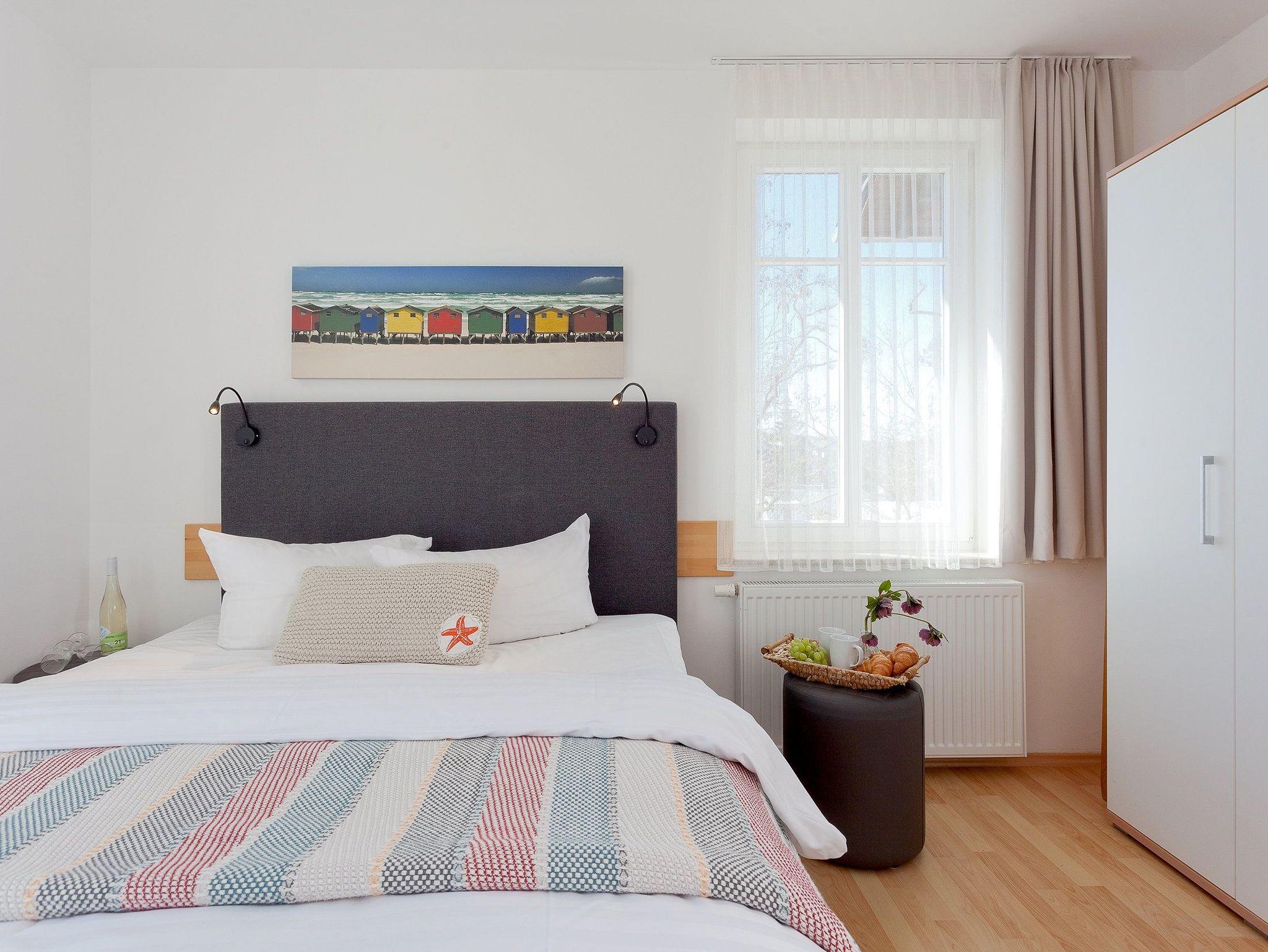 Damit Sie Ihre wohlverdiente Urlaubszeit bereits am Anreisetag in vollen Zügen genießen können, haben wir das Bett für Sie und das für Ihre lieben Mitreisenden bereits bezogen und ein Duschtuch sowie ein kleines Handtuch bereitgelegt. Die Aufbettung für ein Kind ist im Schlafzimmer im Babyreisebett (max. 3 Jahre) oder auf Faltmatratze (3 bis 10 Jahre) 80 x 200 cm möglich. Wohn- und Schlafzimmer verfügen jeweils über bodentiefe Fenster mit kleinem Austritt. Das Badezimmer ist mit Dusche, WC, Handtuchtrockner und Fußbodenheizung ausgestattet.