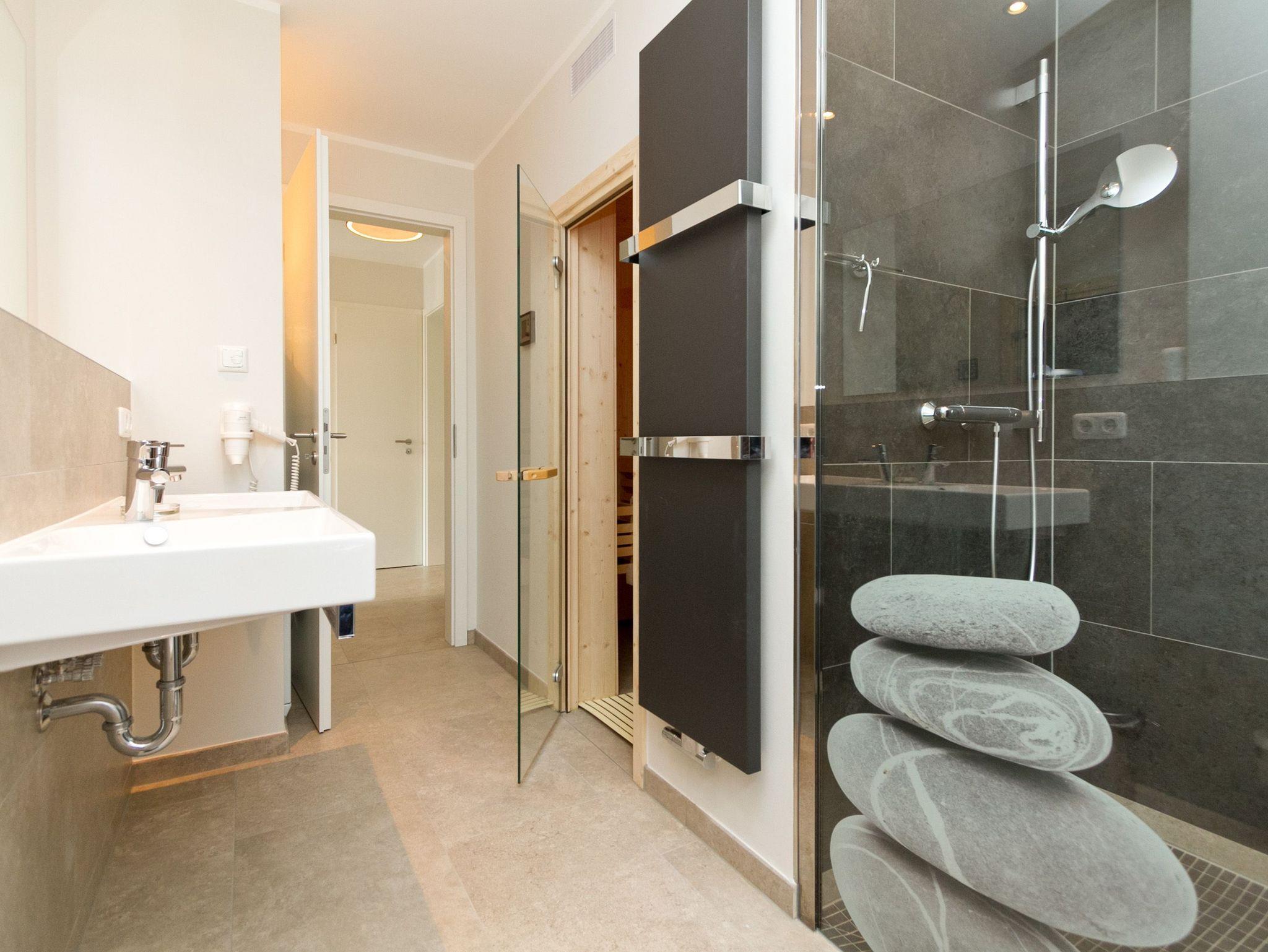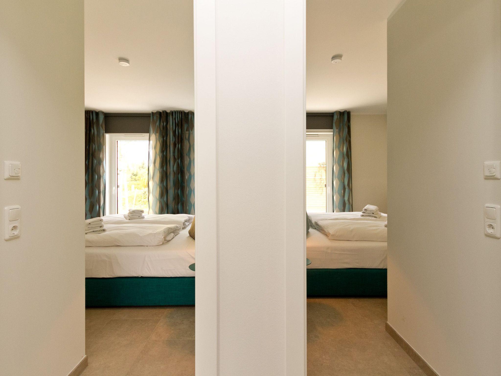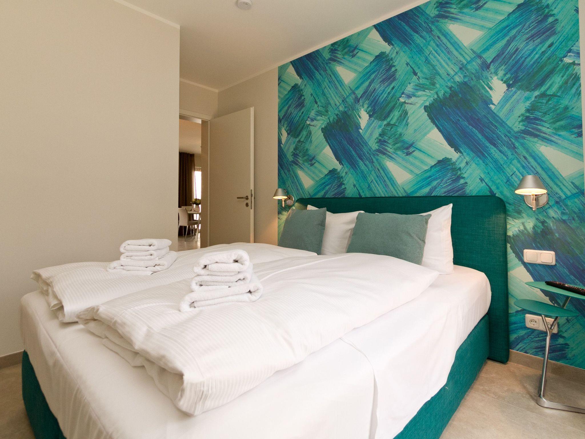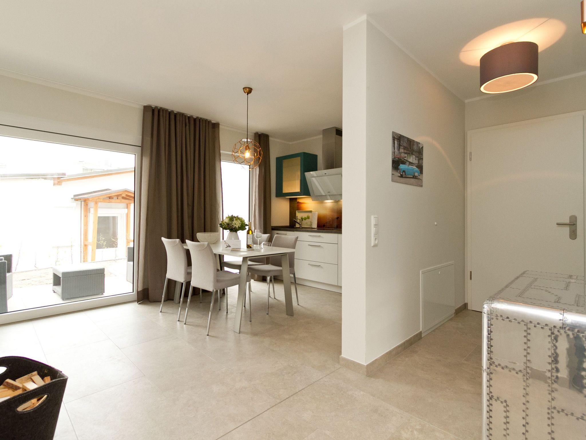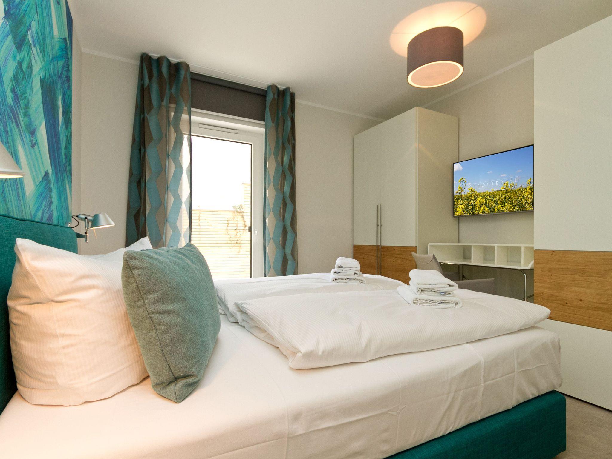 Hell, offen und luftig ist das Ferienappartement 01 in dem wunderschönen Neubau des Quartier Ahlbeck. Modernes Design mit einem ausgewählten Farbkonzept aus hellen Tönen kombiniert mit an das Grün der Insel und das Blau der Ostsee anlehnende Töne geben diesem Feriendomizil einen ganz eigenes Flair. Eine 3-Zimmer-Wohlfühlwelt auf 80 Quadratmetern erwartet Sie hier. Genug Platz für 4 Personen und 1 Kleinkind ( bis 3 Jahre im Kinderreisebett). Die Einrichtung ist elegant und komfortabel. Highlight des großen, offenen Wohn-Ess-Zimmers ist ein von drei Seiten sichtbarer Kamin. Romantisch und urgemütlich, wenn es draußen einmal nicht so schön ist. Ob Flat-TV im Wohnzimmer oder sämtliche hochwertigen Küchengeräte ? in diesem Appartement ist alles auf dem neuesten Stand. Lassen Sie sich in die bequeme Wohnlandschaft fallen, geben Sie sich am schönen Esstisch kulinarischen Köstlichkeiten hin oder genießen Sie auf der, vom Wohnzimmer aus begehbaren Südterrasse die herrliche Usedomer Sonne. Wahrhaft erholsam sind auch die Boxspringdoppelbetten (1,80 m x 2,00 m und 1,60 m x 2,00 m) in den beiden Schlafzimmern. Hier gibt es außerdem viel Ablagefläche für die Urlaubsgarderobe. In einem der Schlafzimmer steht sogar ein kleiner Sekretär. Die beiden Bäder sind mit geräumigen Echtglasduschen, unter denen man auch locker zu zweit seinen Spaß haben könnte, Doppelwaschtischen und WC ausgestattet. Eines der beiden Bäder besitzt darüber hinaus eine Waschmaschine mit Trockner und etwas ganz Besonderes: Eine finnische Sauna. Für einen rundum sorglosen Urlaub in diesem kleinen Paradies sind die Betten bezogen und Handtücher liegen für Sie bereit. Für Ihr Auto steht Ihnen ein Stellplatz am Haus zur Verfügung.