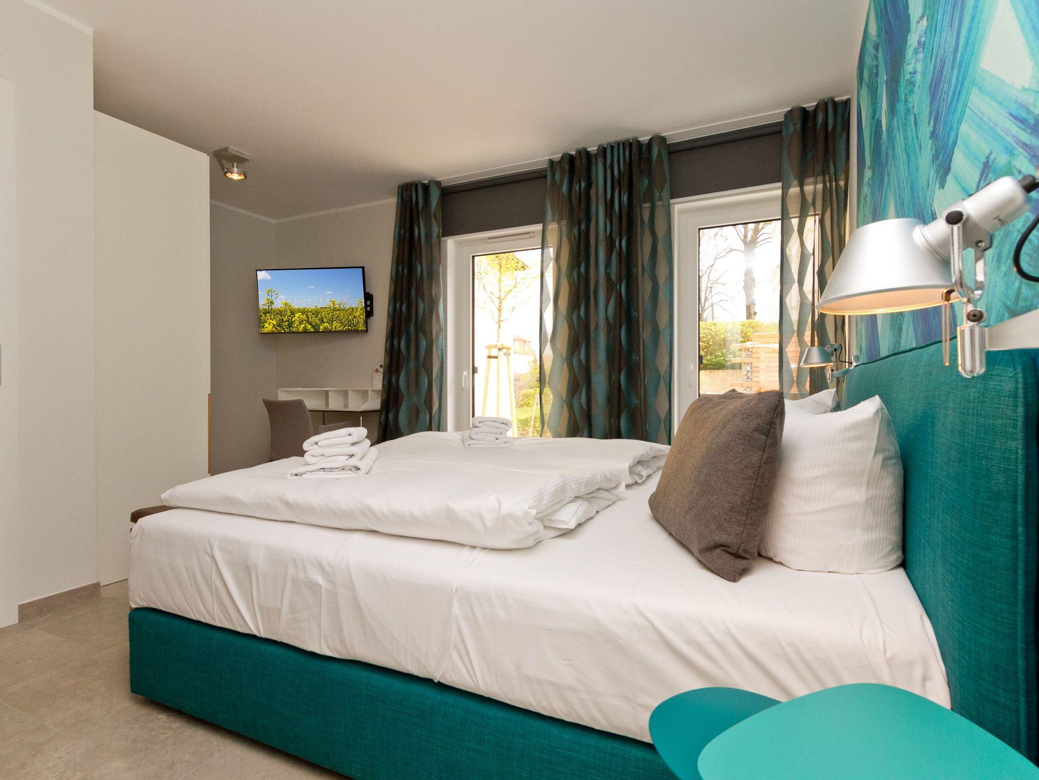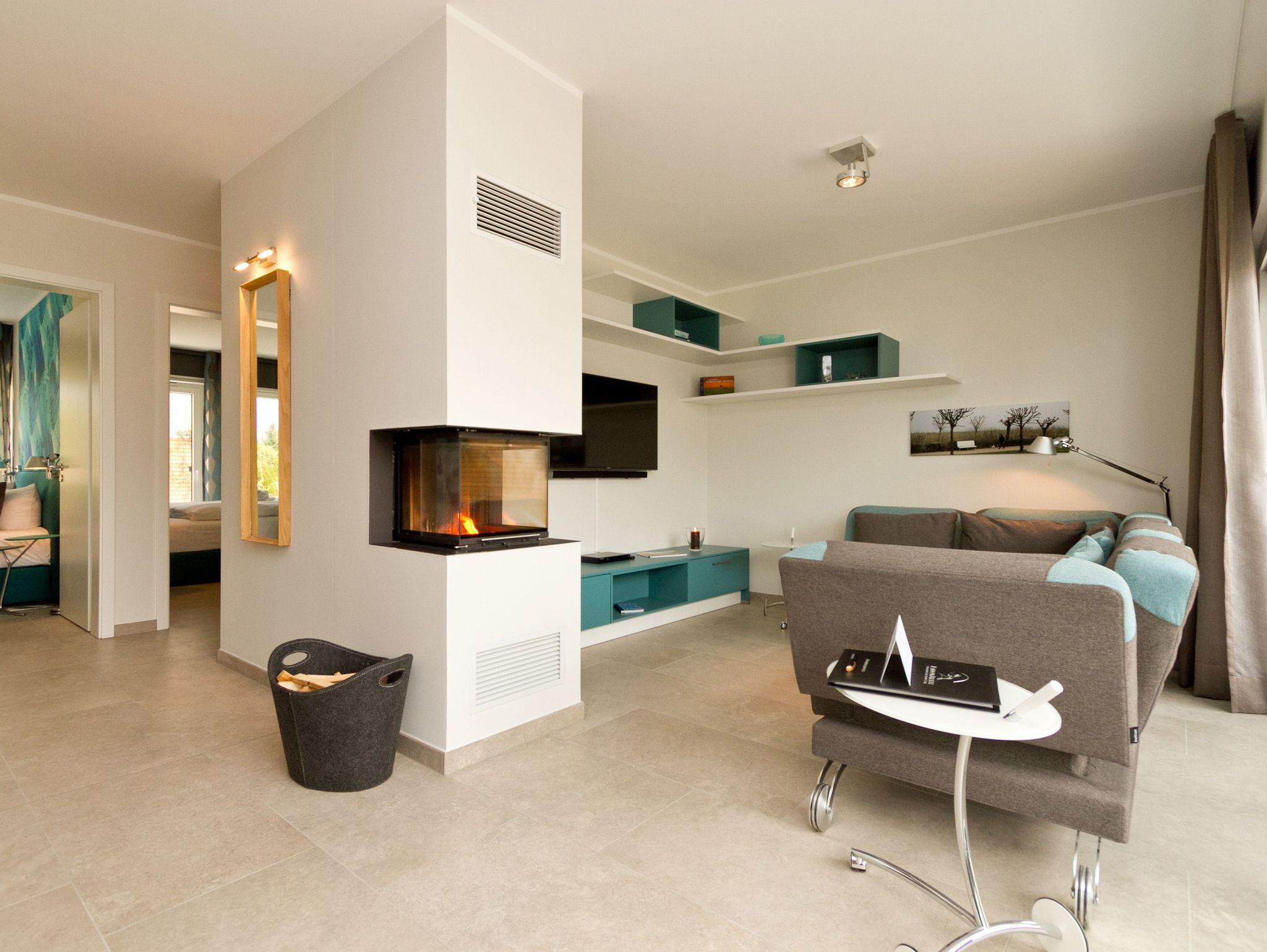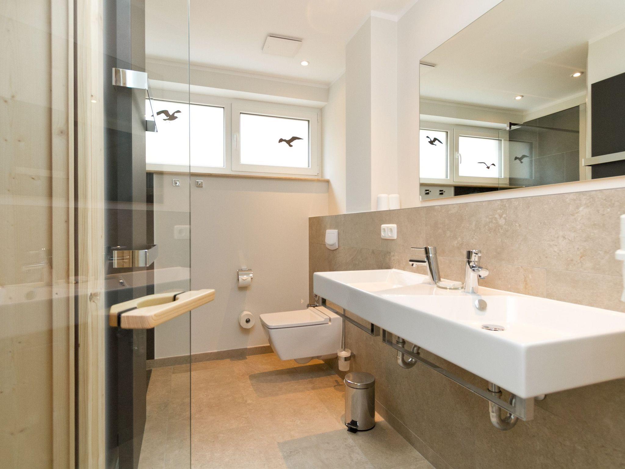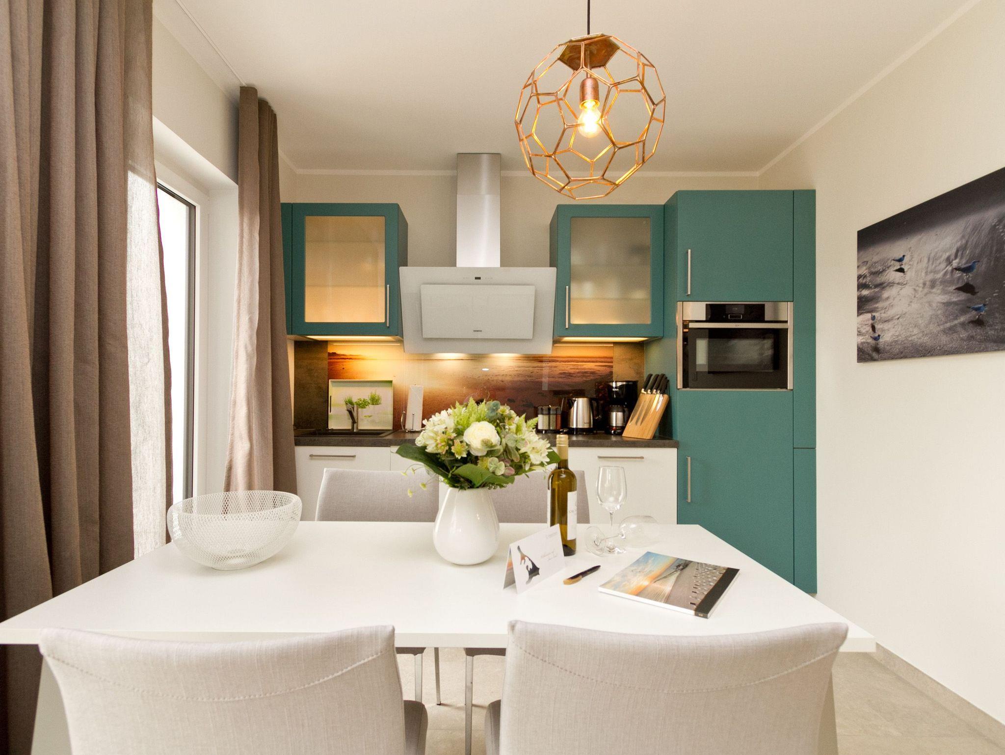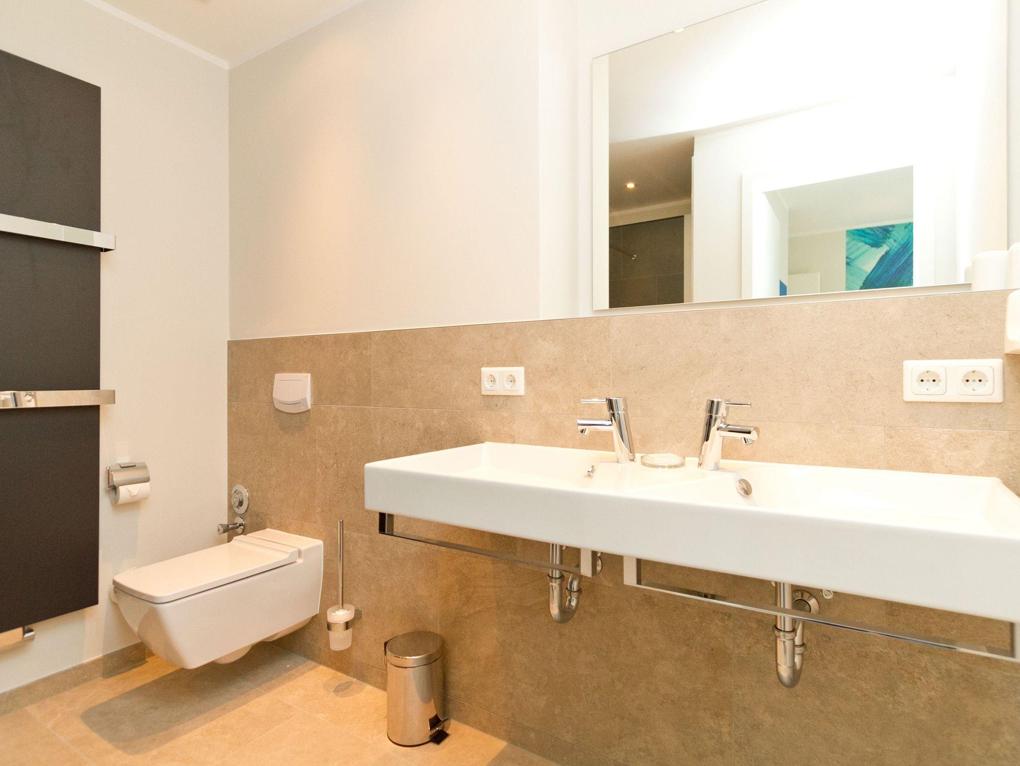 Hell, offen und luftig ist das Ferienappartement 01 in dem wunderschönen Neubau des Quartier Ahlbeck. Modernes Design mit einem ausgewählten Farbkonzept aus hellen Tönen kombiniert mit an das Grün der Insel und das Blau der Ostsee anlehnende Töne geben diesem Feriendomizil einen ganz eigenes Flair. Eine 3-Zimmer-Wohlfühlwelt auf 80 Quadratmetern erwartet Sie hier. Genug Platz für 4 Personen und 1 Kleinkind ( bis 3 Jahre im Kinderreisebett). Die Einrichtung ist elegant und komfortabel. Highlight des großen, offenen Wohn-Ess-Zimmers ist ein von drei Seiten sichtbarer Kamin. Romantisch und urgemütlich, wenn es draußen einmal nicht so schön ist. Ob Flat-TV im Wohnzimmer oder sämtliche hochwertigen Küchengeräte ? in diesem Appartement ist alles auf dem neuesten Stand. Lassen Sie sich in die bequeme Wohnlandschaft fallen, geben Sie sich am schönen Esstisch kulinarischen Köstlichkeiten hin oder genießen Sie auf der, vom Wohnzimmer aus begehbaren Südterrasse die herrliche Usedomer Sonne. Wahrhaft erholsam sind auch die Boxspringdoppelbetten (1,80 m x 2,00 m und 1,60 m x 2,00 m) in den beiden Schlafzimmern. Hier gibt es außerdem viel Ablagefläche für die Urlaubsgarderobe. In einem der Schlafzimmer steht sogar ein kleiner Sekretär. Die beiden Bäder sind mit geräumigen Echtglasduschen, unter denen man auch locker zu zweit seinen Spaß haben könnte, Doppelwaschtischen und WC ausgestattet. Eines der beiden Bäder besitzt darüber hinaus eine Waschmaschine mit Trockner und etwas ganz Besonderes: Eine finnische Sauna. Für einen rundum sorglosen Urlaub in diesem kleinen Paradies sind die Betten bezogen und Handtücher liegen für Sie bereit. Für Ihr Auto steht Ihnen ein Stellplatz am Haus zur Verfügung.