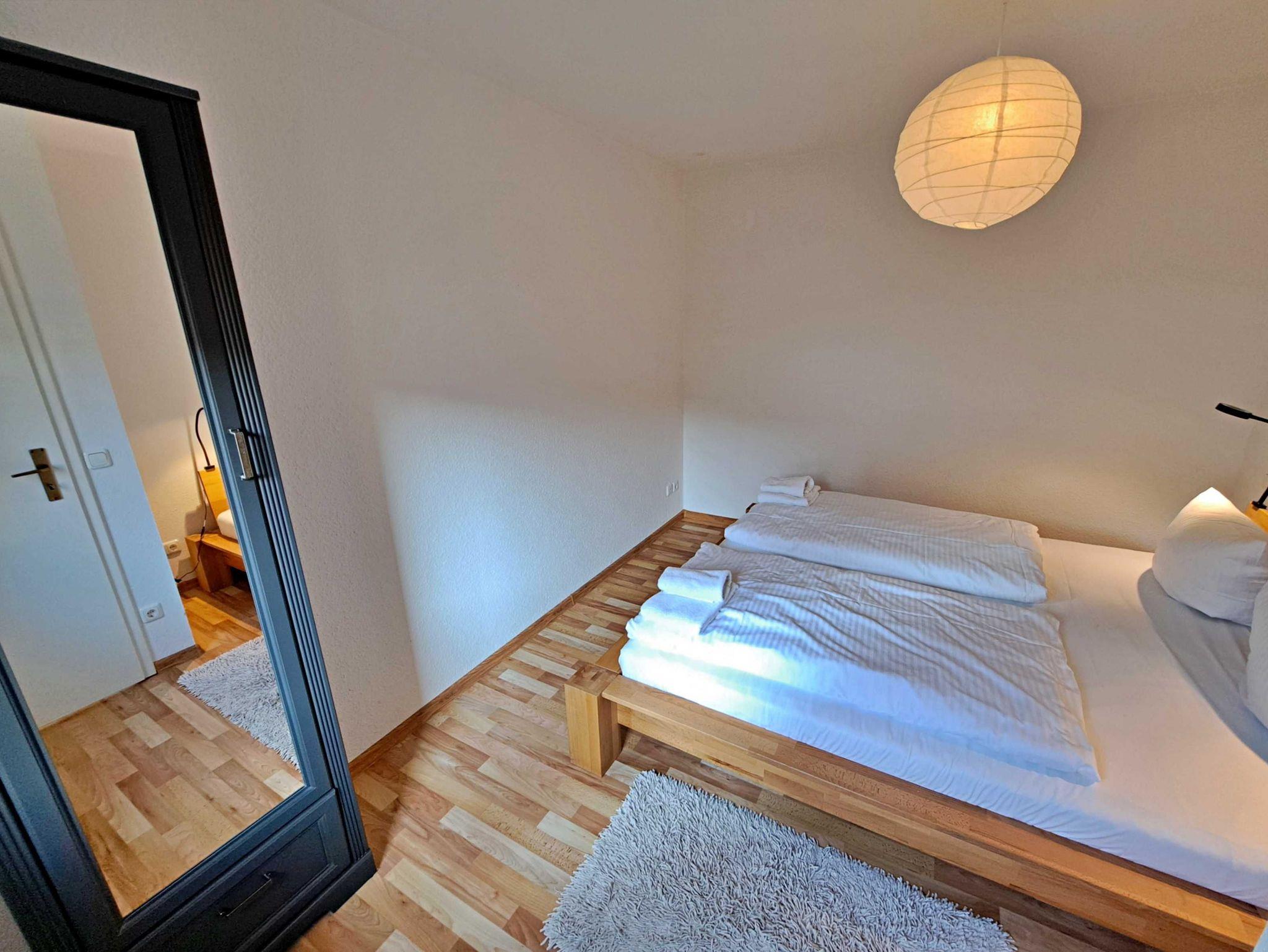 Herzlich willkommen in dieser einladenden Nichtraucher-Wohnung im Erdgeschoss des Nebengebäudes der Villa “Haus Bella”! Auf ca. 38 qm erwartet Sie eine moderne und gemütliche Unterkunft. Die Wohnung verfügt über ein Wohnzimmer, das mit einer bequemen Couchgarnitur ausgestattet ist, die auch als Schlafmöglichkeit für eine Person dient, Flachbild-TV sowie ein komfortables Schlafzimmer mit Doppelbett. Die bestens ausgestattete Küchenzeile bietet Ihnen alles, was Sie für die Zubereitung Ihrer Mahlzeiten benötigen, darunter einen Elektro-Herd, Backofen, Elektro-Herd, Kühlschrank, Wasserkocher, Kaffeemaschine und Toaster. Eine charmante Essecke rundet das Angebot ab. Das Badezimmer ist mit einer Dusche und WC ausgestattet und sorgt für Ihr Wohlbefinden. Als besonderes Highlight erwartet Sie eine eigene Terrasse, auf der Sie bei schönem Wetter bereits morgens Ihren Kaffee genießen oder den Tag bei einem Glas Wein entspannt ausklingen lassen können. Ein Stellplatz für Ihren PKW steht auf dem Grundstück zur Verfügung und natürlich genießen Sie in der gesamten Wohnung kostenfreies WLAN.