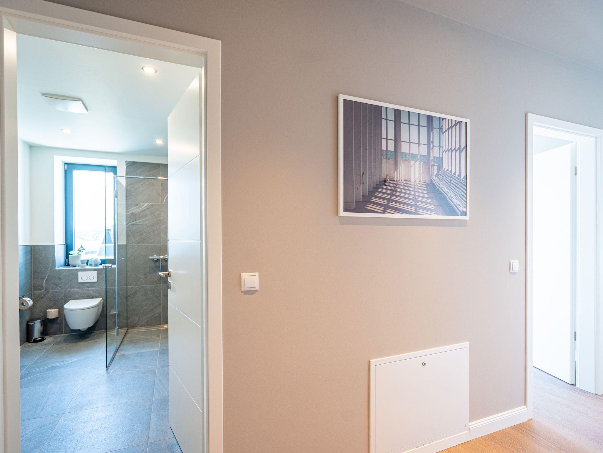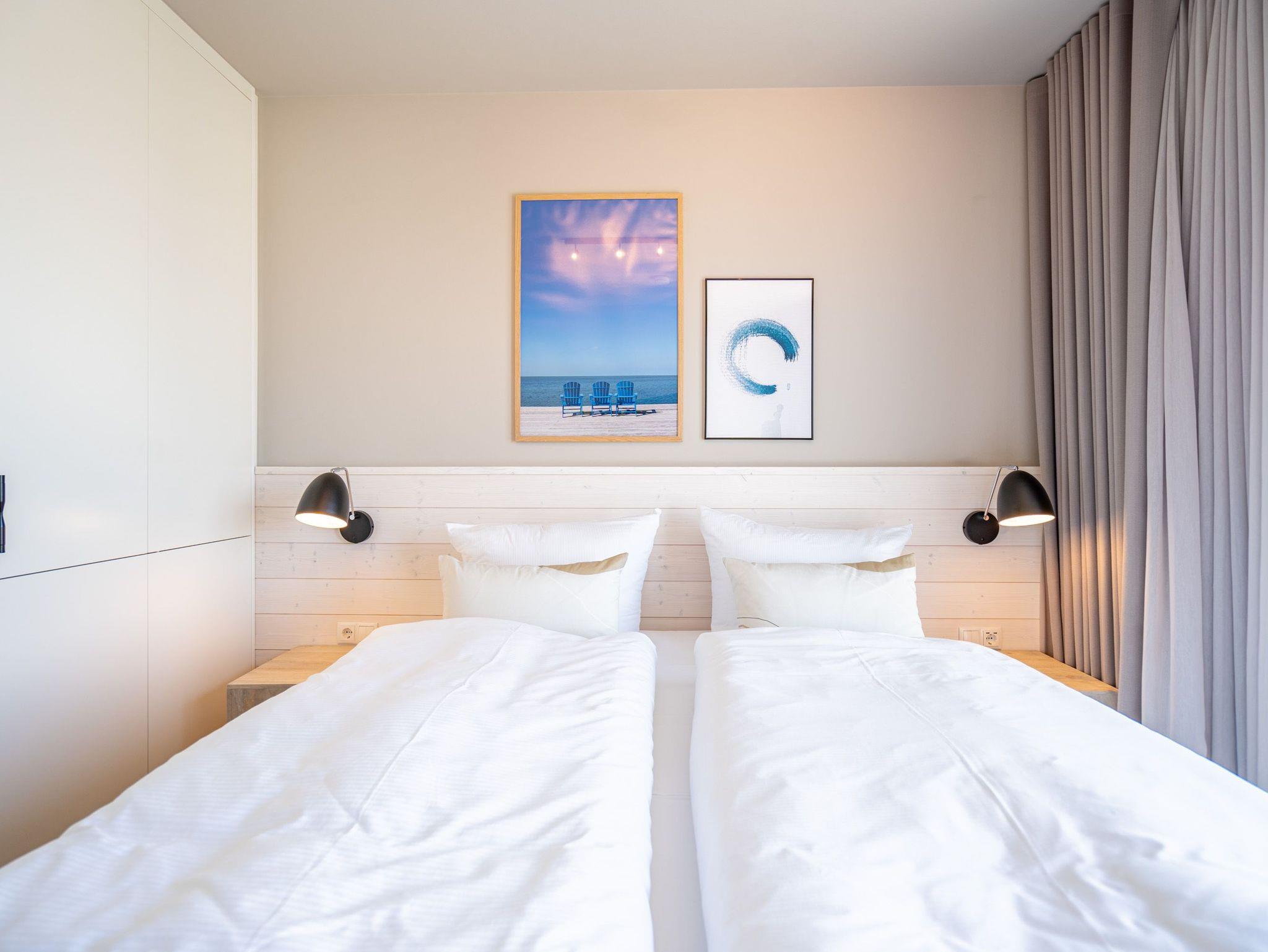 Die 2024 fertig gestellte Strandterrasse liegt direkt an der belebten Strandpromenade und bietet einen einzigartigen Ausblick auf die Grand Dame der historischen Seebrücken sowie die historische Konzertmuschel, einem beliebten Treffpunkt für Kunst und Kultur. Dahinter liegt die Ostsee ? ein Panorama, das zu den schönsten in den Kaiserbädern gehört. Es ist wie das Abtauchen in eine andere Zeit. In eine Zeit, in der man mit Stock, Sonnenschirm und Hut fürs „Sehen und gesehen werden“ über die Promenade schlenderte; aber auch in eine Zeit, in der ? damals wie heute ? Zeit einmal für eine kurze Weile keine Rolle spielt. Weil man angekommen ist im Loslassen, Entspannen und Genießen. Es ist dieser besondere Geruch nach Meeresluft und Freiheit, der in Erinnerung bleibt. Dazu die Bilder, die man mitnimmt. Von langen Strandspaziergängen, vom Lachen in fröhlich schäumenden Ostseewellen, von der Zeit in einem wunderschönen Urlaubsdomizil. Denn genau das ist die Strandterrasse mit ihren 56 modernen und exklusiven Ferienappartements direkt gegenüber der Ahlbecker Seebrücke. Die Ein-, Zwei- oder Dreizimmerwohnungen ? zwischen 40 und 70 Quadratmeter groß ? sind von einer Innenarchitektin gemeinsam mit unserem Erfahrungsschatz an Gästewünschen mit viel Liebe zum Detail und ganz individuell konzipiert worden. Entspannung und Wohlfühlen stehen an erster Stelle. Alles ist aufeinander abgestimmt und sorgt für eine gemütliche Atmosphäre. Wählen Sie zwischen einem Domizil in einem hellen, sandfarbenen Designkonzept oder einem Appartement mit anthrazitfarbenen Farbakzenten. Alle Appartements verfügen gleichermaßen über eine stilvolle und komfortable Einrichtung, die passgenau angefertigt worden ist, sowie über moderne Küchen und Bäder. Jedem Schlafzimmer ist ein eigenes Bad mit Dusche zugeordnet (außer App. B4.5). Die Appartements besitzen fast alle einen Balkon ? viele schauen sogar zur Ostsee hinaus. Die meisten Feriendomizile haben einen Elektrokamin und Infrarotsaunen. Im Erdgeschoss befindet sich ein separater Gemeinschaftsraum für Fahrräder. Außerdem besteht die Möglichkeit, im Gemeinschaftswaschraum 2 Waschmaschinen [&] Trockner zu nutzen. Ergänzt wird das Angebot durch eine Gemeinschaftssauna, die täglich von 11:00 bis 22:00 Uhr nutzbar ist. In der Tiefgarage (Einfahrtshöhe 2,03 Meter) steht für jede Wohnung 1 Pkw-Stellplatz zur Verfügung. Ist alles zur Zufriedenheit untergebracht? Dann kann der Urlaub ja beginnen. Und beim Blick vom Balkon über die Ostsee treffen sich zum Sonnenaufgang das Heute und das Damals. Gelassenheit legt sich beim Gang hinunter an den Strand auf die Seele. Jetzt darf die Zeit stehenbleiben.