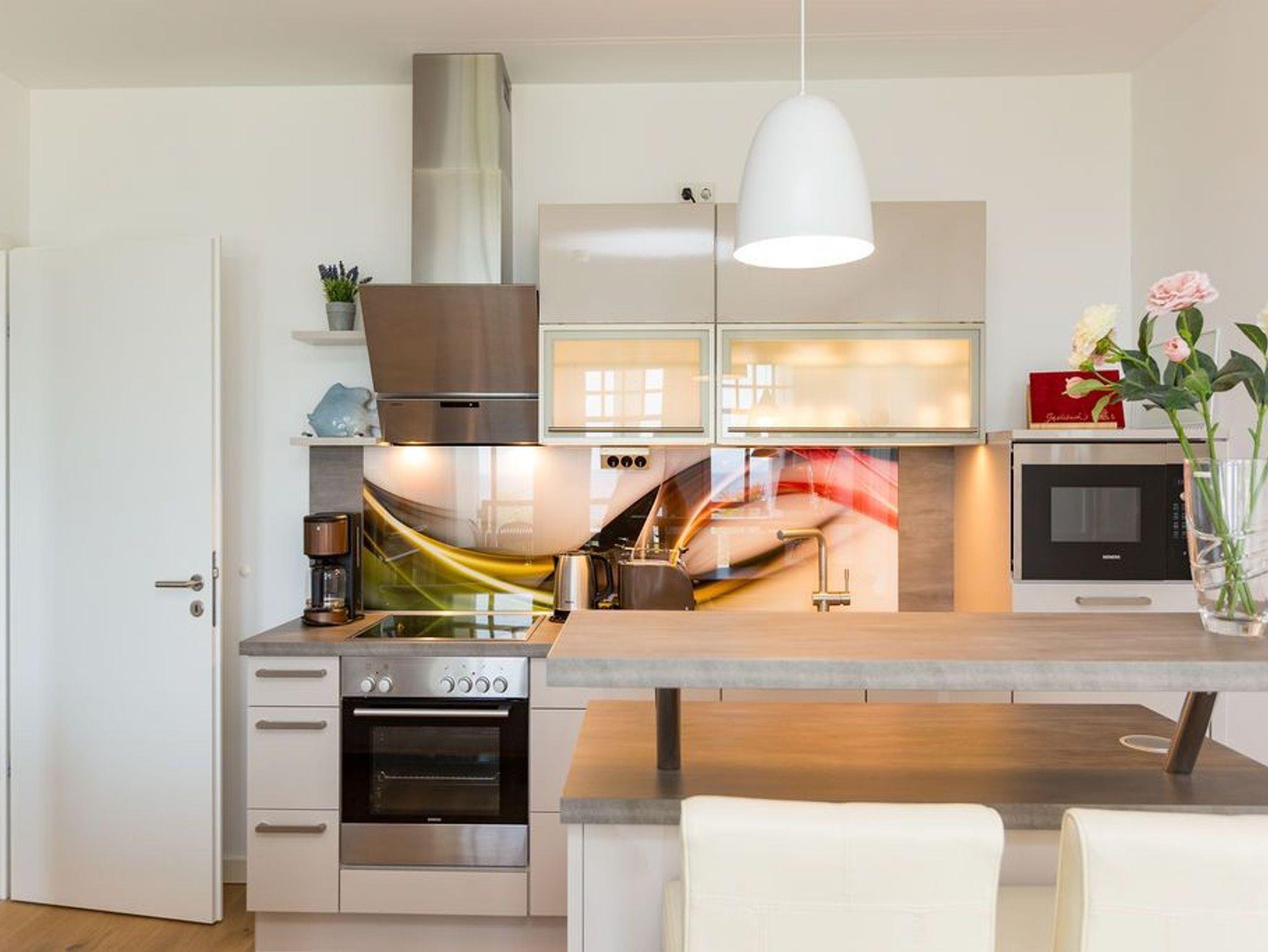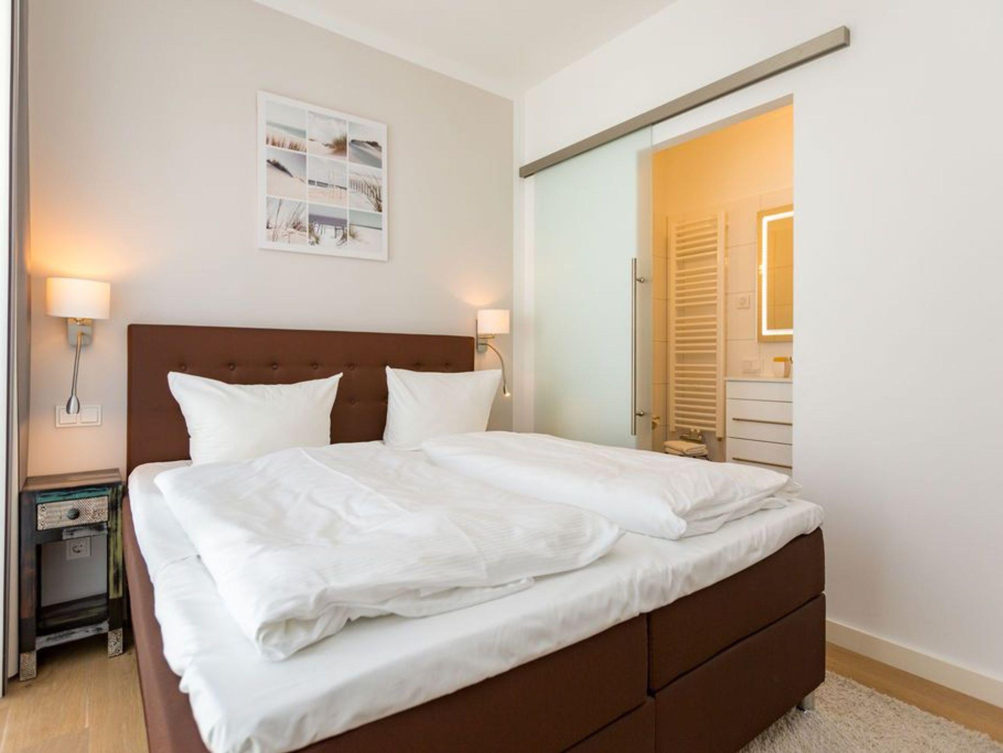 In der Ferienwohnung Nr. 12 der Villa Westend stimmt es einfach. Sie logieren unmittelbar am Meer, zum Strand sind es nur wenige Schritte. Erleben Sie den Sonnenaufgang über dem Meer von Ihrem Balkon aus. Der schöne helle Wohnbereich ist ausgestattet mit einer gemütlichen Sitzgruppe, Flat-TV [&] Elektrokamin ( mit Fernbedienung zu bedienen). Die offene Küche ist voll ausgestattet und bietet neben einem Küchentresen mit 2 Sitzplätzen ebenso einen schönen Essplatz. Von hier aus hat man Zugang zum Balkon mit Gartenmöbeln. Beide Schlafzimmer verfügen über Boxspringdoppelbetten (1,80m x 2,00m) und Flat-TV, selbst von einem der beiden hat man direkt aus dem Bett einen fantastischen Blick auf die Ostsee. Für Ihren Komfort sind die Betten bezogen und Handtücher liegen bereit ( als Erstausstattung). Die Badezimmer haben eine Dusche, WC [&] Waschtisch. Als zusätzliches Highlight der Wohnung befindet sich im größeren Bad eine Finnische Sauna. Für Ihren PKW steht 1 Stellplatz ( Nr. 30) kostenfrei zur Verfügung. Das WLAN-Netz kann ebenso kostenfrei genutzt werden.