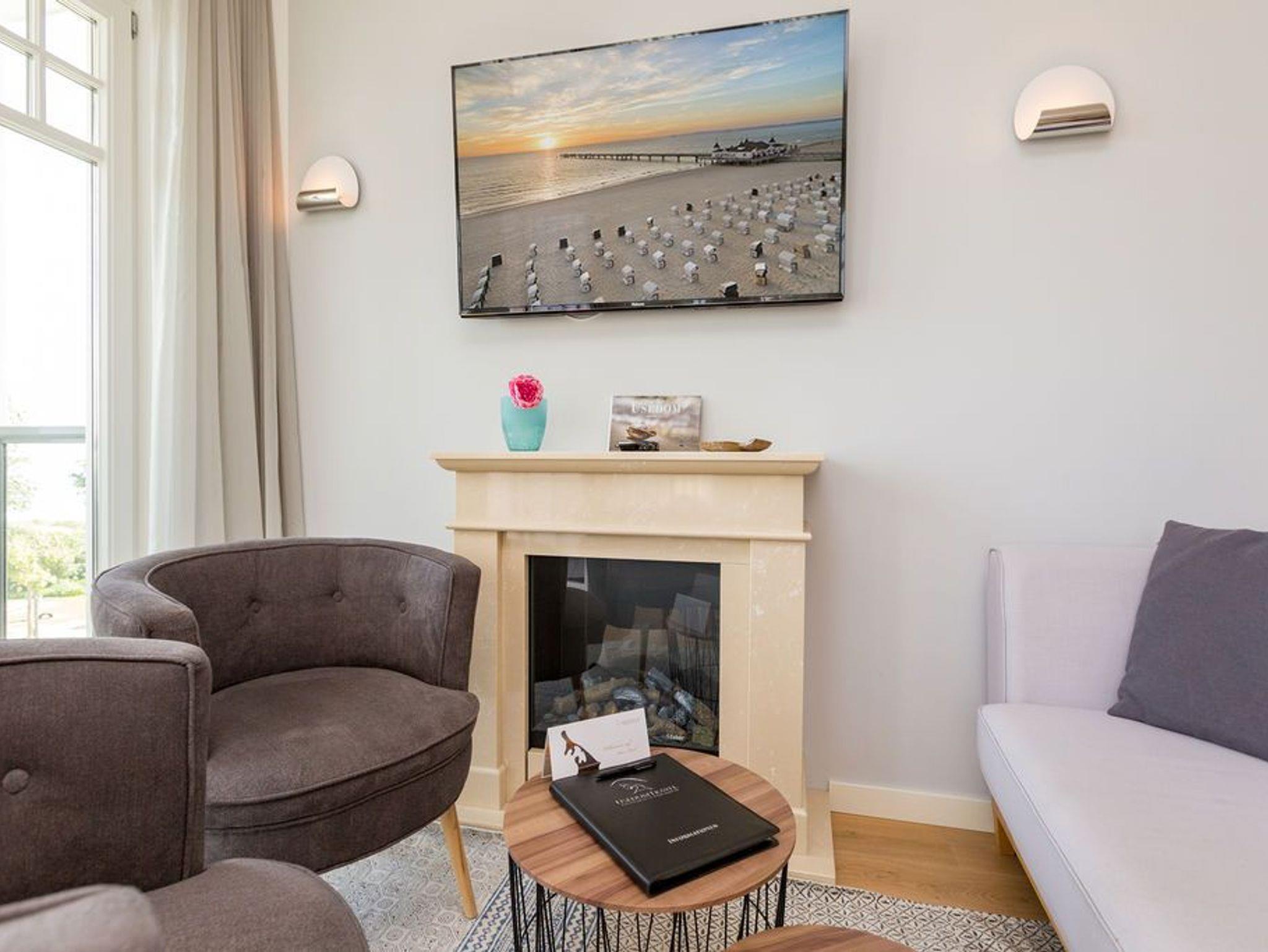 Meeresrauschen [&] Sonnenaufgang - Die Villa Westend im Seebad Ahlbeck ist ein Domizil der Extraklasse. Die Ausstattung der 3- und 4-Raum-Appartements wurde von Interieur-Designern mit sehr viel Liebe zum Detail geplant und gestaltet. Hochwertige Materialien, ausgesuchte Farben und Dekorationen und die Elektrokamine zaubern hier das passende Urlaubsambiente. Die wohnungseigenen Saunen sorgen nicht nur in der kalten Jahreszeit für eine angenehme Abwechslung vom Alltag. Und das Meer liegt quasi vor Ihrer Haustür, nur ein paar Schritte über die Promenade - schon stehen Sie mit den Füßen im Sand. Aus vielen der Appartements genießen Sie einen wunderschönen Blick auf die Ostsee. Möblierte Balkone und Terrassen laden zum Relaxen ein. Ihre Villa Westend freut sich auf Sie und wird Sie mit traumhaften Urlaubstagen auf Usedom verwöhnen! Ihr Fahrzeug parken Sie ganz bequem auf einem Stellplatz in der Tiefgarage des Hauses. Ihre Fahrräder können Sie ebenfalls in der Tiefgarage im Fahrradabstellraum abstellen.