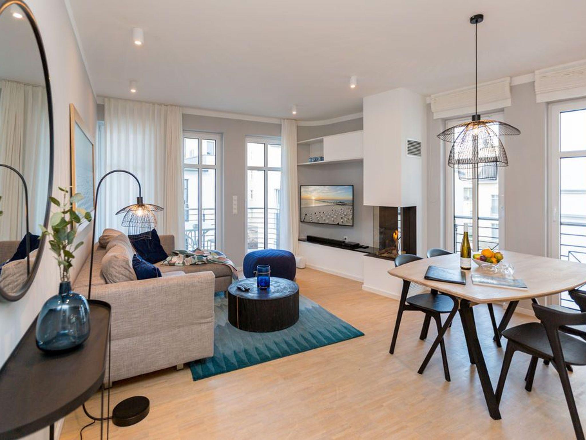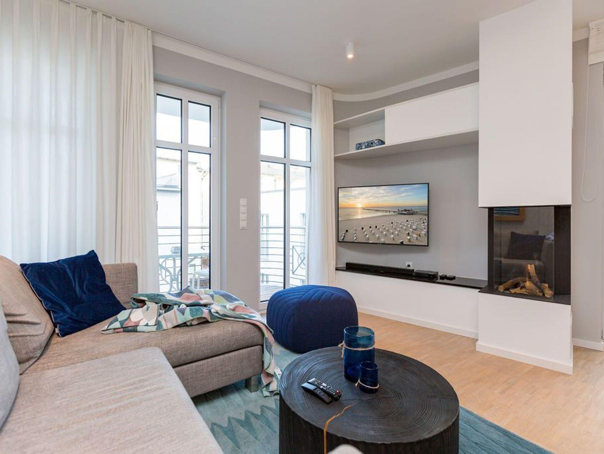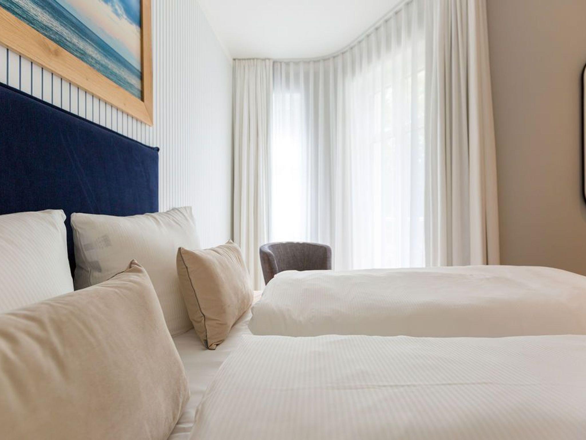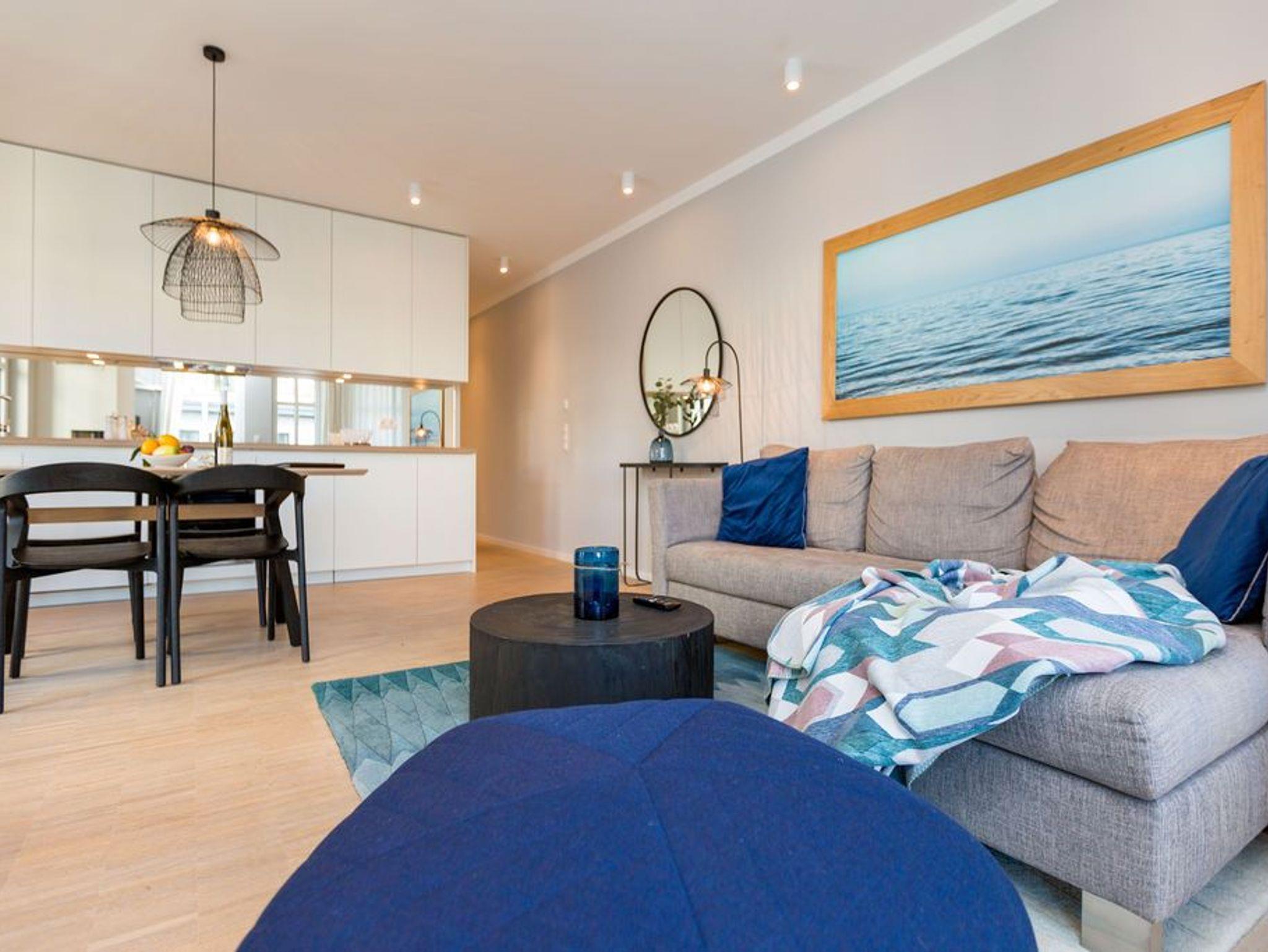 Die Räume - lichtdurchflutet, das Design - nordisch nobel: Für jeden, der ein geschmack- und stilvolles Urlaubszuhause an der Ostsee sucht, ist das Appartement Nummer 4 im ersten Obergeschoss genau das Richtige. Eine 74 Quadratmeter große Wohlfühlzone verteilt auf drei Zimmer wartet nur darauf, vier Urlaubssehnsüchtigen und einem Kleinkind bis zwei Jahre (im Kinderreisebett) ein unvergleichlich schönes und stylisches Domizil zu sein. Ein großes und geräumiges Wohnzimmer mit offener Küche, zwei Schlafzimmer, zwei Bädern und auch zwei Balkonen - da bleiben keine Urlaubswohnträume unerfüllt. Eine komfortable Sofalandschaft empfängt Auszeithungrige. Entspannen Sie vor dem Flammenspiel des 3-D-Gaskamins oder beim Schauen eines spannenden Films auf dem Flat-TV. Alles ist hell und freundlich. Der Design-Esstisch mit den Design-Stühlen lädt zum Schlemmen und gemeinsamen Zusammensitzen ein. Die dazu gehörige Küche ist mit hochwertigen Geräten der Marke Bosch voll ausgestattet. Induktionsherd, Mikrowelle, Geschirrspüler - alles Highend. Auch Geschirr ist in den Küchenschränken zu finden. Das Wohnzimmer hat einen Zugang zu einem der beiden Balkone in Richtung Nord-West. Wenn das Wetter es zulässt - was auf Usedom recht häufig der Fall ist - können Sie auch hier an den Gartenmöbeln entspannt dinieren. Der zweite Balkon in Richtung Süd-Ost ist von einem der beiden gemütlichen Schlafzimmer aus zugänglich. Maritimes Flair strahlen die beiden Zimmer aus. Je ein komfortables Boxspringdoppelbett (1,60 m x 2,00 m und 1,80 m x 2,00 m) schenkt erholsame Stunden. Jedes Schlafzimmer verfügt über einen Flat-TV und einen geräumigen Kleiderschrank. Das Master-Bad besitzt neben einer Dusche, Waschtisch und WC ein kleines Highlight. Eine Finnische Sauna heizt Ihnen an kühlen Tagen ordentlich ein. Das zweite Badezimmer hat ebenfalls eine Dusche, Waschtisch und WC. Wunderschöne Vintage-Fliesen geben ihm ein exklusives Ambiente. Zur Ausstattung der Wohnung gehört zudem ein Voll-Waschtrockner dazu. Um Handtücher oder das Beziehen der Betten, brauchen Sie sich nicht zu kümmern. Alles ist für Sie bei Anreise vorbereitet. Der Stellplatz Nummer 4 in der Tiefgarage ist für Sie reserviert.