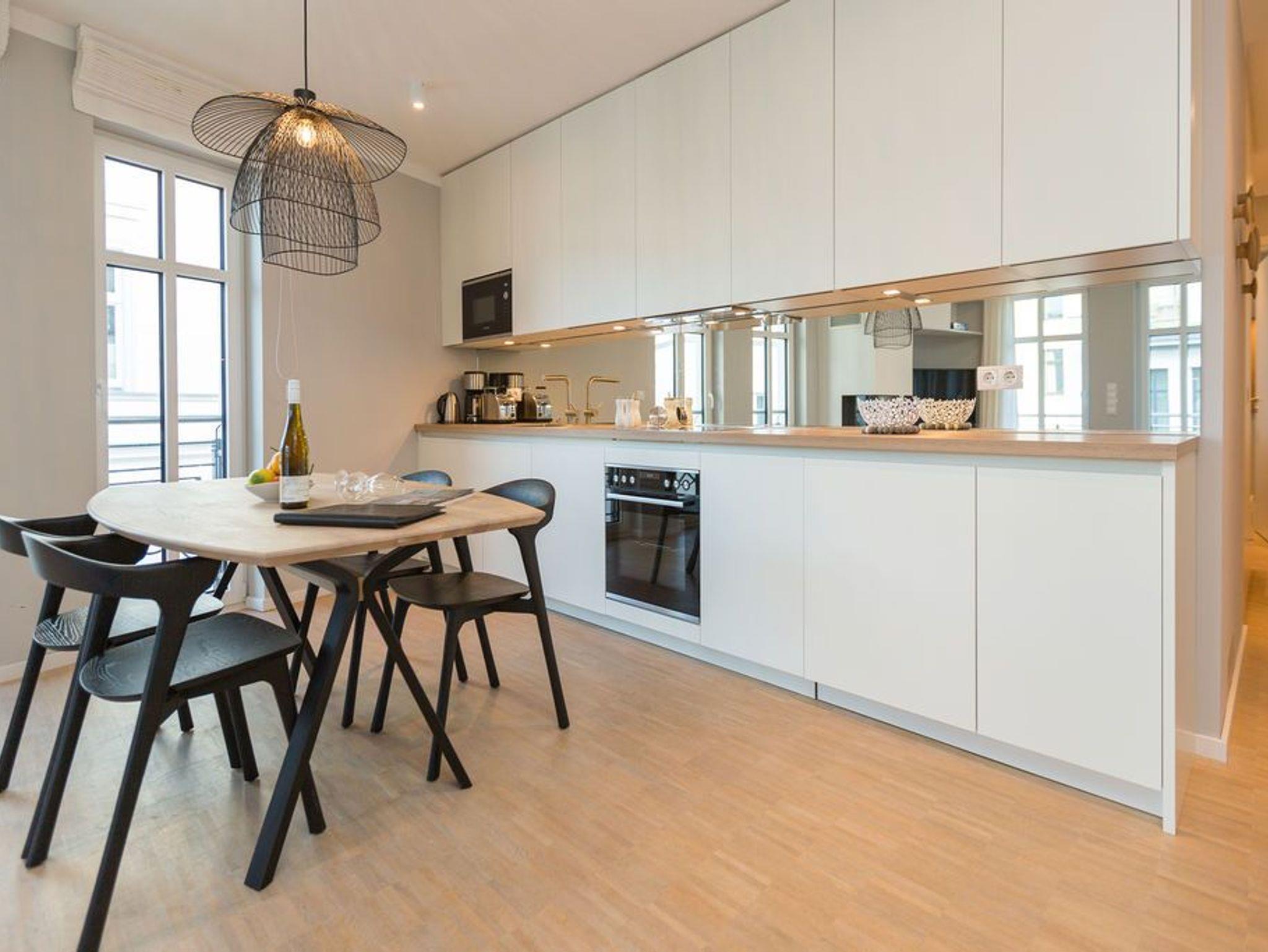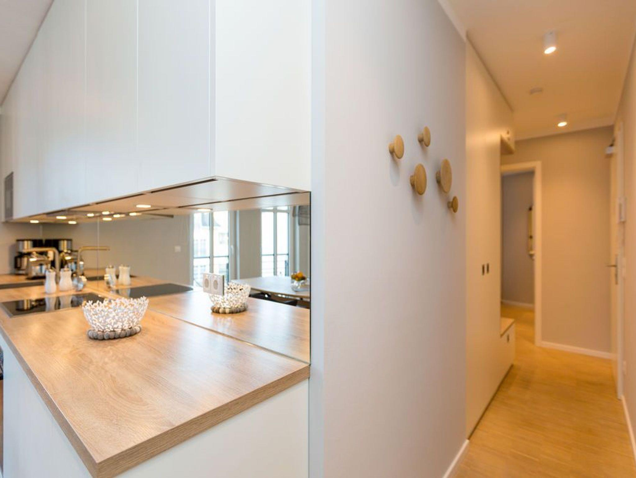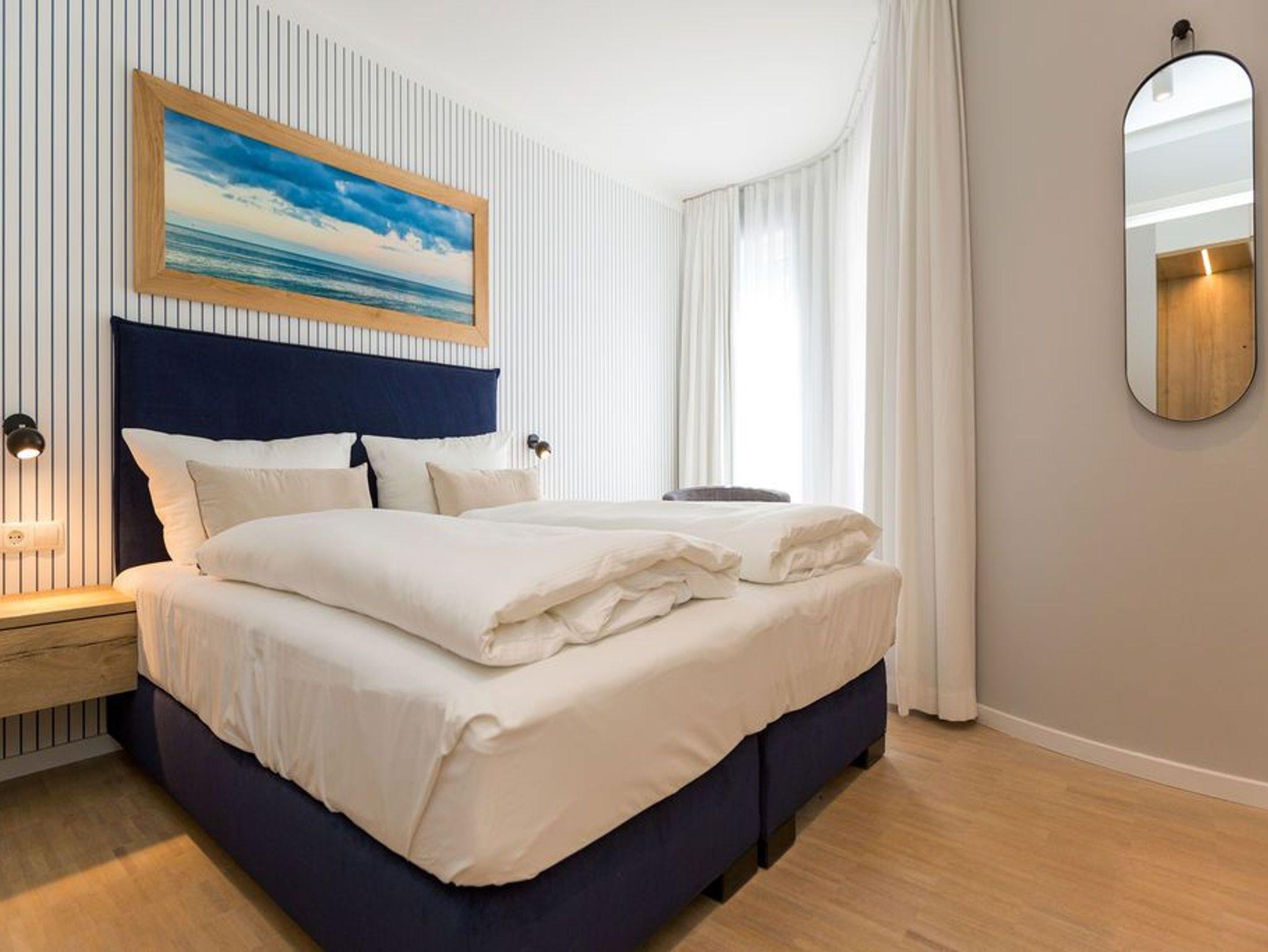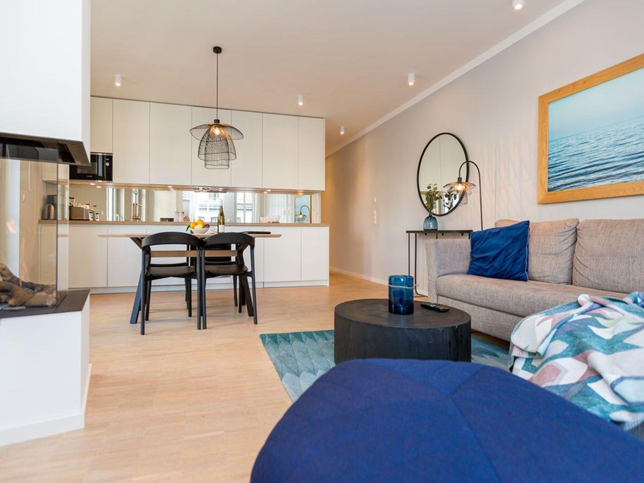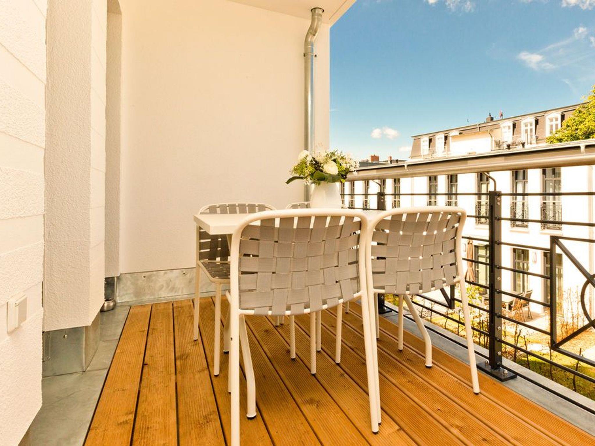 Die Räume - lichtdurchflutet, das Design - nordisch nobel: Für jeden, der ein geschmack- und stilvolles Urlaubszuhause an der Ostsee sucht, ist das Appartement Nummer 4 im ersten Obergeschoss genau das Richtige. Eine 74 Quadratmeter große Wohlfühlzone verteilt auf drei Zimmer wartet nur darauf, vier Urlaubssehnsüchtigen und einem Kleinkind bis zwei Jahre (im Kinderreisebett) ein unvergleichlich schönes und stylisches Domizil zu sein. Ein großes und geräumiges Wohnzimmer mit offener Küche, zwei Schlafzimmer, zwei Bädern und auch zwei Balkonen - da bleiben keine Urlaubswohnträume unerfüllt. Eine komfortable Sofalandschaft empfängt Auszeithungrige. Entspannen Sie vor dem Flammenspiel des 3-D-Gaskamins oder beim Schauen eines spannenden Films auf dem Flat-TV. Alles ist hell und freundlich. Der Design-Esstisch mit den Design-Stühlen lädt zum Schlemmen und gemeinsamen Zusammensitzen ein. Die dazu gehörige Küche ist mit hochwertigen Geräten der Marke Bosch voll ausgestattet. Induktionsherd, Mikrowelle, Geschirrspüler - alles Highend. Auch Geschirr ist in den Küchenschränken zu finden. Das Wohnzimmer hat einen Zugang zu einem der beiden Balkone in Richtung Nord-West. Wenn das Wetter es zulässt - was auf Usedom recht häufig der Fall ist - können Sie auch hier an den Gartenmöbeln entspannt dinieren. Der zweite Balkon in Richtung Süd-Ost ist von einem der beiden gemütlichen Schlafzimmer aus zugänglich. Maritimes Flair strahlen die beiden Zimmer aus. Je ein komfortables Boxspringdoppelbett (1,60 m x 2,00 m und 1,80 m x 2,00 m) schenkt erholsame Stunden. Jedes Schlafzimmer verfügt über einen Flat-TV und einen geräumigen Kleiderschrank. Das Master-Bad besitzt neben einer Dusche, Waschtisch und WC ein kleines Highlight. Eine Finnische Sauna heizt Ihnen an kühlen Tagen ordentlich ein. Das zweite Badezimmer hat ebenfalls eine Dusche, Waschtisch und WC. Wunderschöne Vintage-Fliesen geben ihm ein exklusives Ambiente. Zur Ausstattung der Wohnung gehört zudem ein Voll-Waschtrockner dazu. Um Handtücher oder das Beziehen der Betten, brauchen Sie sich nicht zu kümmern. Alles ist für Sie bei Anreise vorbereitet. Der Stellplatz Nummer 4 in der Tiefgarage ist für Sie reserviert.