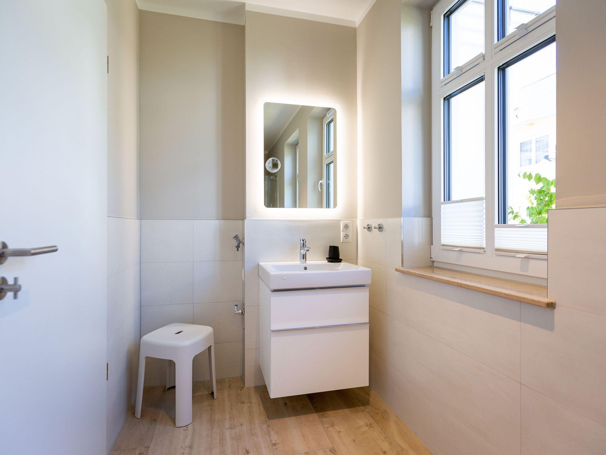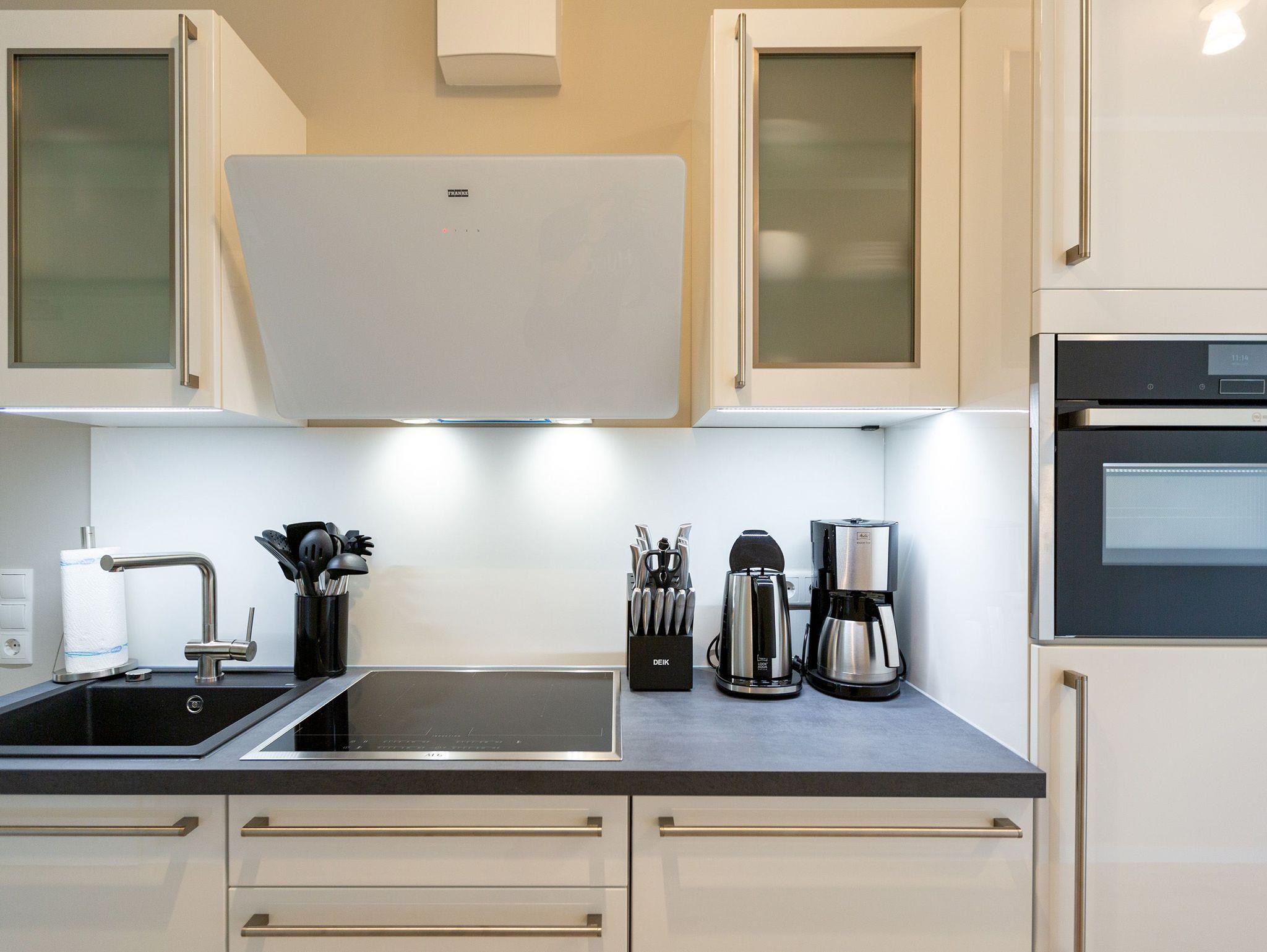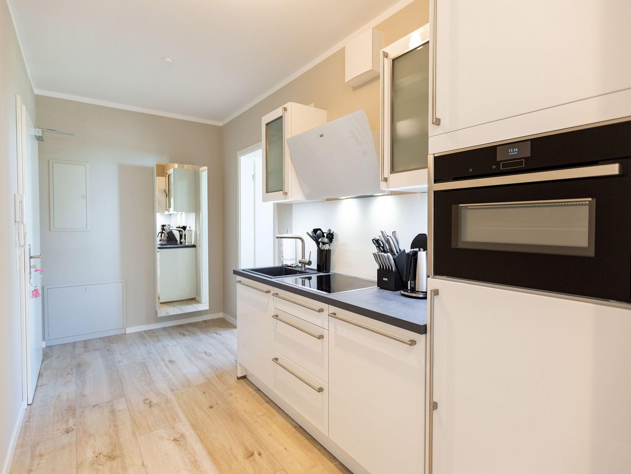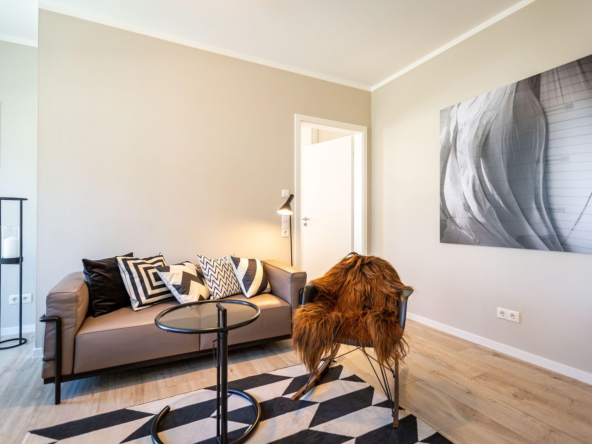 Dieses kleine, aber feine Design-Appartement für zwei Personen mit Kleinkind (im Kinderreisebett) ist das perfekte Erholungsrefugium für alle, die es gern schick, modern und stylisch mögen. Auch Ihren geliebten Vierbeiner dürfen Sie hier mitbringen. Wohlfühlen auf 50 Quadratmetern ist hier garantiert. Da sich das Appartement im Erdgeschoss befindet, hat es Zugang zu einer ? natürlich nur für Sie reservierten und zur Wohnung gehörenden ? Sonnenterasse mit Strandkorb und Gartenmöbeln. Mitten im Grün und umgeben von wunderschönen Bädervillen können Sie hier eine entspannte Zeit beim Essen oder Sonnenbaden genießen. Das Wohnzimmer dieses Zwei-Raum-Appartements ist modern und elegant mit ausgesuchten Design-Möbeln eingerichtet. Die Cassina Couch nach dem berühmten Design von Le Corbusier, aber auch der Schalen-Schaukelstuhl eignen sich perfekt zum Runterkommen und Faulenzen. Ein großer Flat TV (50 Zoll) sorgt für Unterhaltung. An kühlen Inseltagen wärmt der Kaminofen und sorgt für eine gemütliche und romantische Atmosphäre. Die an das Wohnzimmer angrenzende Küche ist mit hochwertigen Markengeräten voll ausgestattet. Ob Qualitätsmesser-Set, Induktionsherd, Senseo Padmaschine, Geschirrspüler oder das Geschirr selbst ? hier werden Sie alles zu Ihrer Zufriedenheit vorfinden. Kochen macht mit diesem Equipment sogar im Urlaub Spaß. Im Wohnzimmer befindet sich zudem ein schöner Essplatz. Im Schlafzimmer wartet viel Gemütlichkeit mit einem bequemen Boxspringdoppelbett (1,60 m x 2,00 m) auf Sie. Viel Platz für die Urlaubsgarderobe bietet der eigens angefertigte Einbauschrank. Das Bad hat Tageslicht und verfügt über eine Regendusche und ein WC. Bei Anreise sind die Betten bezogen und Handtücher liegen für Sie bereit. In der Tiefgarage gehört zu der Wohnung 4a ein Stellplatz. Ein separater Fahrradraum ist im Keller ebenfalls vorhanden.