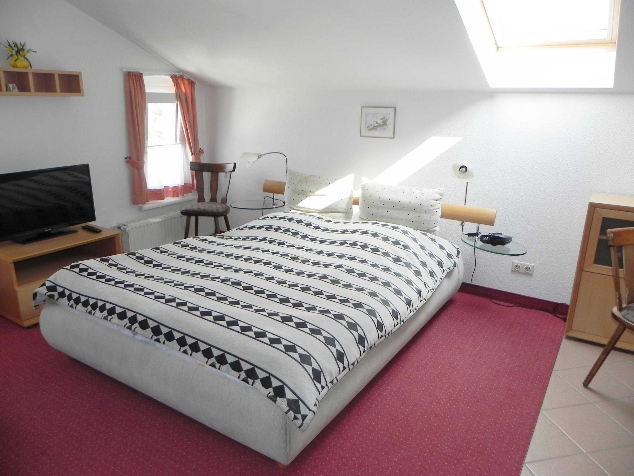 Die 35 qm große Wohnung in der Mansarde (drittes Obergeschoss) bietet komfortabel Platz für zwei Personen. Der helle Wohn-/Schlafraum ist mit einem Doppelbett, einem Sofa, Kabel-TV und einem kleinen Essplatz gemütlich eingerichtet - ideal für entspannte Stunden. Die angrenzende, gut ausgestattete Pantryküche mit 2-Platten-Herd, Kühlschrank, Wasserkocher und Kaffeemaschine ermöglicht eine bequeme Selbstversorgung. Abgerundet wird die Wohnung durch ein freundliches Tageslicht-Bad mit Dusche und WC, das den Komfort Ihres Aufenthalts perfekt ergänzt.