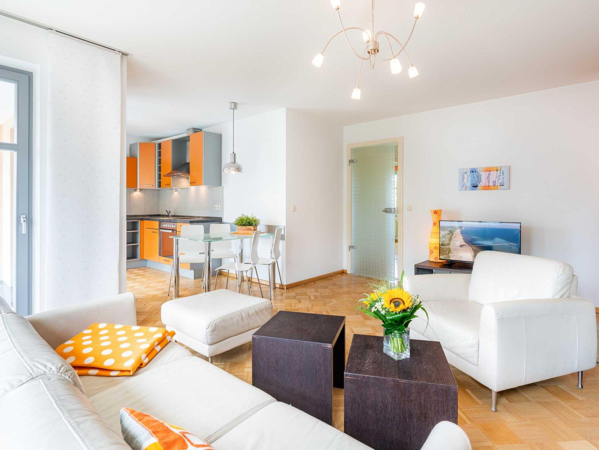 Diese Wohnung befindet sich im Obergeschoß. Sie bietet auf 69m² Platz für 4 bis max. 5 Personen* (Aufbettung). Der Wohnbereich mit Essplatz und Sofa lässt keine Wünsche offen. Eine gut ausgestattete Küche steht zur Verfügung. Die Wohnung verfügt über 2 Schlafzimmer mit Doppelbett, Bad und eine Loggia. In einem Schlafzimmer gibt es einen zusätzlichen Fernseher.