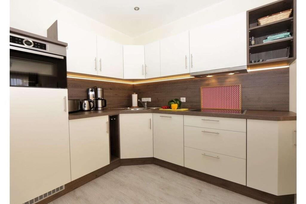 Der hell eingerichtete Wohnraum in der ersten Etage verfügt über eine gemütliche Sitzecke (mit Schlaffunktion) und einen separaten Essplatz. Von der Terrasse haben sie Meerblick. Eine im Wohnbereich integrierte Küchenzeile mit Geschirrspüler, Backofen, Mikrowelle p.p läßt auch für den Hobbykoch keine Wünsche offen. Das Schlafzimmer ist mit Doppelbett und genügend Schrankraum ausgestattet. Ein Duschbad sowie eine Terrasse runden diese Ferienwohnung ab. TV und Radio stehen zur Nutzung bereit. Der Pkw-Stellplatz befindet sich in der Tiefgarage und ist der Ferienwohnung zugeordnet. Fahrräder können im Keller untergestellt werden. Von Oktober bis März können Sie die Sauna zu bestimmten Zeiten nutzen.