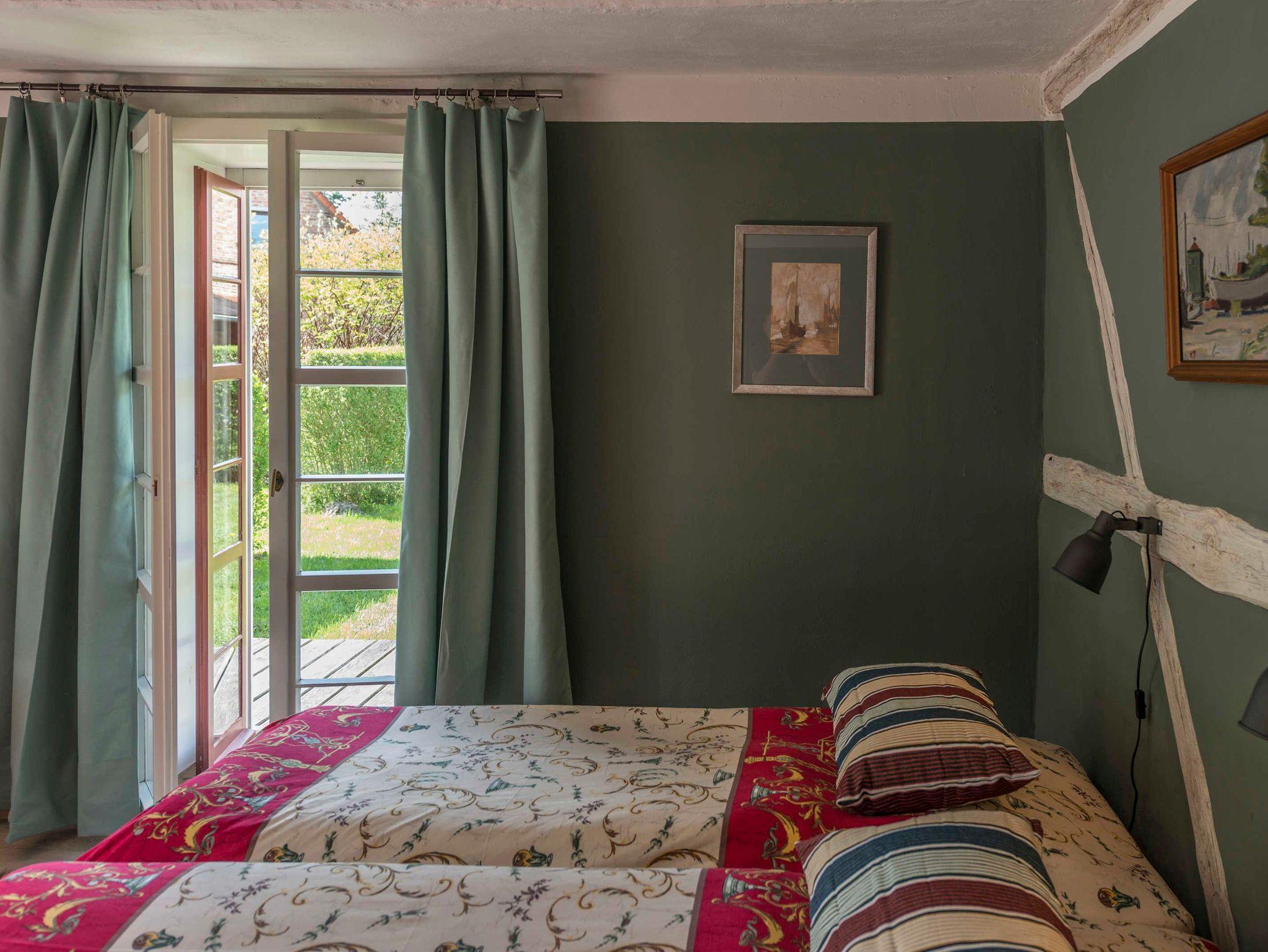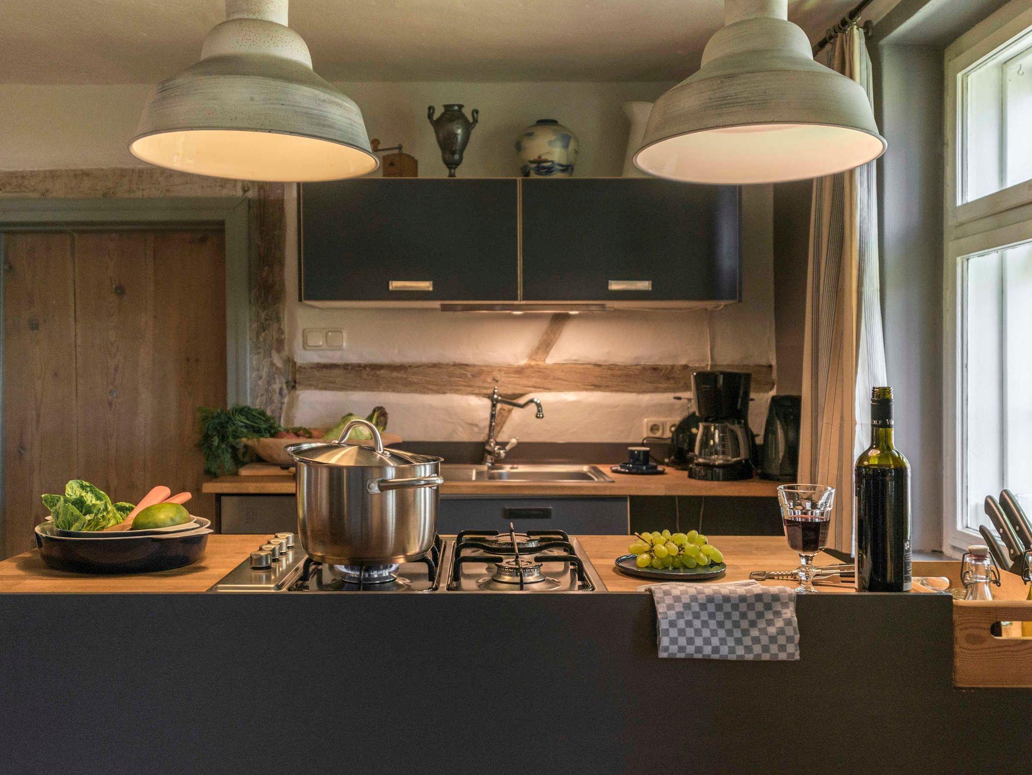 Haben Sie schon einmal Ihren Urlaub in einem 250 Jahre alten Haus verbracht? Lieben Sie blankgegriffene Türklinken, tiefe Balkendecken, die Struktur handgeformter Lehmwände, das Spiel von Licht und Schatten auf gelaugten Dielen und antiken Möbeln? Dann lassen Sie sich von fast 100m² Geschichte im Colonistenhaus verzaubern. Bei unserem mit viel Liebe sanierten Fachwerkhaus aus dem Jahr 1757 wurde ganz besonders darauf geachtet, den ursprünglichen Charme eines historischen pommerschen Gebäudes zu bewahren und dabei viel Wert auf ökologische Materialien wie Lehm, Holz und Naturfarben gelegt. So haben wir das Haus mit der für diese Häuser typischen Holzfassade aus heimischer Fichte versehen. Das Dach wurde 2016 mit wunderbaren, historischen Tonziegeln eines Abbruchgebäudes im Nachbardorf neu gedeckt. Die zum Teil noch barocken Kastenfenster wurden aufwendig restauriert oder da wo möglich durch helle, bodentiefe Fenstertüren komplettiert, sodass direkte Zugänge zur umlaufenden großen Holzterrasse geschaffen wurden. Die urgemütliche Atmosphäre der Räume, mit niedrigen Balkendecken, edlen Tapeten und Zementfliesen, Fachwerkwänden, den antiken Schränken und Kommoden wird Sie verzaubern. Hier sorgt ein antiker Lübecker Kachelofen im Winter für wohlige Wärme. Außerdem wurde eines der beiden Schlafzimmer mit einem gusseisernen Franklin Ofen ausgestattet, der hier nun auf Wunsch für ausgesprochen romantische Abende sorgt.