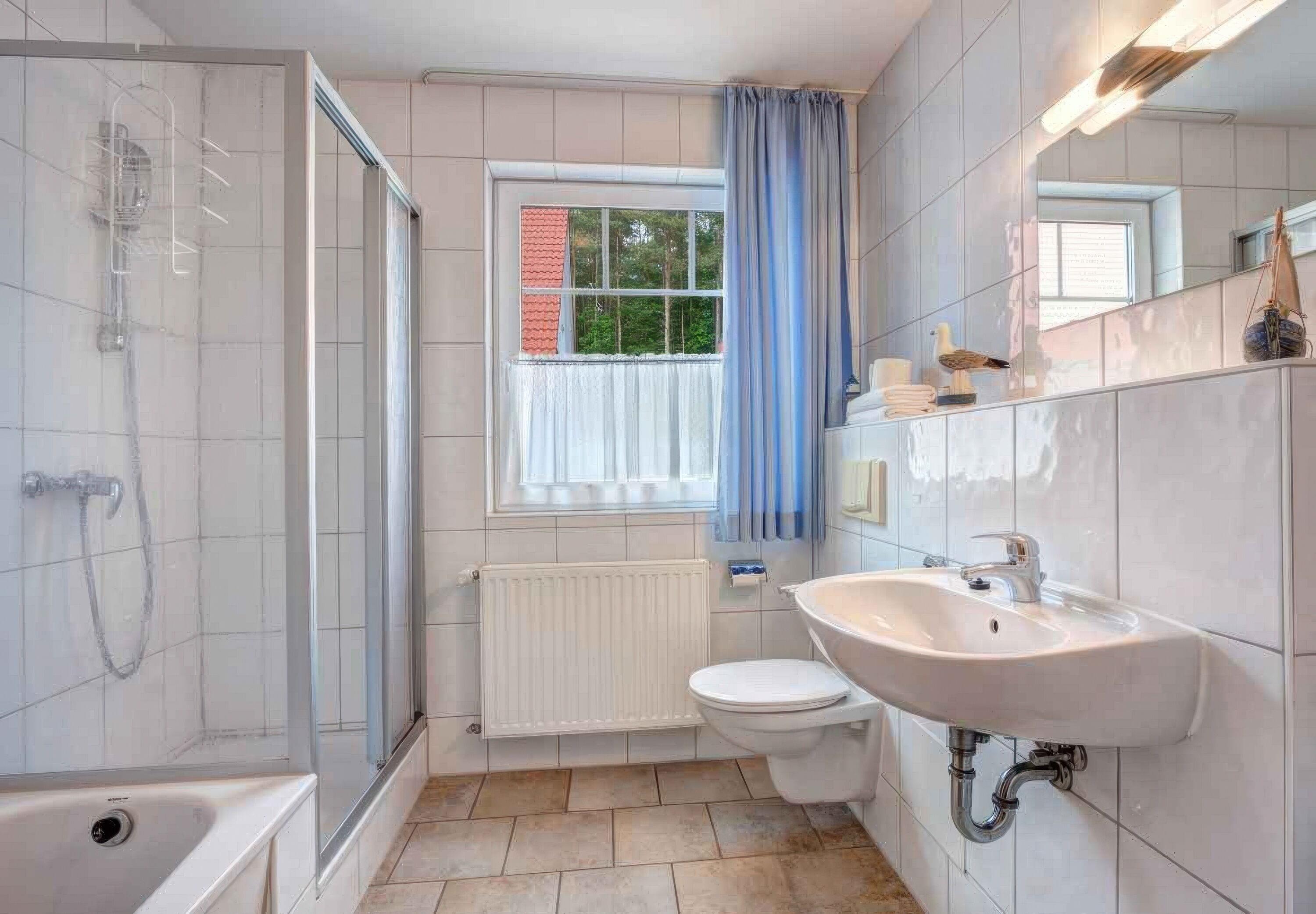 Badeværelse med bruser og badekar