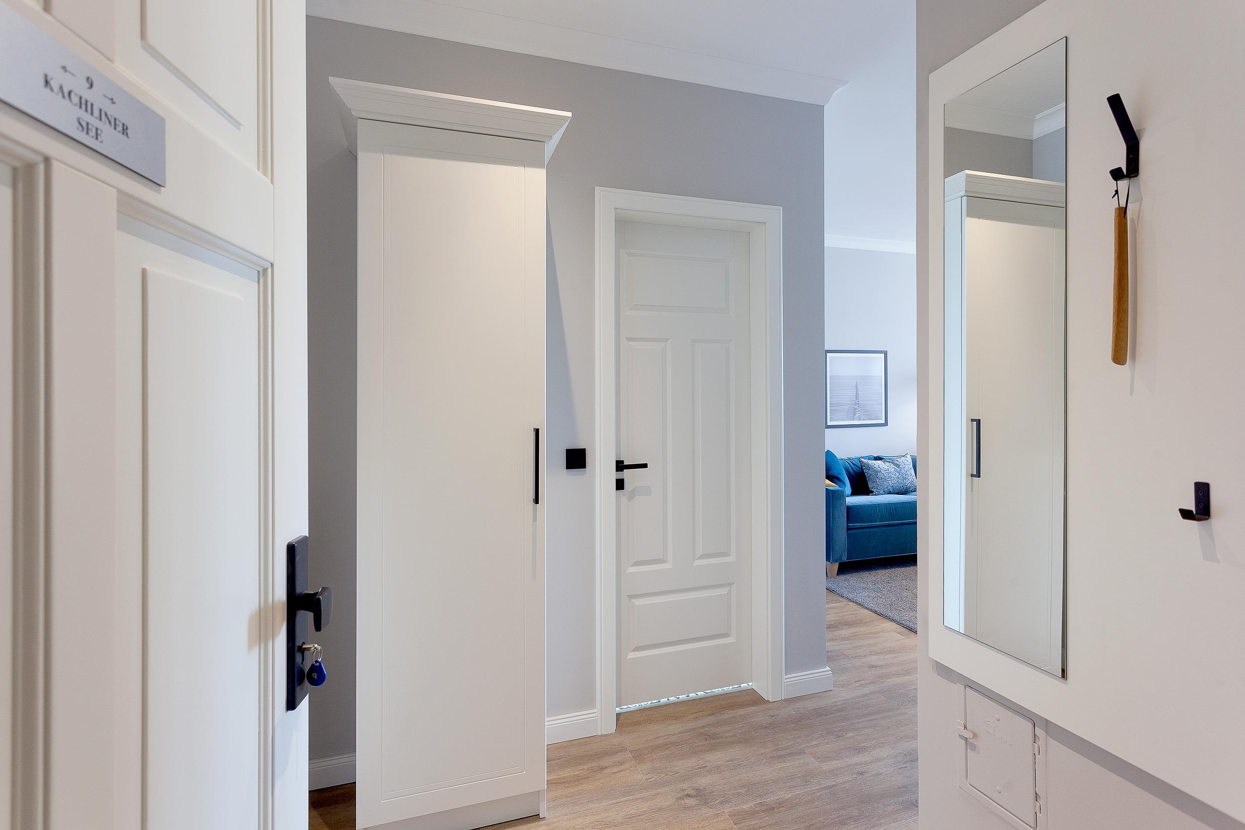 Die Wohnung "Kachliner See" bietet mit 3 stilvollen, hellen und modernen Zimmern und ca. 60 qm Platz für bis zu 4 Personen. 2 separate Schlafzimmer ermöglichen eine flexible Belegung. Genießen Sie über den südseitig ausgerichteten offenen Balkon seitlichen Meerblick. Große Fensterfronten sorgen für lichtdurchflutete Räume. Der gemütliche Kamin bietet auch in der kälteren Jahreszeit wohlige Wärme und Entspannung. Die vollausgestattete offene Küche lädt zum gemeinsamen Kochen ein. Haustiere sind in dieser Einheit willkommen.