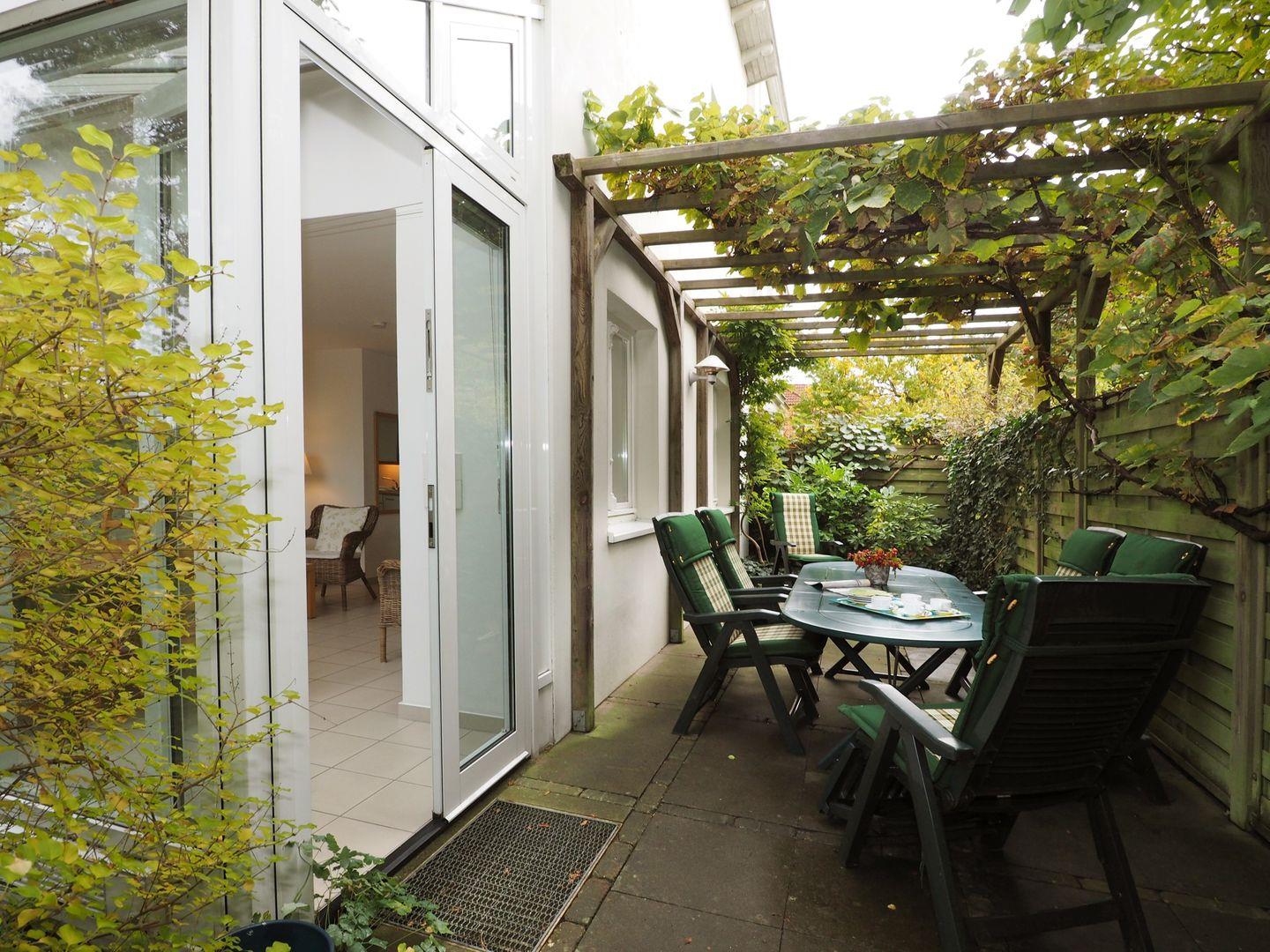 Unsere geräumige helle Maisonette-Ferienwohnung bietet auf 56 m² idealerweise Platz für 2 Personen und kann auf Wunsch mit 2 zusätzlichen Aufbettungen erweitert werden. Sie befindet sich in einem Nebengebäude mit separatem Eingang. Zur Wohnung gehören ein Gartenteil sowie eine Terrasse mit Sitzplatz für entspannte Stunden unter einer weinberankten Pergola. Nur 2 Gehminuten trennen Sie vom feinen weißsandigen Ostseestrand, der zu ausgedehnten Spaziergängen und einem erfrischenden Bad im Meer einlädt.