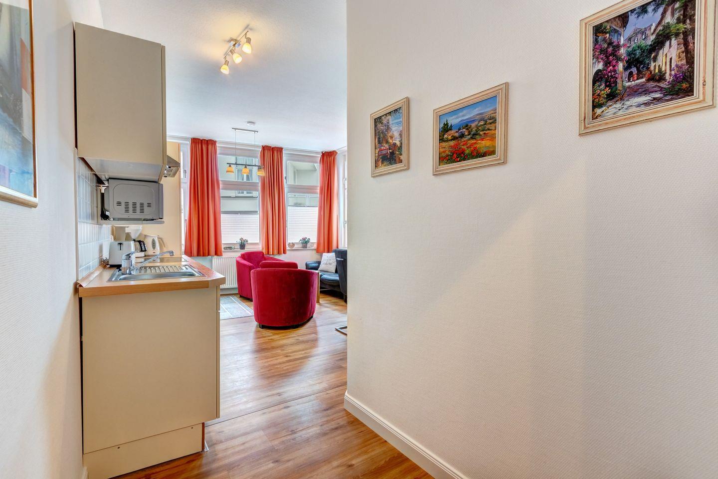 Die Ferienwohnung HM12 befindet sich in einem aufwendig sanierten Gebäude, das durch eine hochwertige technische Ausstattung und eine einladende Wohnatmosphäre besticht.