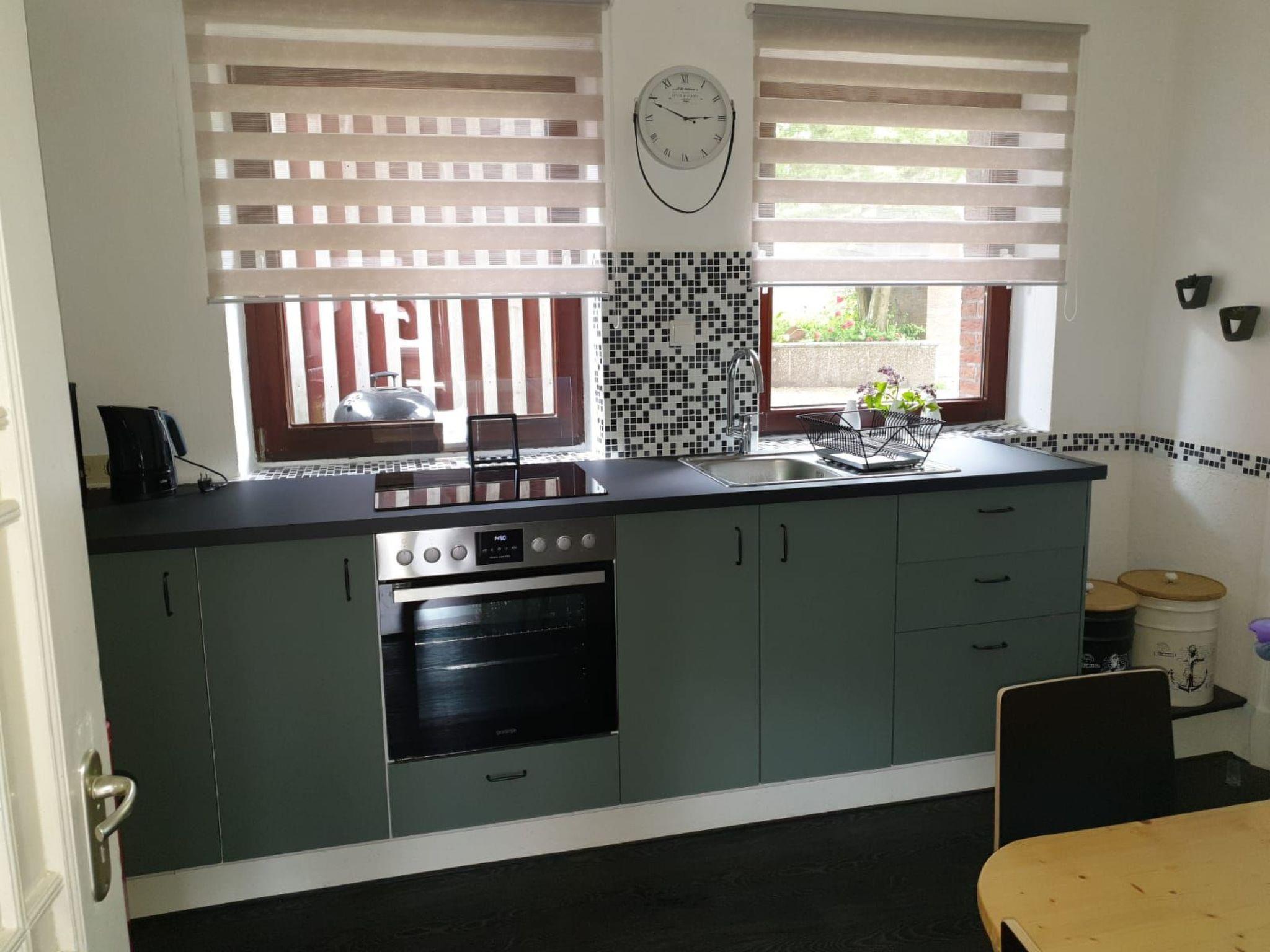 Inside, you will find a tastefully designed holiday flat with a combined bedroom and living room of approx. 30 m². Equipped with a couch that also serves as a sofa bed, a double bed/canopy bed (160 x 200 cm), armchairs and a wardrobe, it can comfortably accommodate up to 4 people. The kitchen was completely redesigned in 2021 and has an inviting seating area, a large table and all the usual kitchen appliances. In addition, a spacious bathroom, also renovated in 2021, with a bathtub and shower facilities rounds off your well-being.