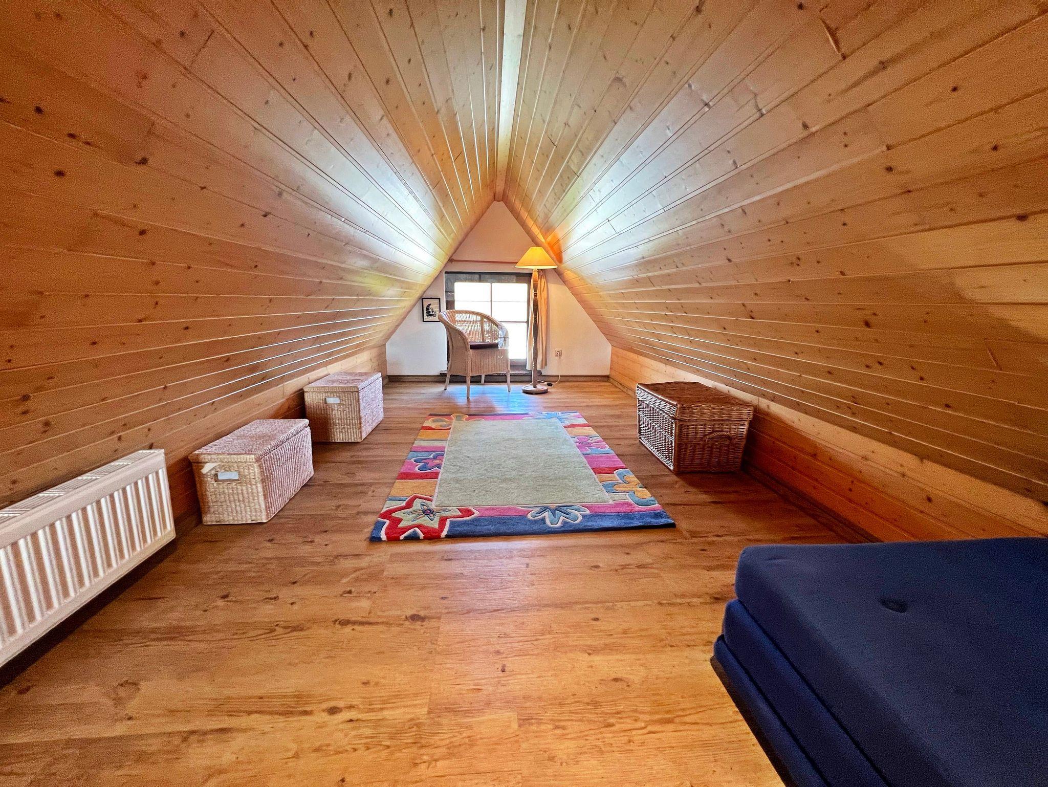 Küchenzeile verbunden ist. Im Schlafzimmer auf der ersten Etage befindet sich
