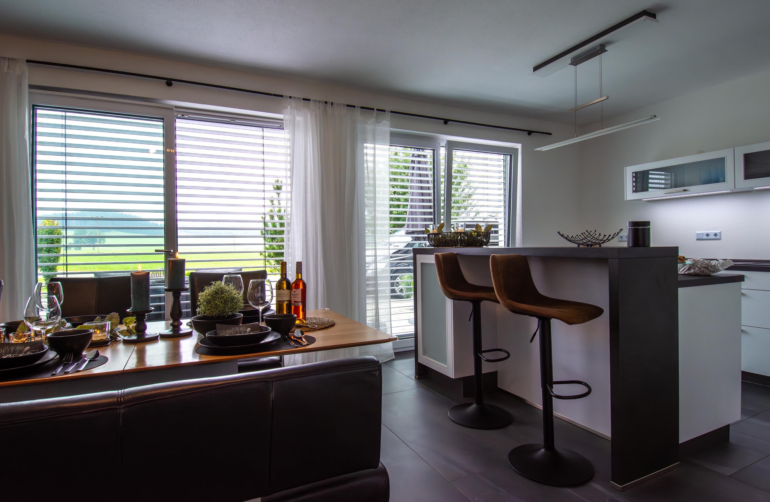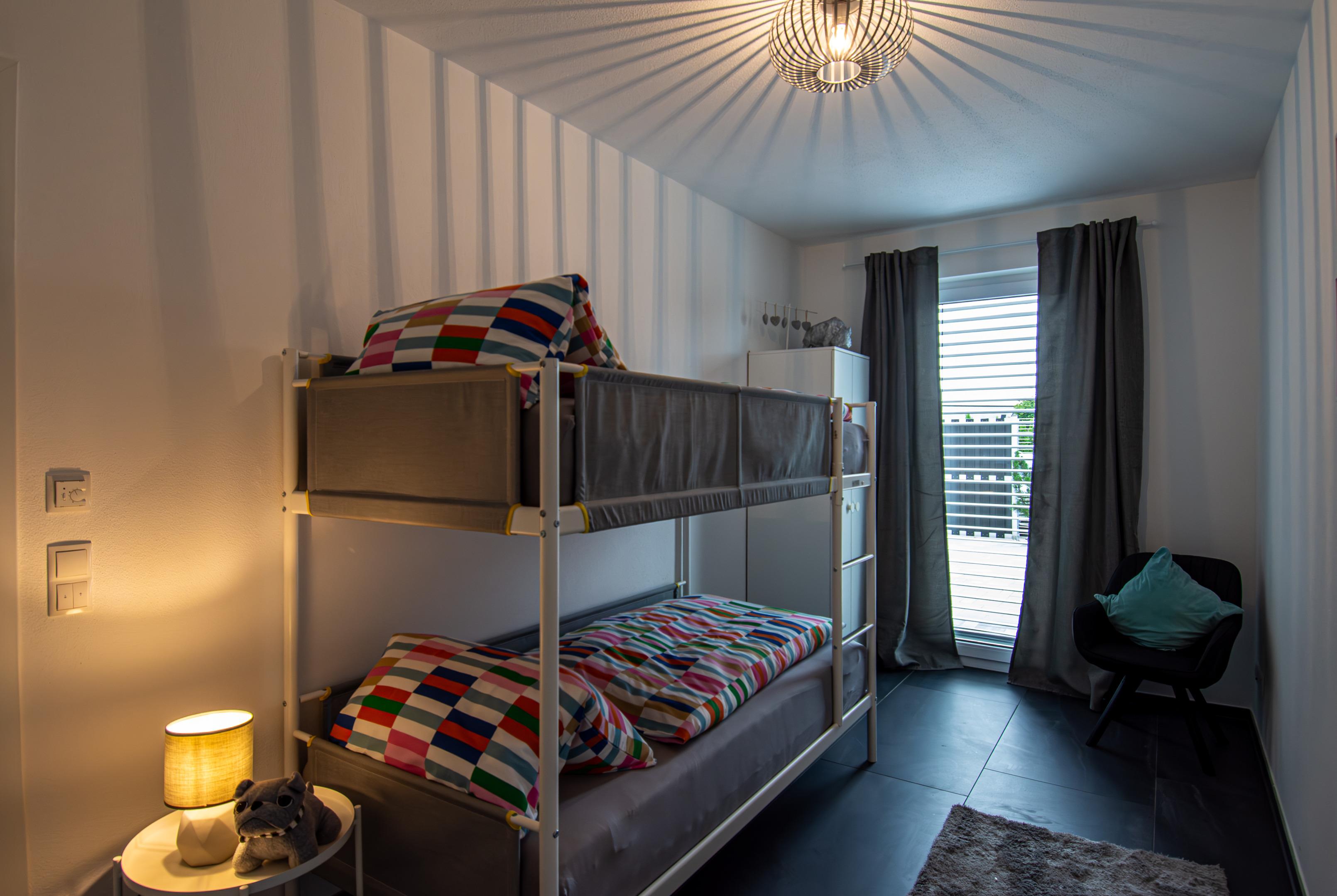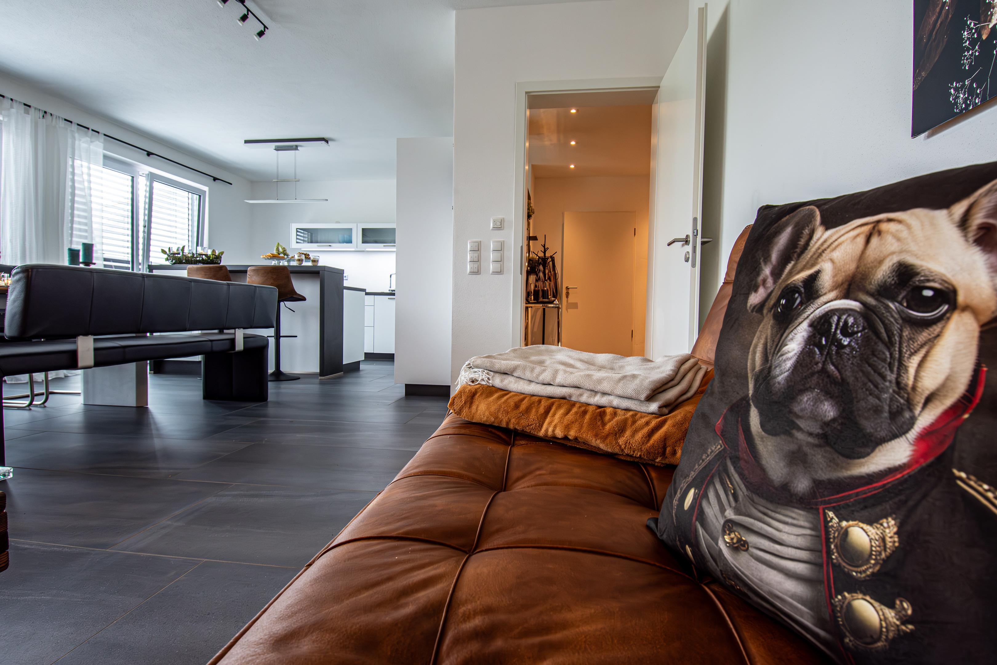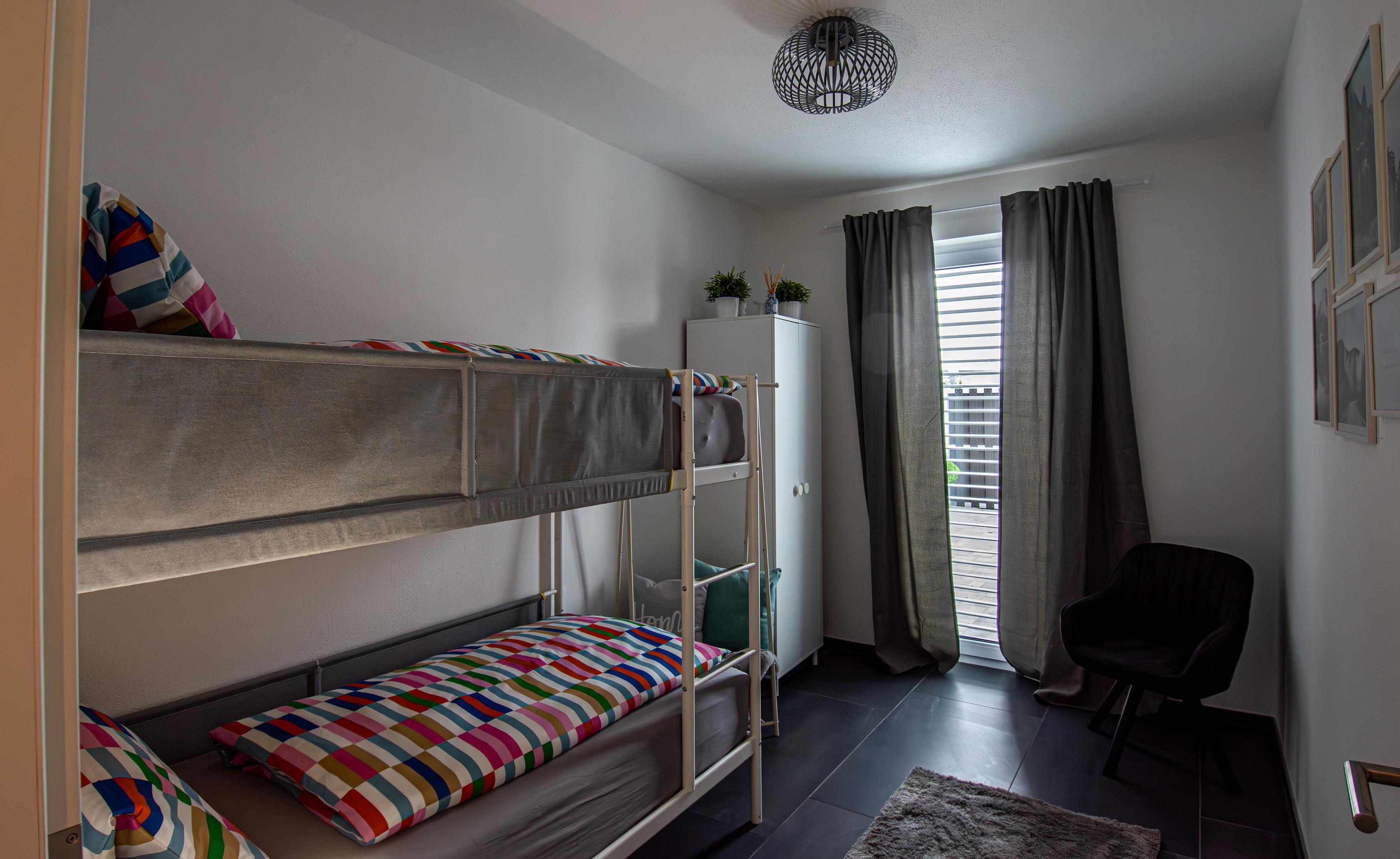 Die 120 qm große Ferienwohnung ist funktional, modern und mit hochwertigen Materialien eingerichtet. Der gemütliche Wohnbereich mit Schlafcouch großzügigem Wohn-/Essbereich und einer gut ausgestatteten Einbauküche incl. Frühstückstheke lädt zu gemeinsamen Stunden mit der Familie ein. Drei geschmackvolle Schlafzimmer: ein Doppelzimmer mit einem Luxus Boxspringbett mit Flachbild TV und zwei Zimmer mit Etagenbetten. Die Schlafzimmer kann man auch getrennt anmieten.