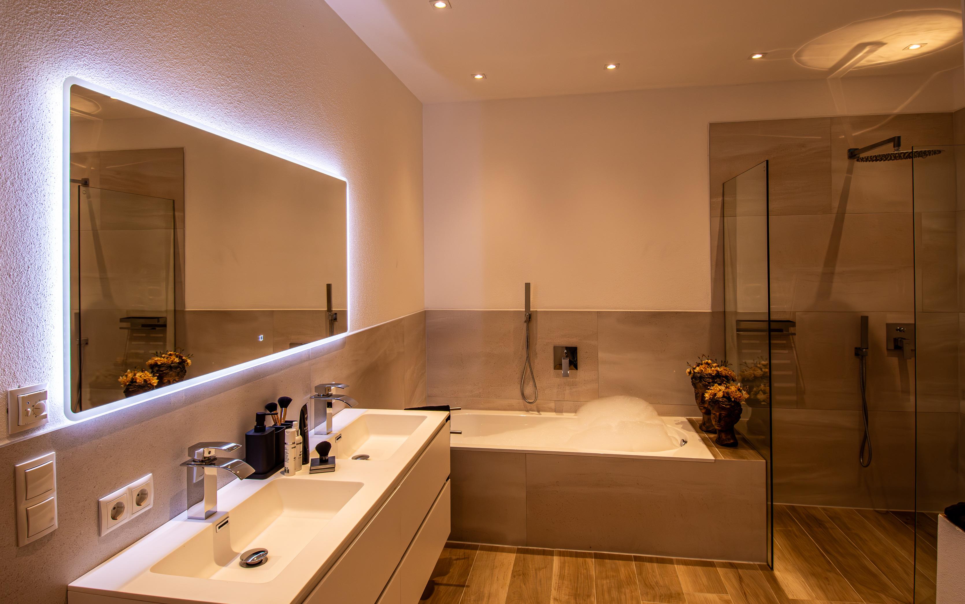 Die Ferienwohnung verfügt über ein Schönes, modernes und geräumiges Badezimmer mit Badewanne und einer begehbaren Dusche. Ein besonderes Highlight ist unser Soundsystem - Denn die Badewanne verwandelt sich in einen edlen Klangkörper. Genießen Sie ein einzigartiges Klang-Erlebnis über und unter Wasser.