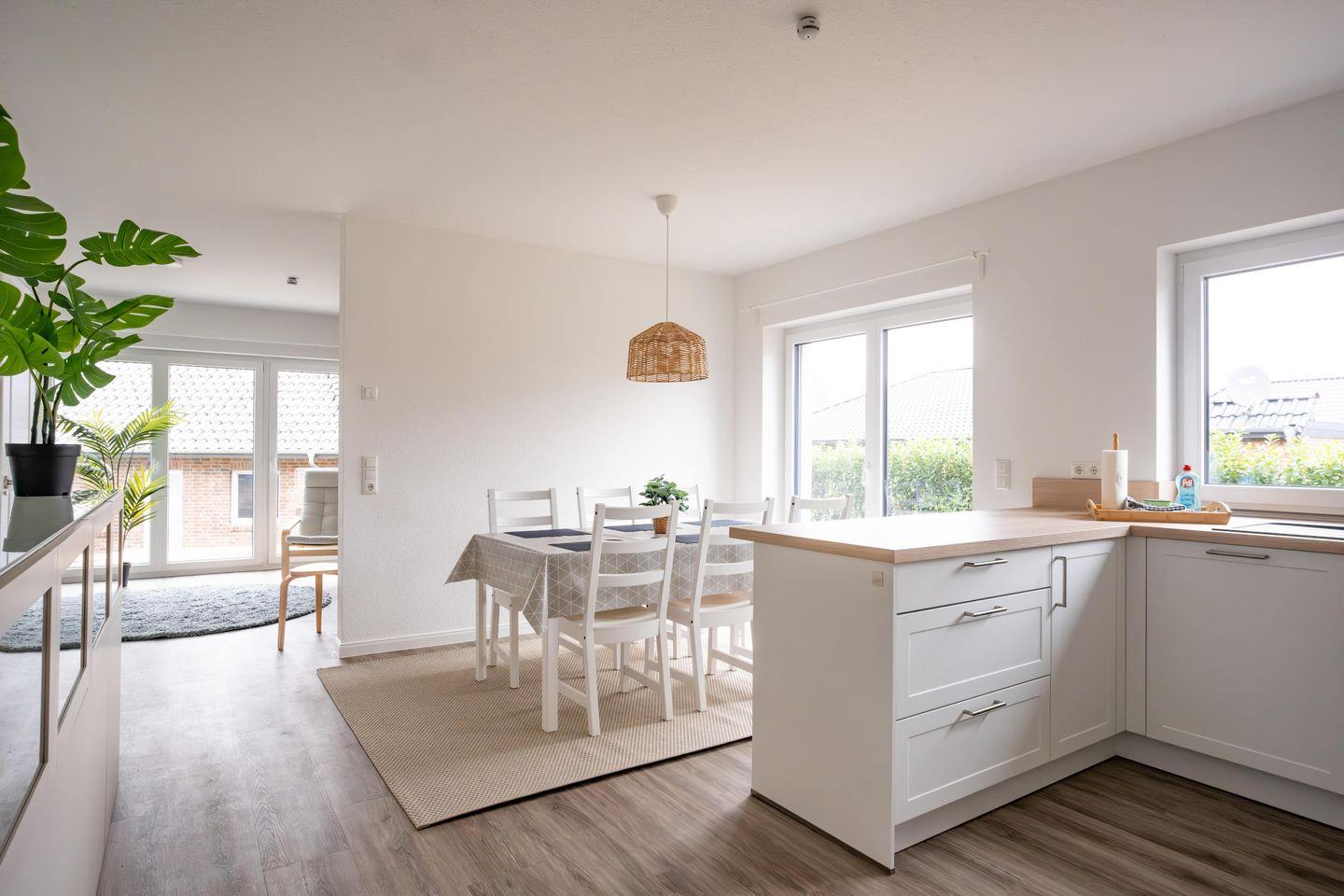 Willkommen im Wackenhuus 4 Albersdorf – ein modernes und großzügiges Ferienhaus, das Ihnen und Ihrer Familie oder Freunden einen unvergesslichen Aufenthalt in Albersdorf bietet. Mit 134 m² Wohnfläche und 7 Zimmern, darunter 5 Schlafzimmer, ist diese Unterkunft perfekt für bis zu 6 Personen geeignet. Besonders für Monteure bietet das Wackenhuus aufgrund der 5 Schlafzimmer und der großzügigen Raumaufteilung eine ideale Lösung, um sich nach einem arbeitsreichen Tag in Ruhe zu erholen.