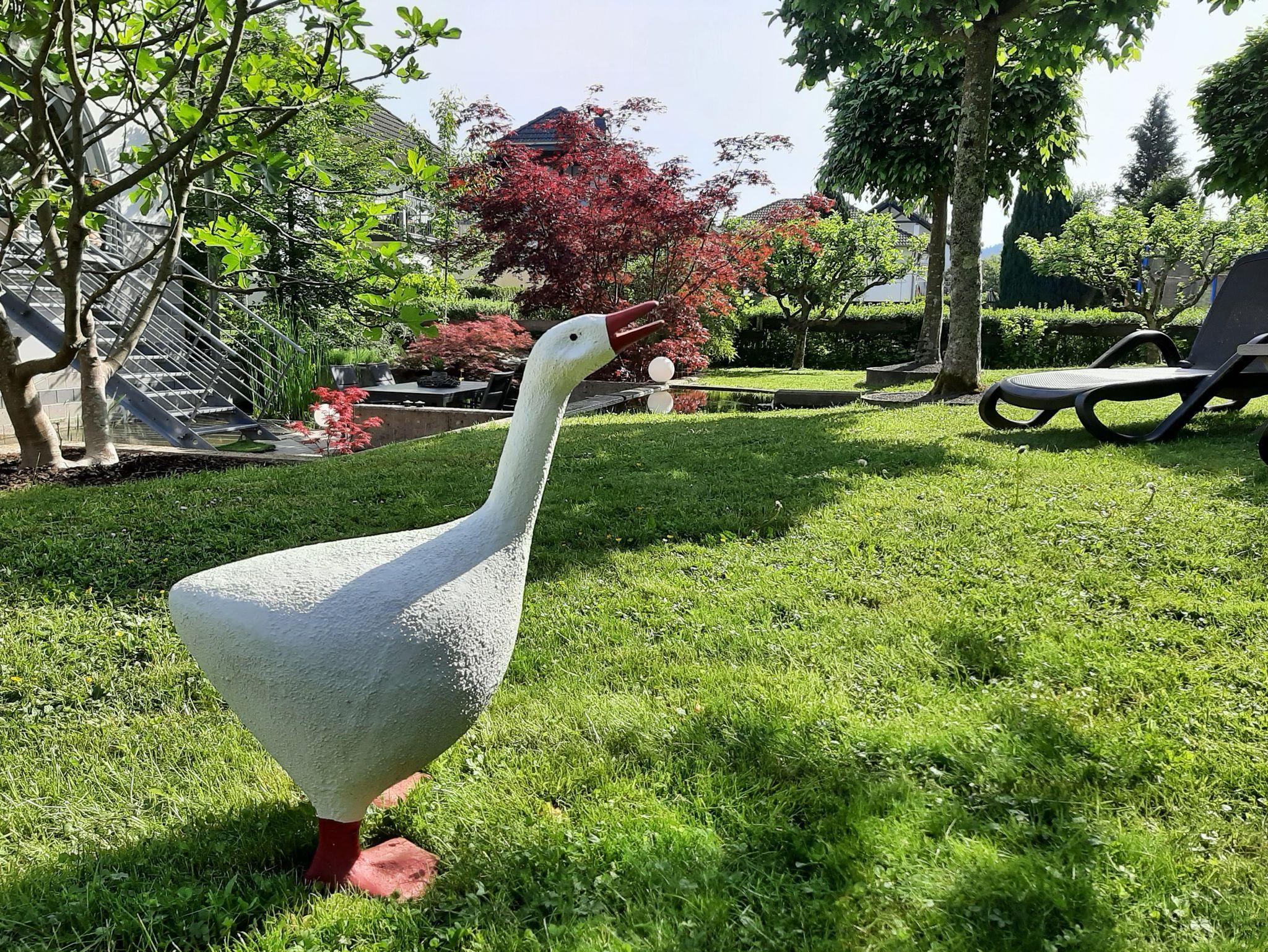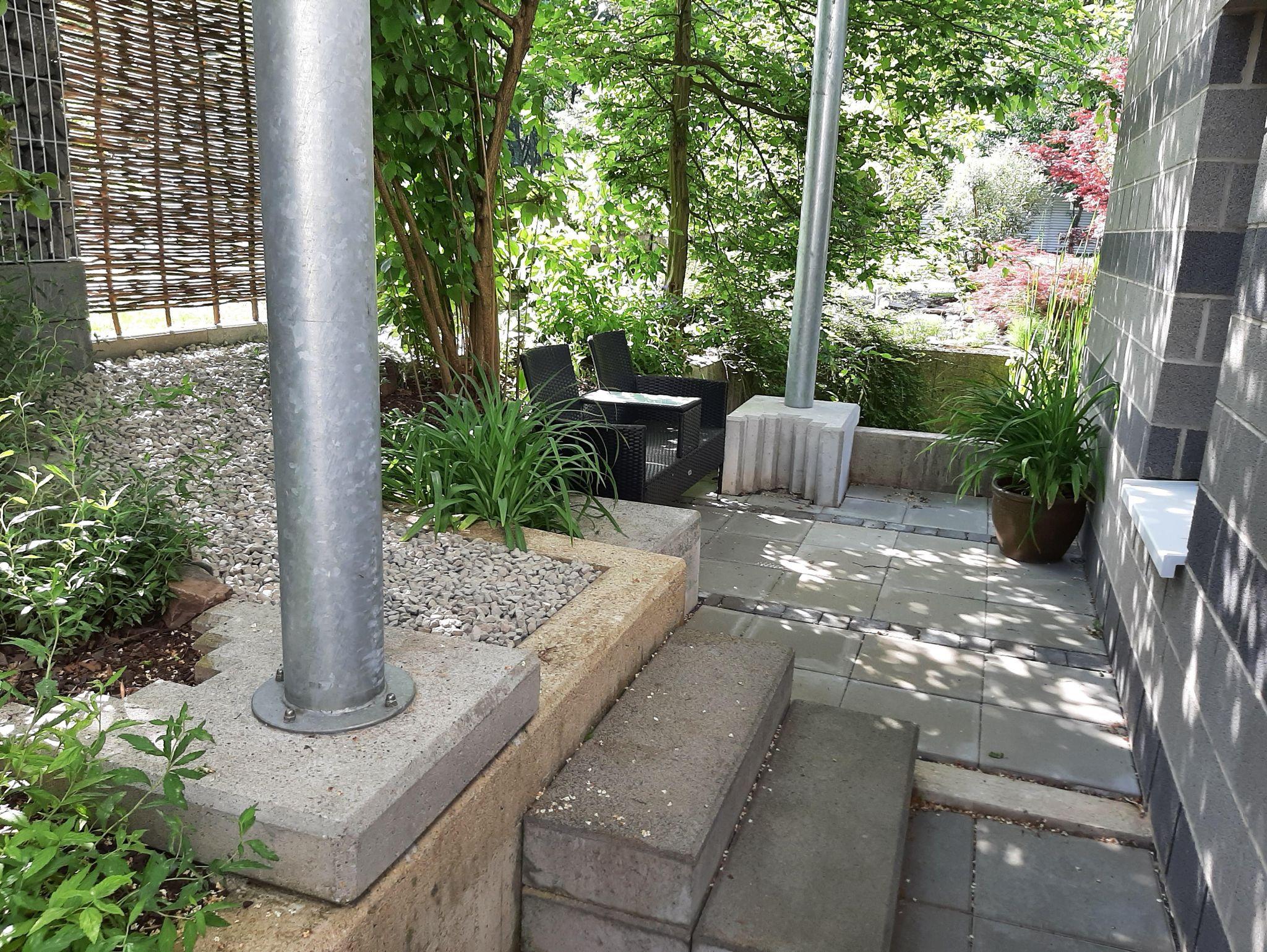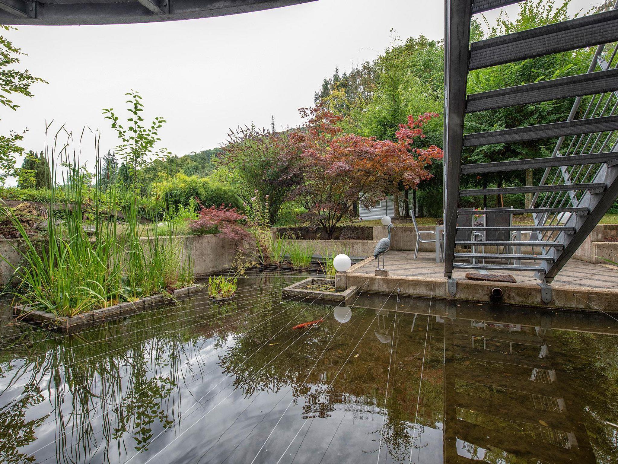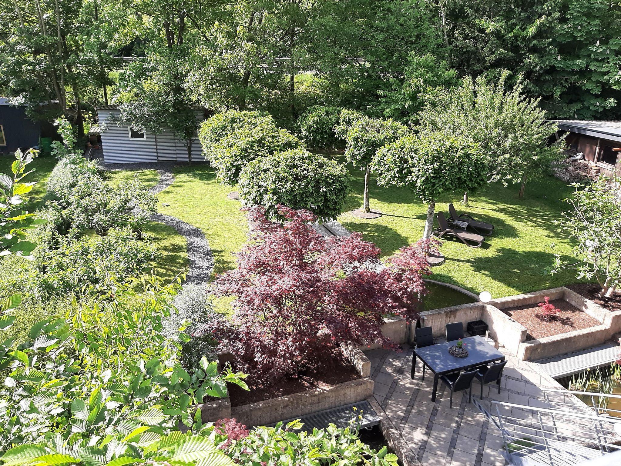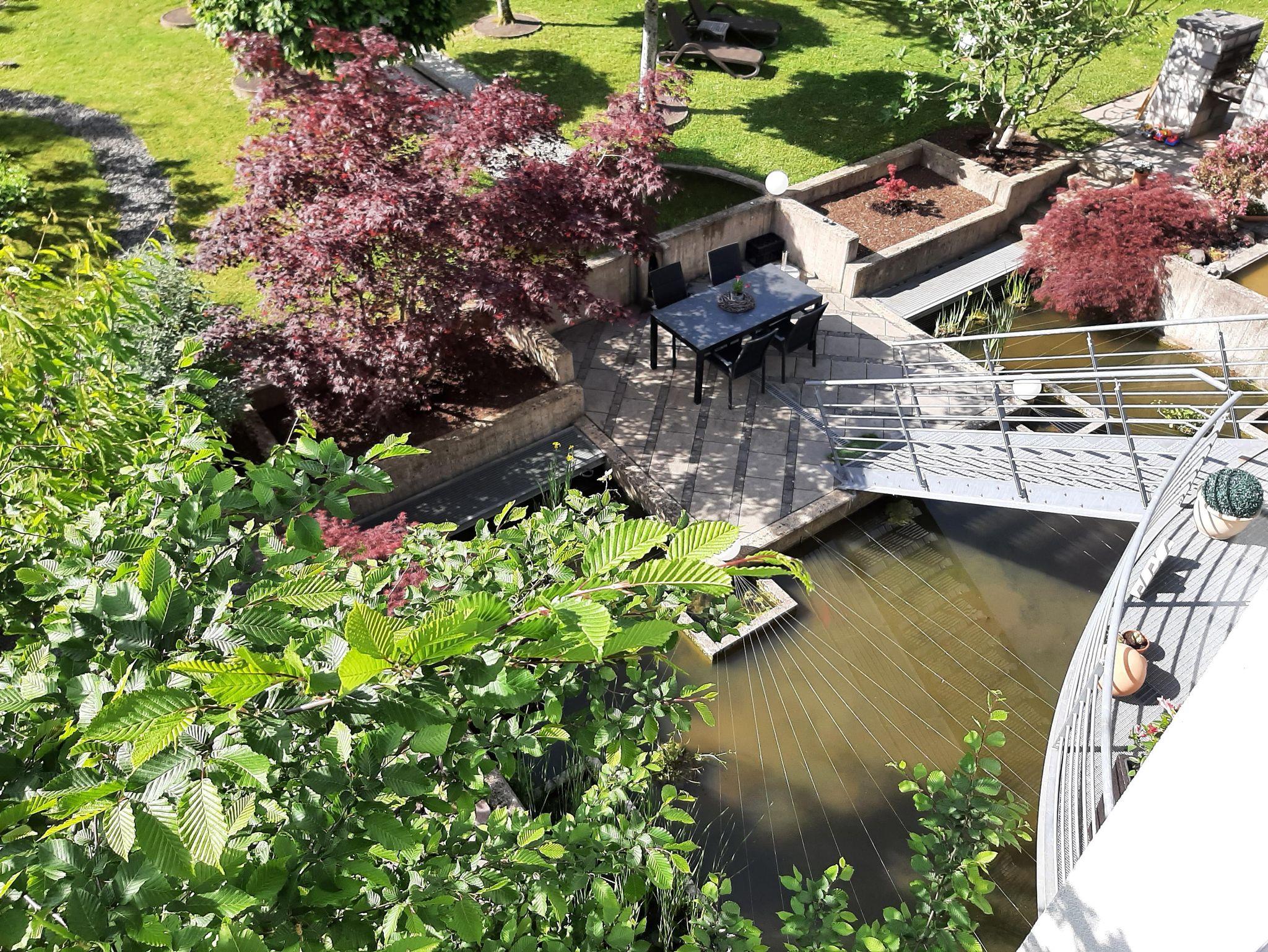 Von Ihrer Ferienwohnung gelangen Sie in unseren großzügigen Garten mit Liegewiese (2 Sonnenliegen) und Teichanlage, in der sich zahlreiche Koi's befinden. Auch eine Grillstelle ist vorhanden, die Ihnen zur Verfügung steht.