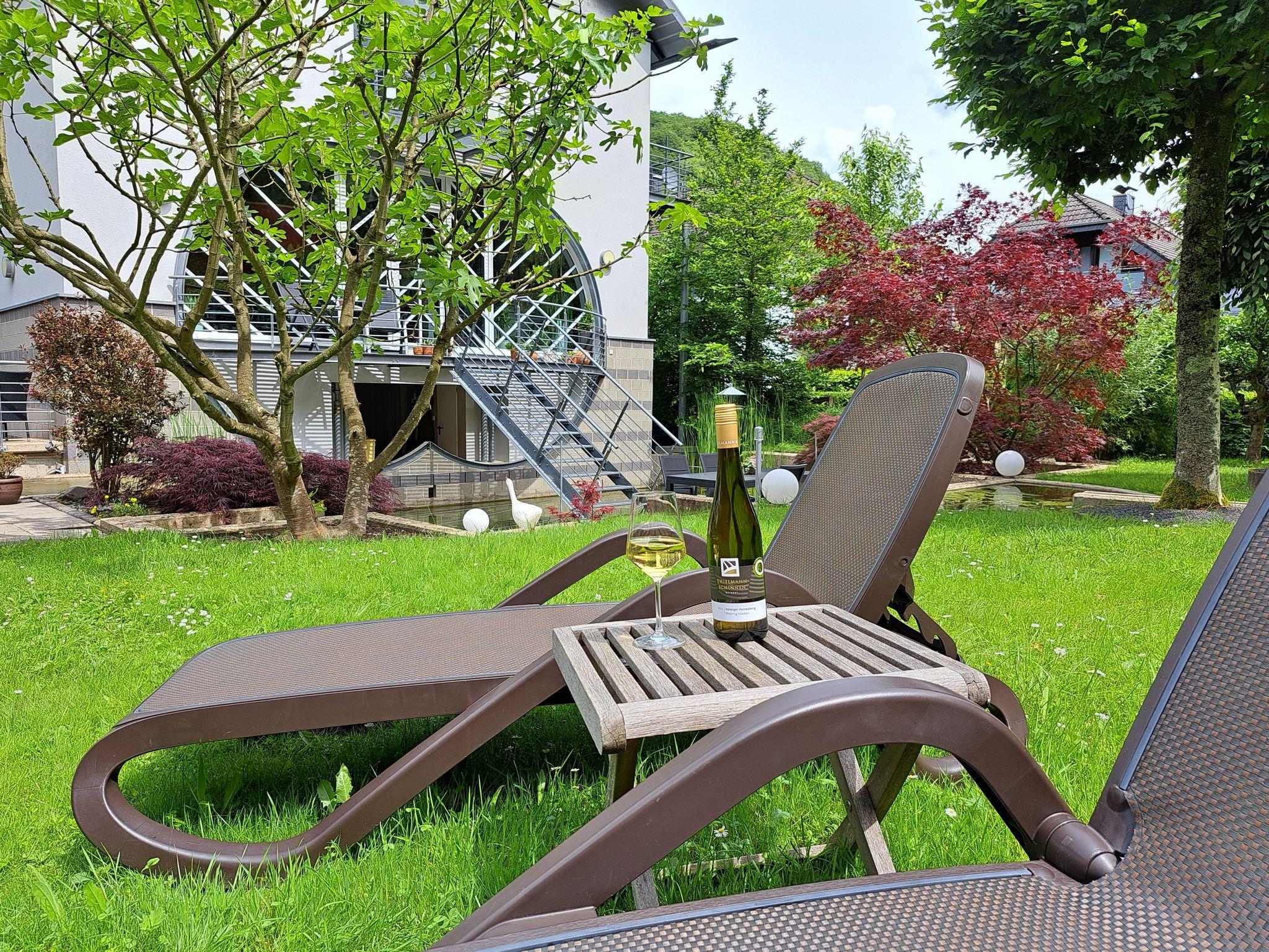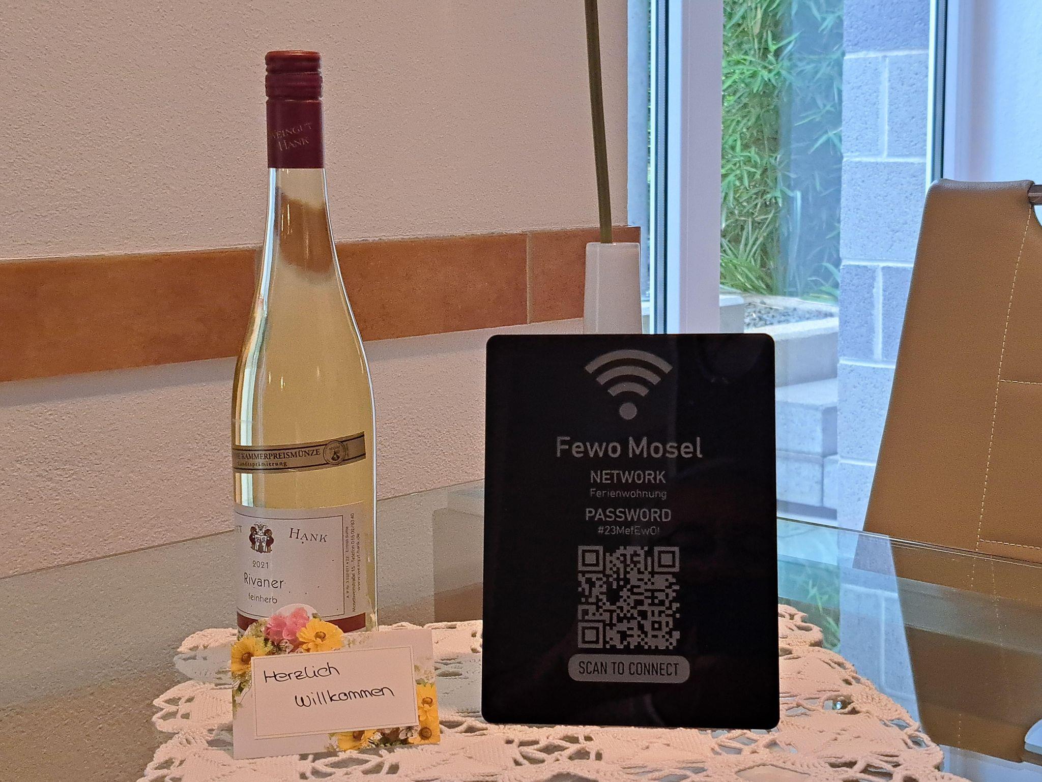 Für Weinliebhaber ist eine kleine Vinothek vorhanden, mit ausgesuchten Weinen von namhaften Weingütern von der Mosel. Für Unterhaltung steht Ihnen ein Flachbildschirm mit SAT-TV, eine kleine Hi-Fi-Anlage, sowie eine Spielsammlung zur Verfügung. Weiterhin haben wir für Sie eine Infomappe mit Sehenswürdigkeiten in unserer Umgebung zusammengestellt. WLAN ist natürlich kostenlos.