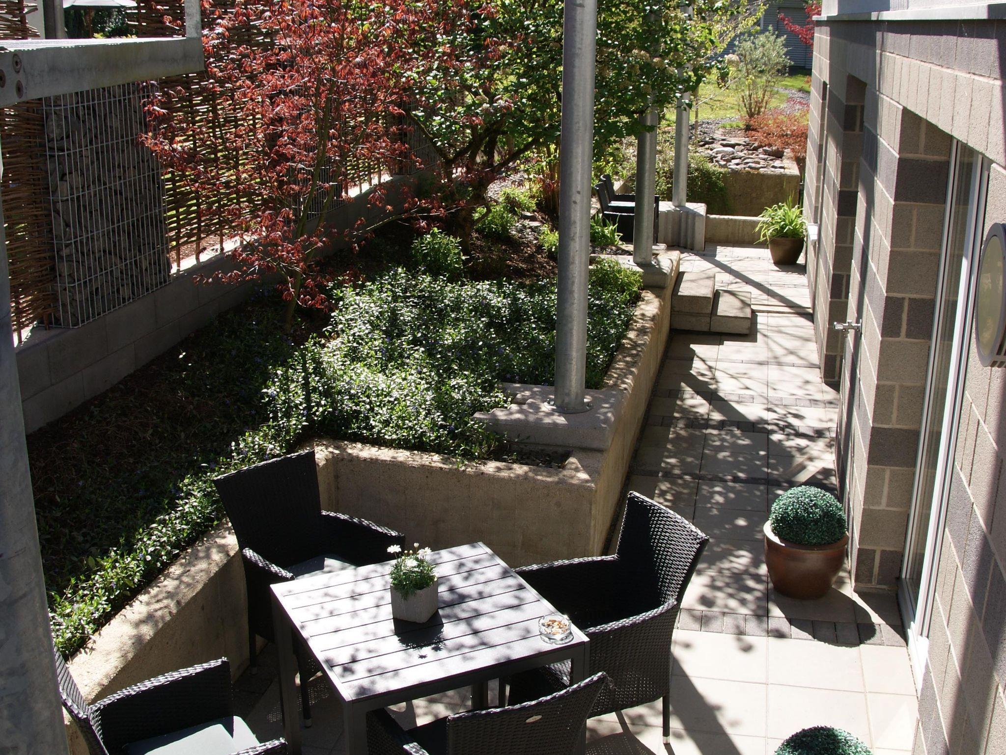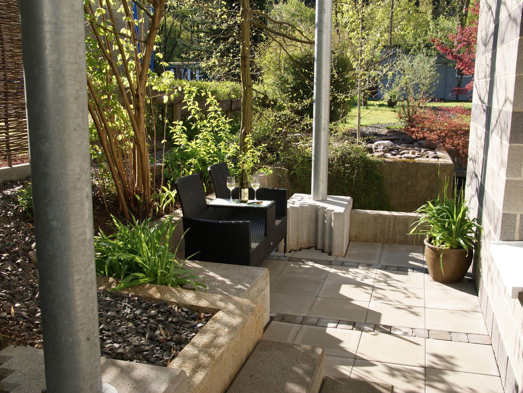 Die Ferienwohnung hat einen eigenen Freisitz mit 4 Sesseln und eine separate Parkmöglichkeiten unmittelbar am Haus. Motorräder können im Carport trocken untergestellt werden.