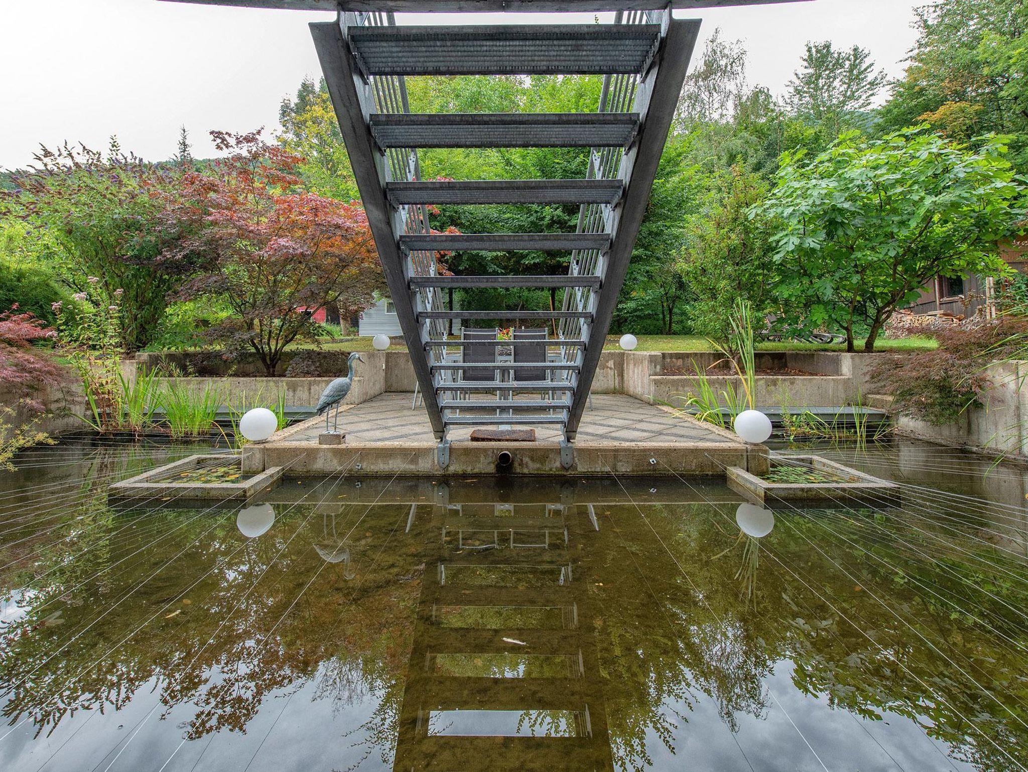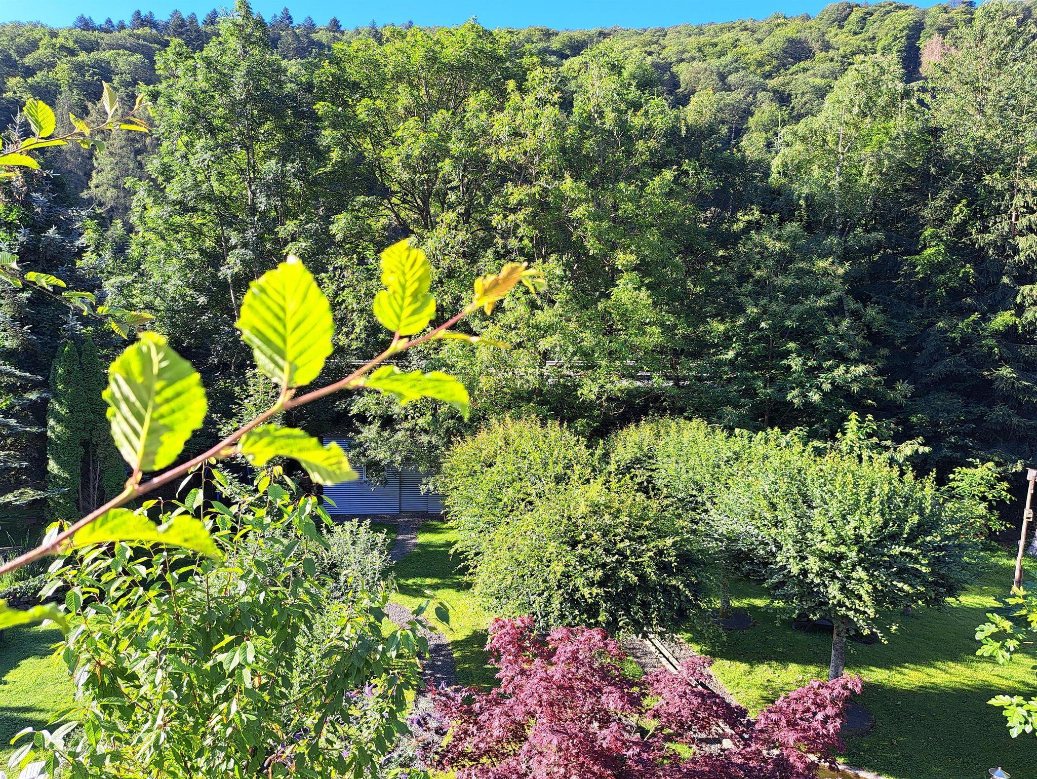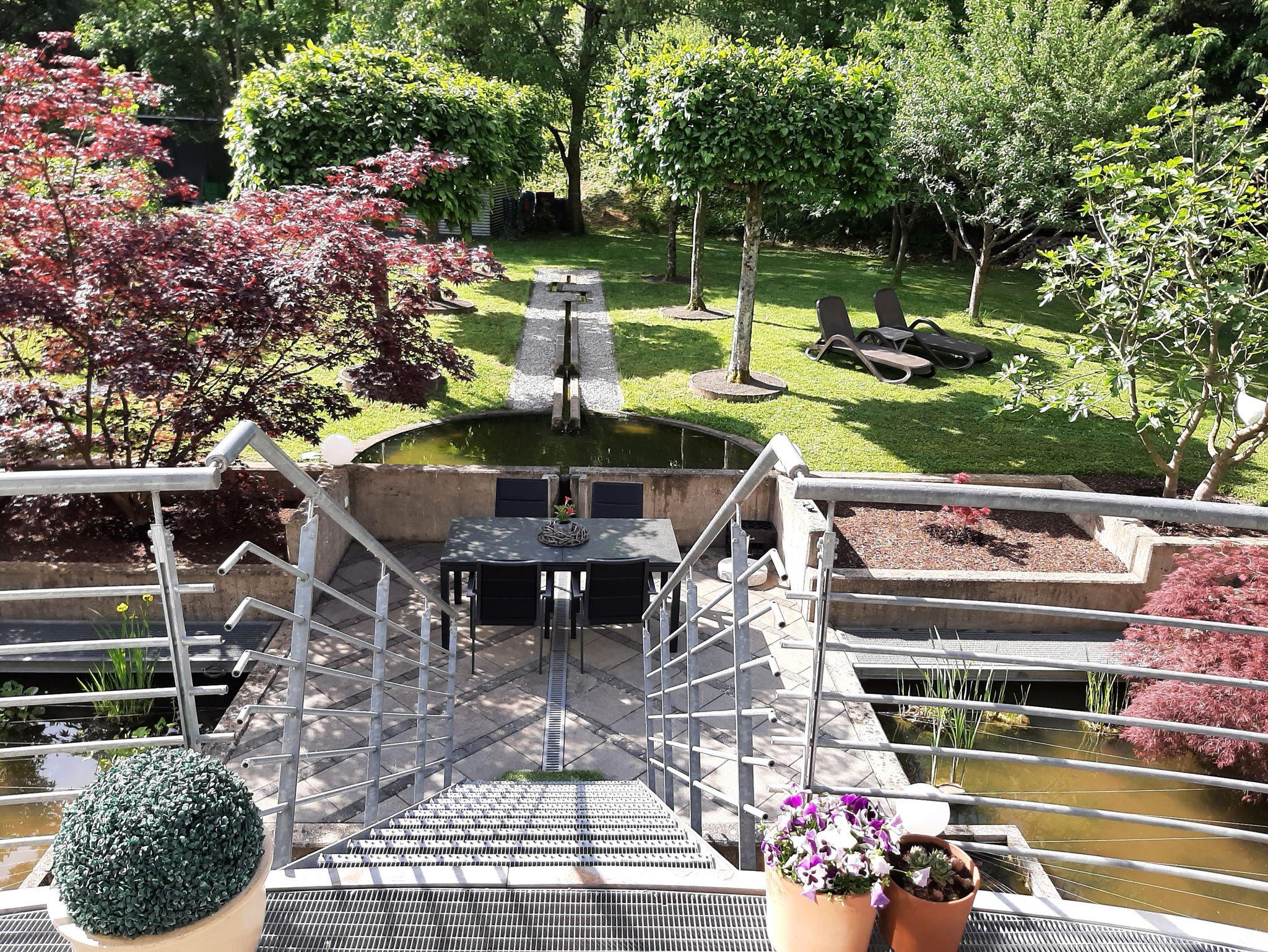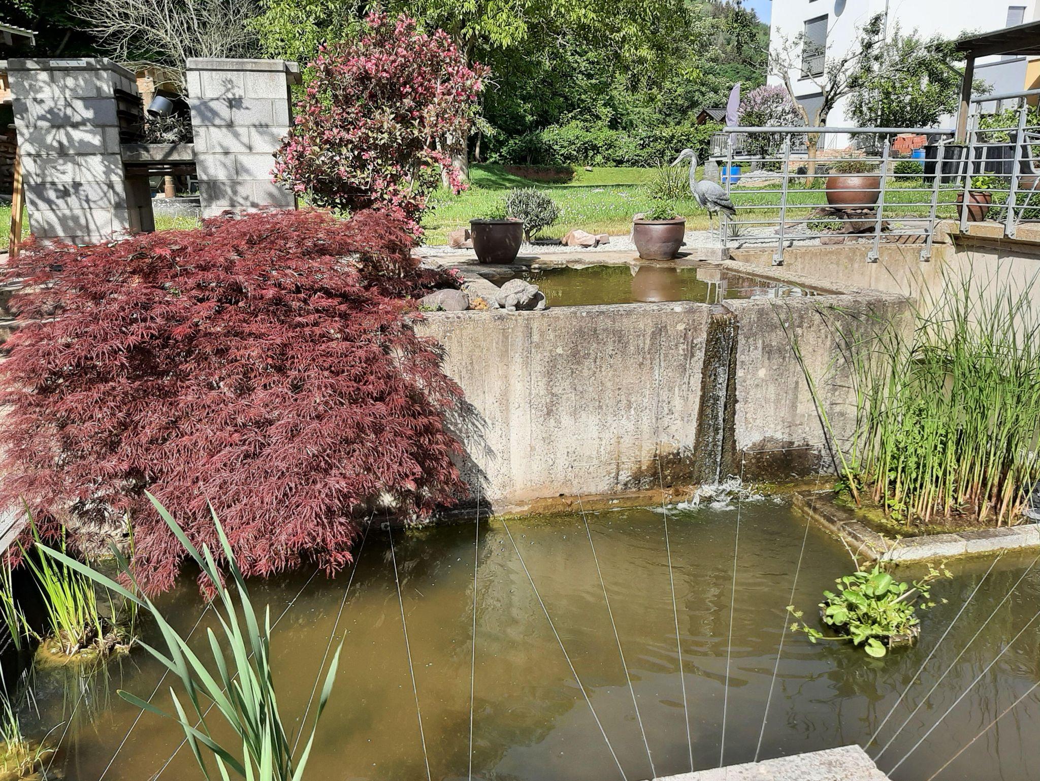 Vom Balkon haben Sie einen Blick in den nahegelegenen Sternenwald sowie in unseren Garten und Teichanlage mit Koi`s. An der Tür zum Fahrradkeller befindet sich eine Außendartscheibe wo Sie sich, wenn Sie möchten, die Zeit vertreiben können.