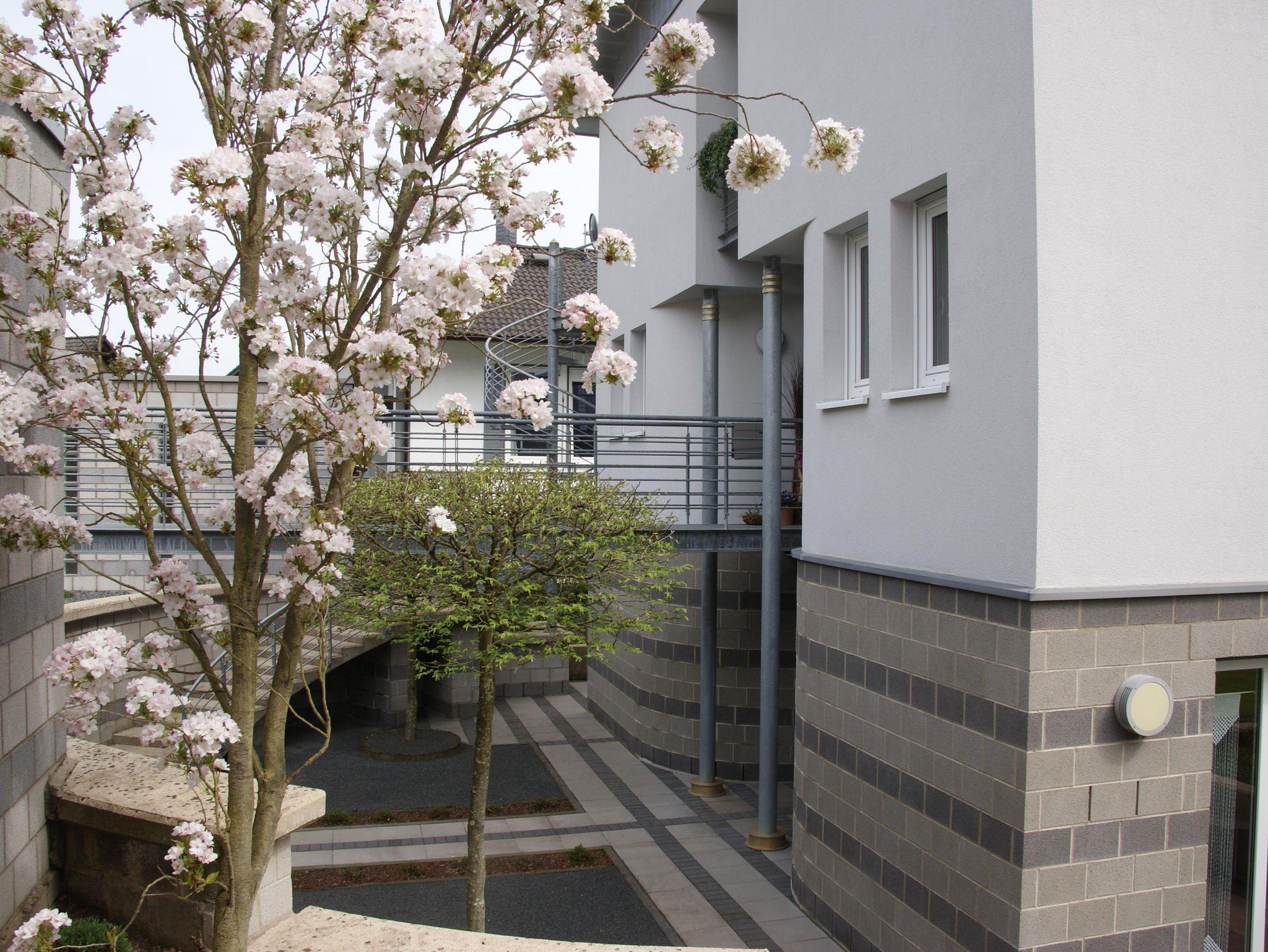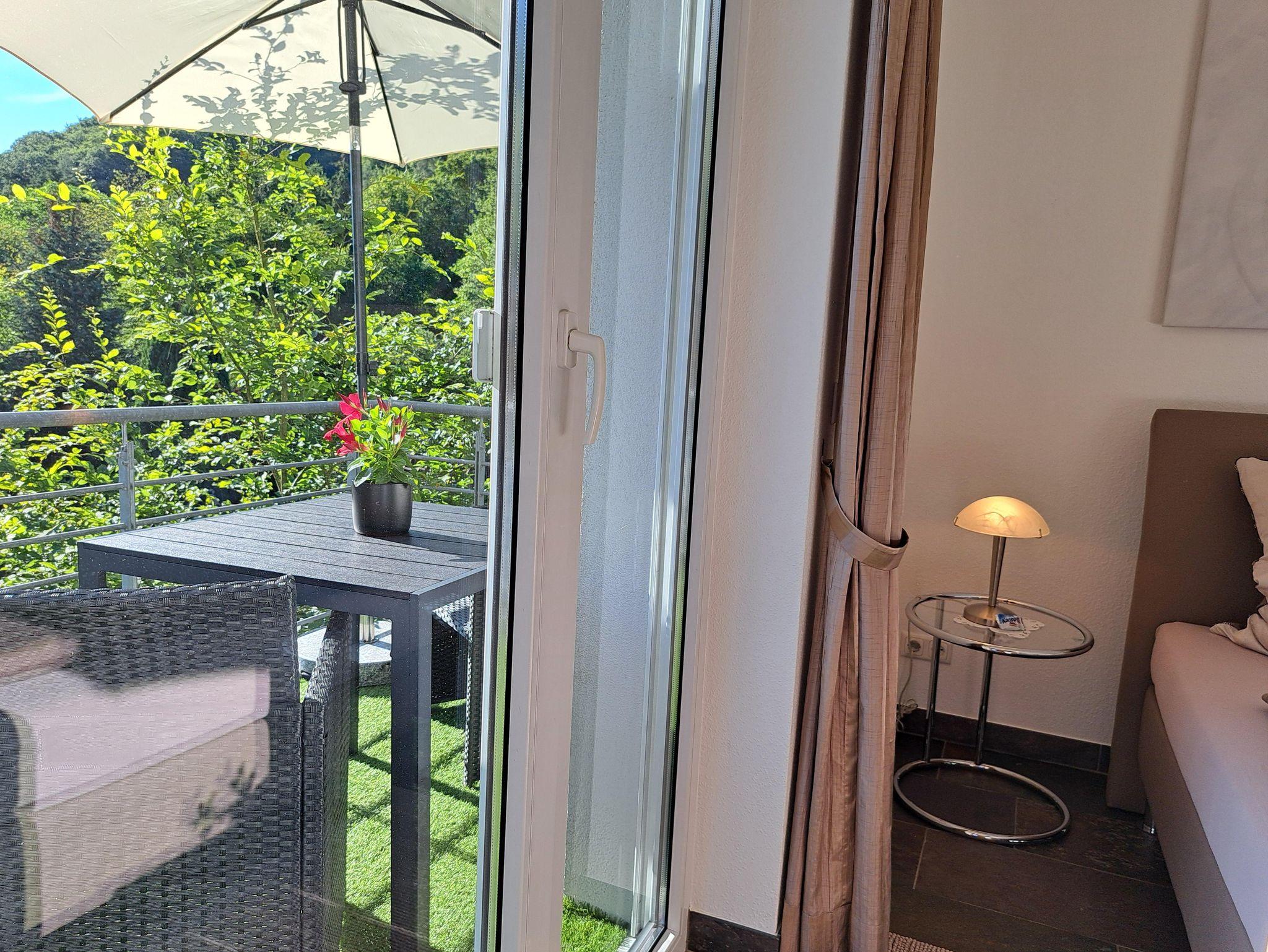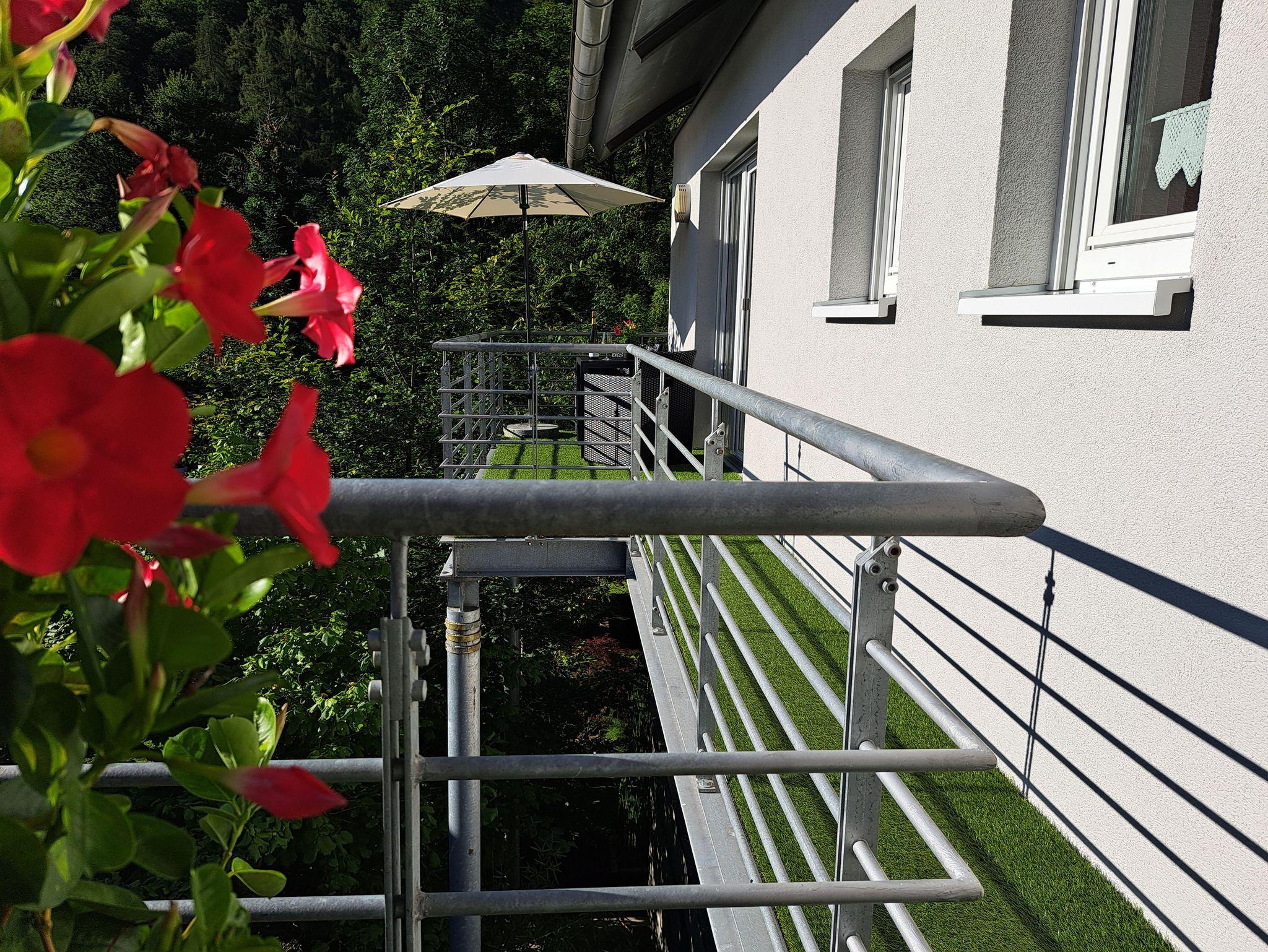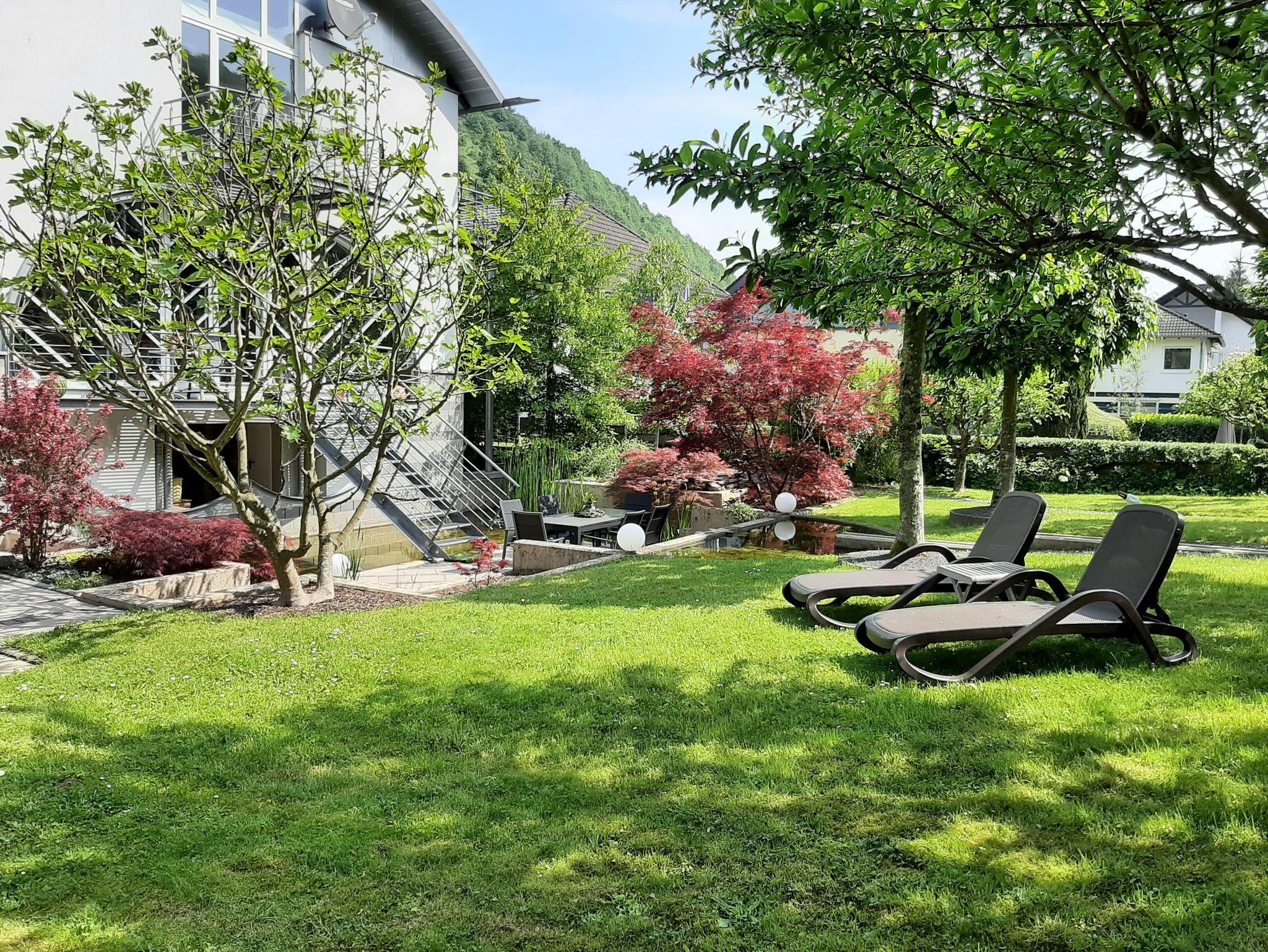 Vom Balkon haben Sie einen Blick in den nahegelegenen Sternenwald sowie in unseren Garten und Teichanlage mit Koi`s. An der Tür zum Fahrradkeller befindet sich eine Außendartscheibe wo Sie sich, wenn Sie möchten, die Zeit vertreiben können.