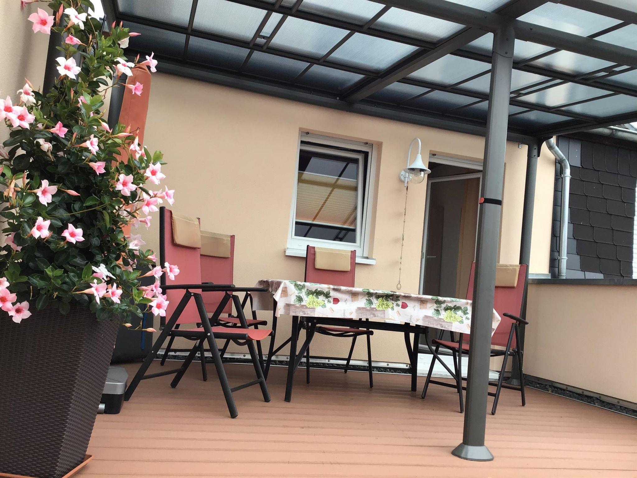 Die Ferienwohnung Dachterrasse bietet Wohnen auf höchstem Niveau und besticht durch ihren Charme. Auf einer 22 m² großen Dachterrasse mit Gartenmöbeln und Sonnenschutz genießen sie ein Glas Wein beim Entspannen. Die Nichtraucherwohnung bietet Platz für bis zu 4 Personen und lässt keine Wünsche offen