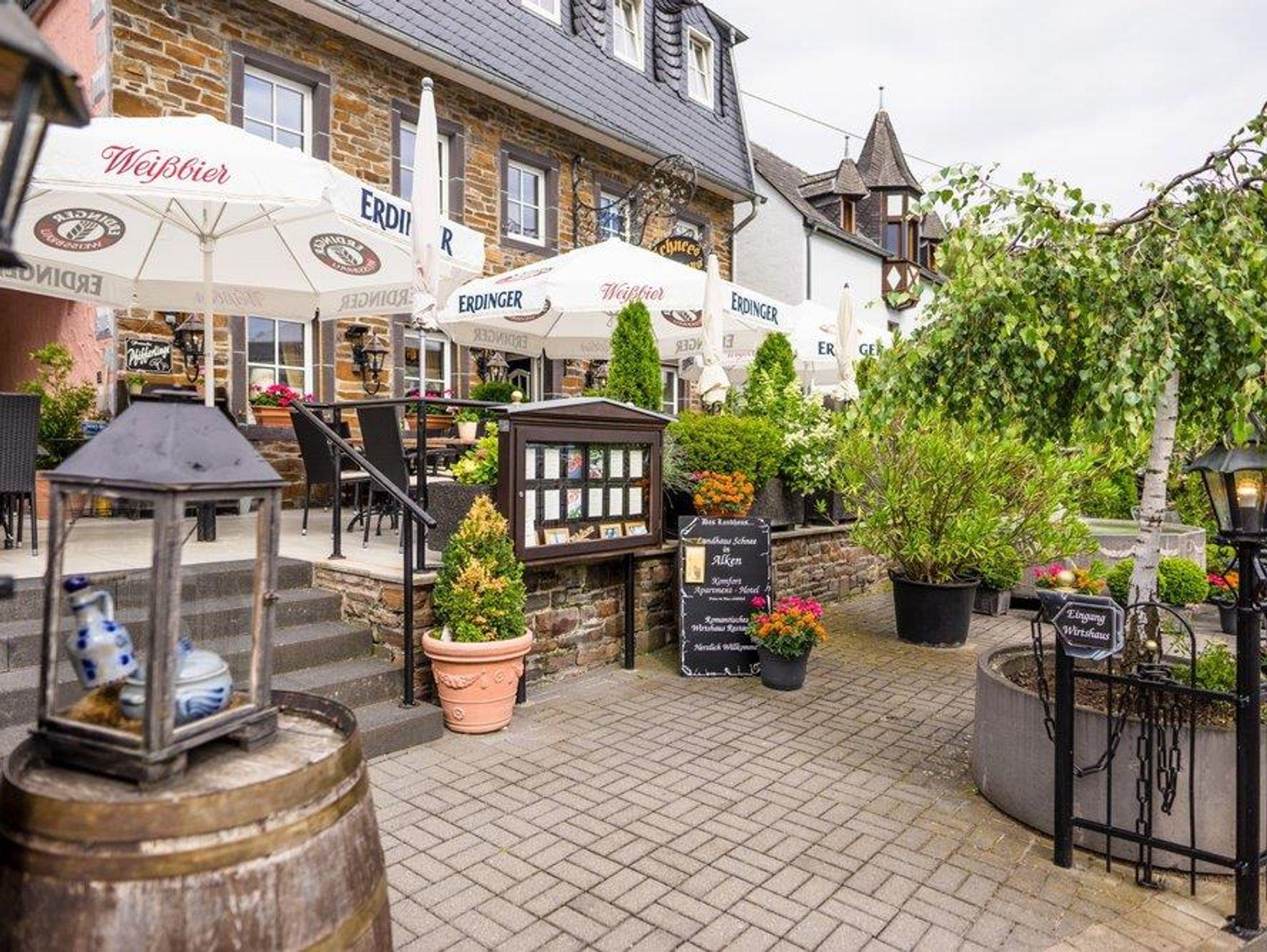 Von unseren Ferienapartments genießen Sie einen Traumhaften Blick auf die Mosel und die teils eigenen Weinberge am Haus. Alle Apartments verfügen über ein Sofa, einen Sitzbereich, einen Flachbild-Sat-TV, sind Klimatisiert und verfügen über eine gut ausgestattete Frühstücksküche mit einem Essbereich, ein Schlafbereich und ein eigenes Bad mit einem Haartrockner. Wir möchten die Großzügigkeit, Zusatzausstattung und Privatsphäre einer Ferienwohnung mit dem Service und Annehmlichkeiten eines Hotels vereinen. Dies erreichen wir mit unseren Ausgebildeten Mitarbeitern jeden Tag. Handtücher und Bettwäsche werden selbstverständlich von uns gestellt und auf Wunsch getauscht. Jedes unserer Apartments verfügt über eine kleine Kaffee- und Teeküche, die mit allem ausgestattet ist, dass Sie für die Zubereitung eines Frühstücks benötigen. Unser Restaurant im Haus im Landhausstil besticht durch eine regionale und frische Küche, gepaart mit ausgewählten Weinen der Region. Von unserer Sonnenterrasse genießen Sie einen Traumhaften Blick auf die Mosel und in unseren gemütlichen Gasträumen können Sie sich verwöhnen lassen. Unser Küchenteam ist sehr flexibel und offen für Ihre Wünsche. Unverträglichkeiten wie Gluten- oder Laktoseunverträglichkeit sind für uns kein Problem. Ebenfalls bieten wir Vegetarische und Vegane Speisen an.