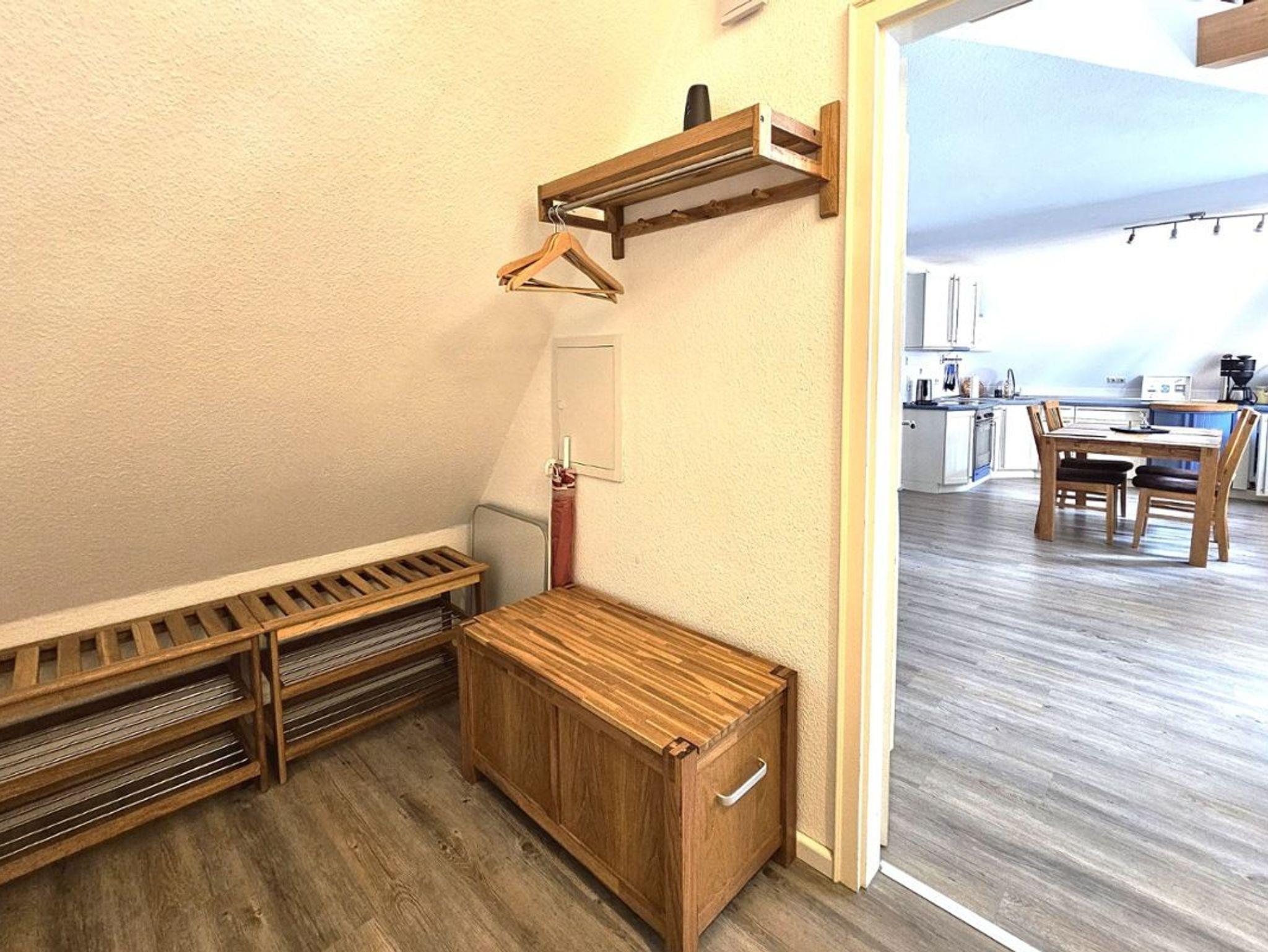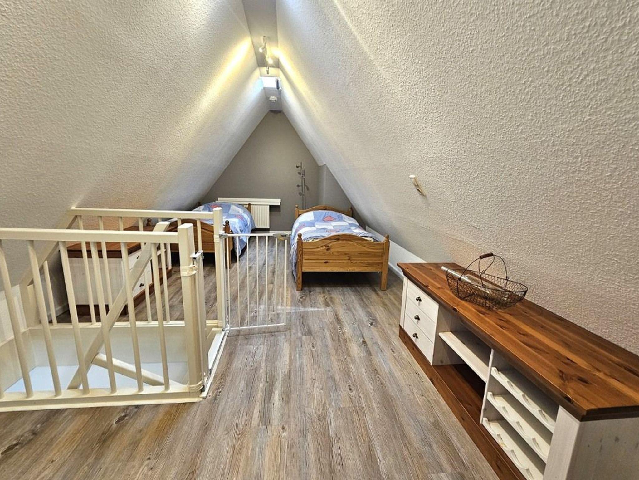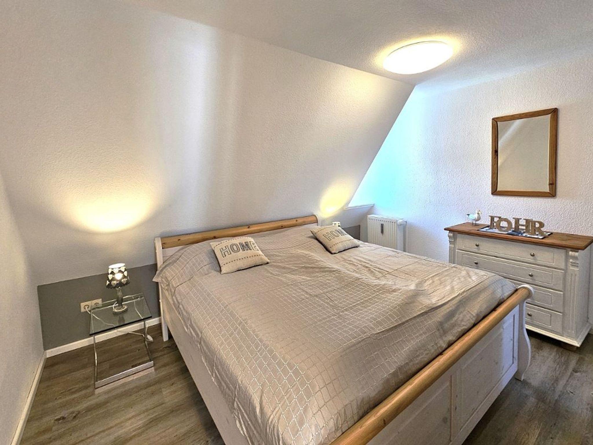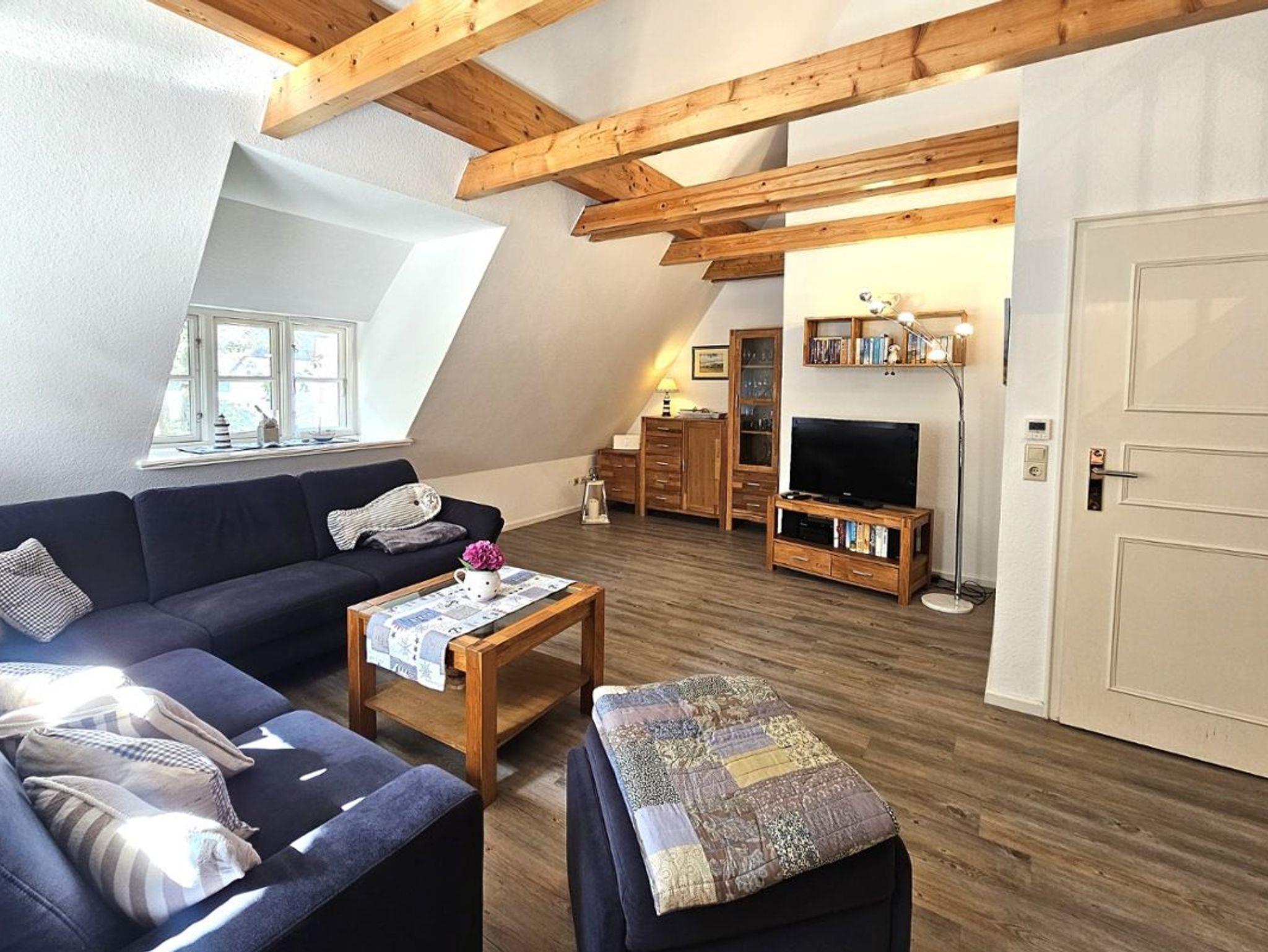 Die moderne und komfortable Ferienwohnung befindet sich unter Reet im 1. OG und bietet Platz für bis zu 4 Personen. Die komplett eingerichtete Küche enthält neben einem Backofen und Geschirrspüler auch eine Nespressomaschine und einen Sodastream. Die Wohnung verfügt über ein Schlafzimmer mit Doppelbett. Vom Wohnzimmer gelangen Sie über eine kleine Treppe in die offene Galerie, in der sich zwei Einzelbetten befinden. Ein eigener Parkplatz und eine eigene Terrasse stehen Ihnen vor dem Haus zur Verfügung.