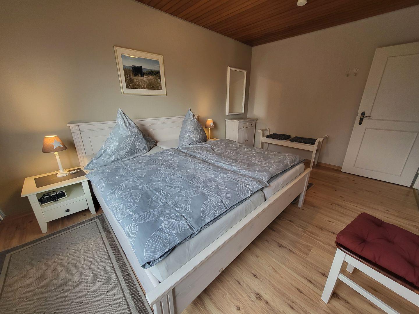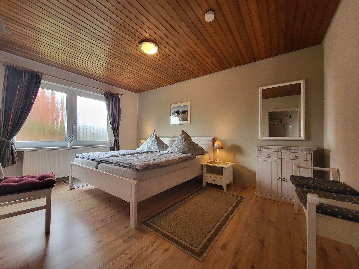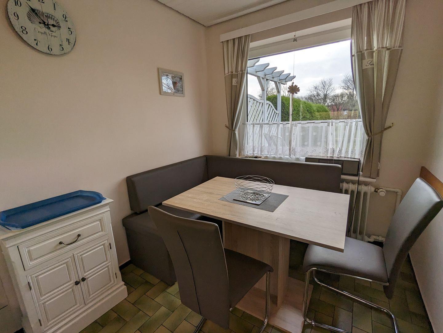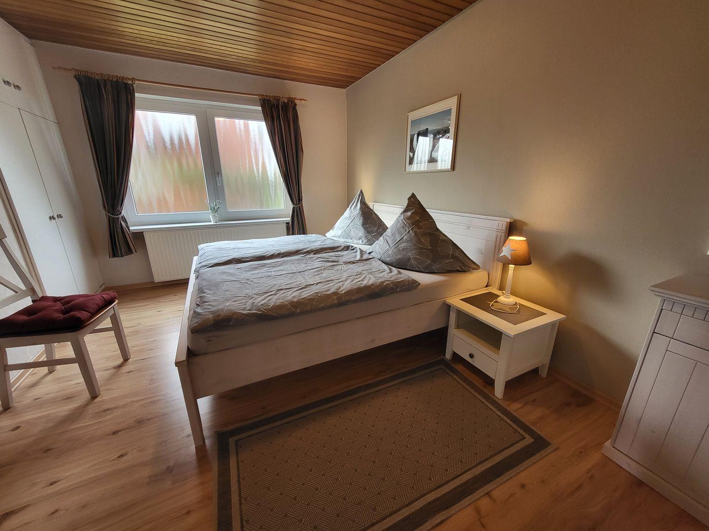 Das Haus ist wie folgt aufgeteilt: WOHNZIMMER (ein Ecksofa, ein Sessel, ein Couchtisch, Sat-TV, Radio, kostenloses WLAN), kleiner Garten mit einem Strandkorb, einer Süd-Terrasse mit Gartenmöbeln, Sonnenschirm und Markise, vollausgestattete KÜCHE mit Essbereich (u.a. Esstisch mit zwei Stühlen und einer Eckbank, Geschirrspüler, Backofen, Ceranfeld, Kühlschrank mit Gefrierfach, Kaffeemaschine, Toaster, Eierkocher, Besteck, Töpfe), SCHLAFZIMMER mit Doppelbett (180 x 200 cm), Kleiderschrank und Kommode, ein zweites SCHLAFZIMMER mit zwei Einzelbetten (ein Bett ist 90x190 cm groß, das zweite 90x 200 cm) und einem Kleiderschrank, BADEZIMMER mit Dusche, WC, Handtuchwärmer, Waschbecken, Spiegelschrank, Föhn, sowie ein FLUR mit einer kleinen Garderobe für Jacken. Ein PKW-Stellplatz befindet sich direkt am Haus. Die Fahrräder können Sie in Ihrem kleinen Garten abstellen. Eine Infrarotkabine im Haus nebenan kann mitbenutzt werden.