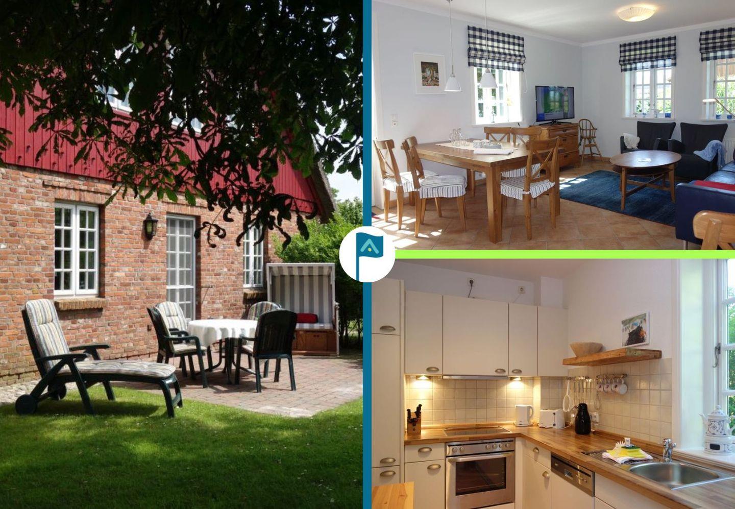 Das Hus Dikstian in Alkersum mit insgesamt 5 Wohneinheiten bietet auch befreundeten Familien die Möglichkeit "unter einem Dach" zu wohnen. Die Wohnung 1 befindet sich im hinteren Teil des Hauses, welches zum Garten gelegen ist. Sie verfügt über 3 Schlafzimmer mit 6 Betten normaler Größe. Das große Wohn/Esszimmer bietet jedem Familienmitglied ein Plätzchen. Die sep. Küche, voll eingerichtet, gibt auch dem Hobbykoch eine Chance. Das reetgedeckte Haus steht auf einem großen Grundstück, welches für alle Gäste zu nutzen ist. Zu jeder Wohnung gehört eine eigene Terrasse. Parkplatz auf dem Grundstück.