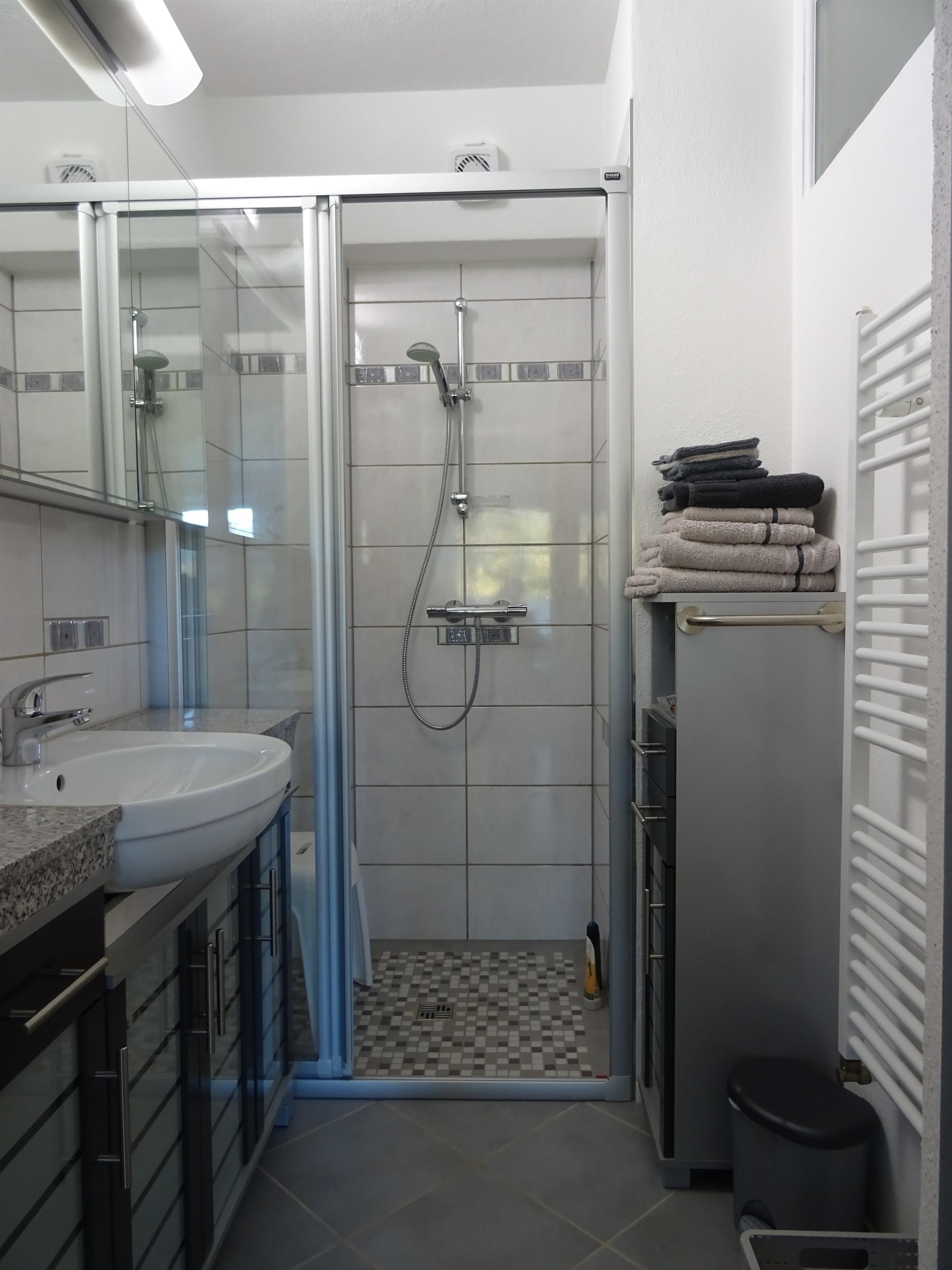 Ein separater Trockenraum mit Waschmaschine und Trockner steht Ihnen als Mitnutzer zur Verfügung. Wanderschuhe und Kleidung können entsprechend versorgt werden. Eine kleine Hausapotheke, die jedoch bestens gefüllt ist von "Armbinde" bis "Zeckenbissversorgung", steht Ihnen im Eingangsbereich ebenfalls kostenfrei zur Verfügung. Ein separater Abstellraum für mitgebrachte Sportgeräte, Fahrräder oder Wanderutensilien, befindet sich direkt neben den Garagen.