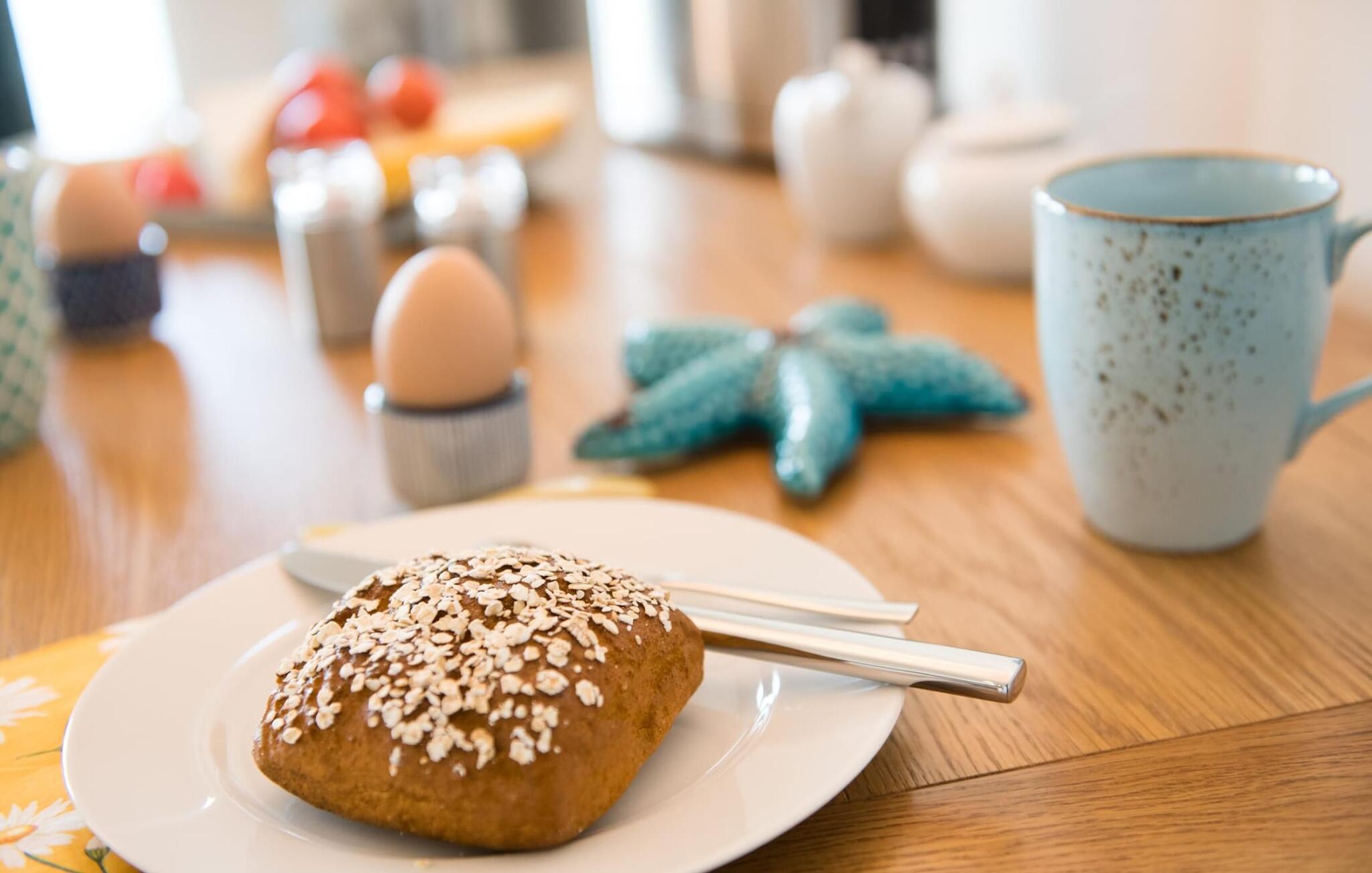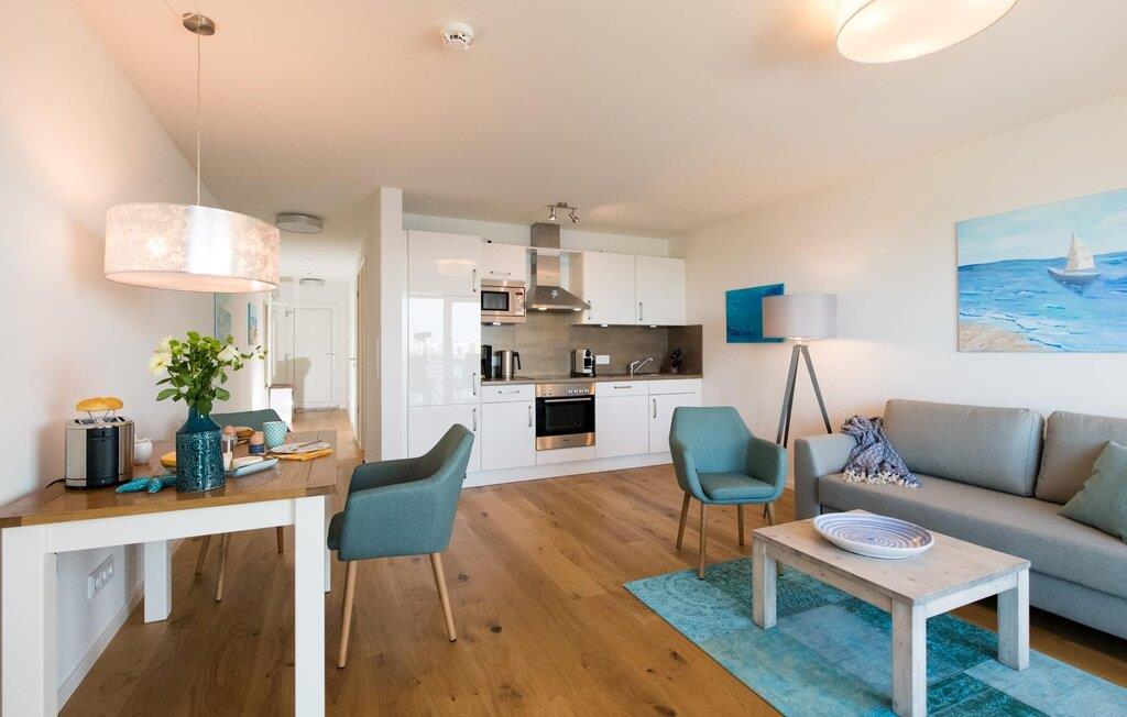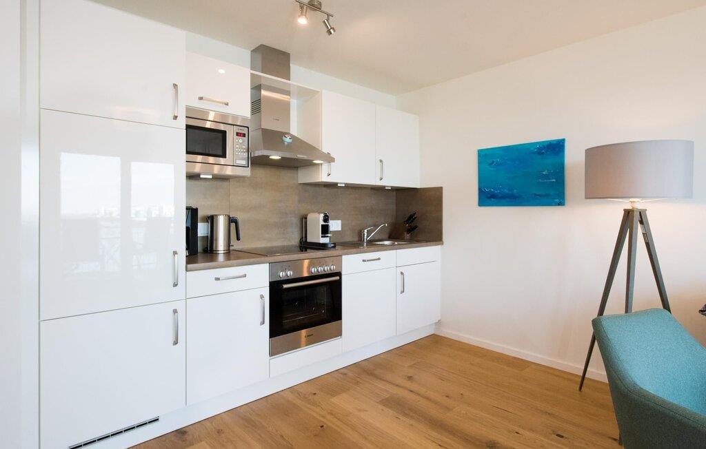 Det omfattende udstyret åbne køkken med WMF elektriske apparater lader intet tilbage at ønske. Her kan man fremtrylle lækre feriemåltider. Altanen indbyder til afslapning med foldbare afslapningsstole eller til at grille med Weber-grillen.