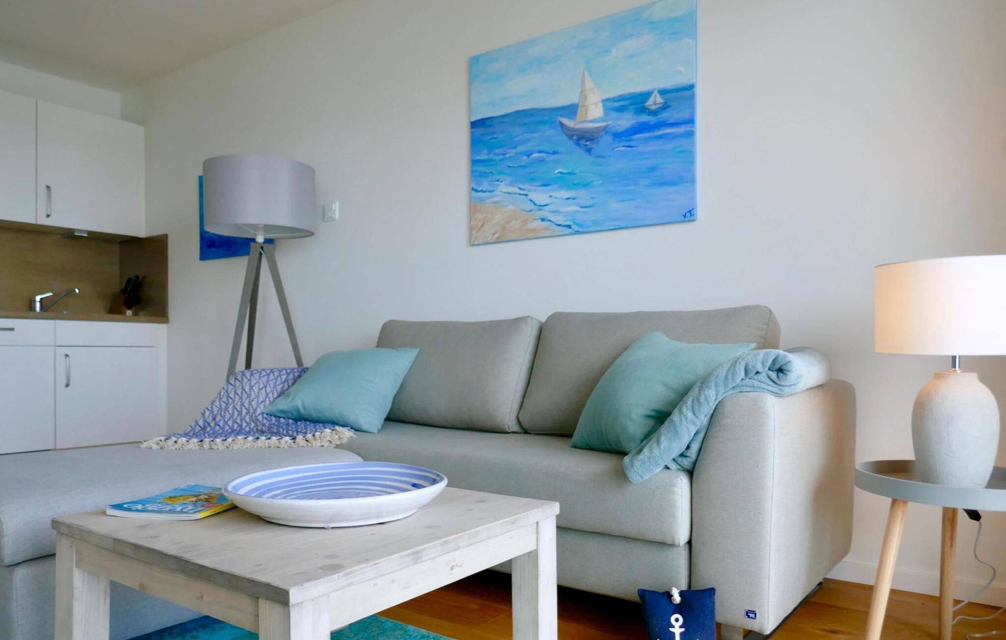 Østersøferie i en moderne ferielejlighed i første række til vandet!