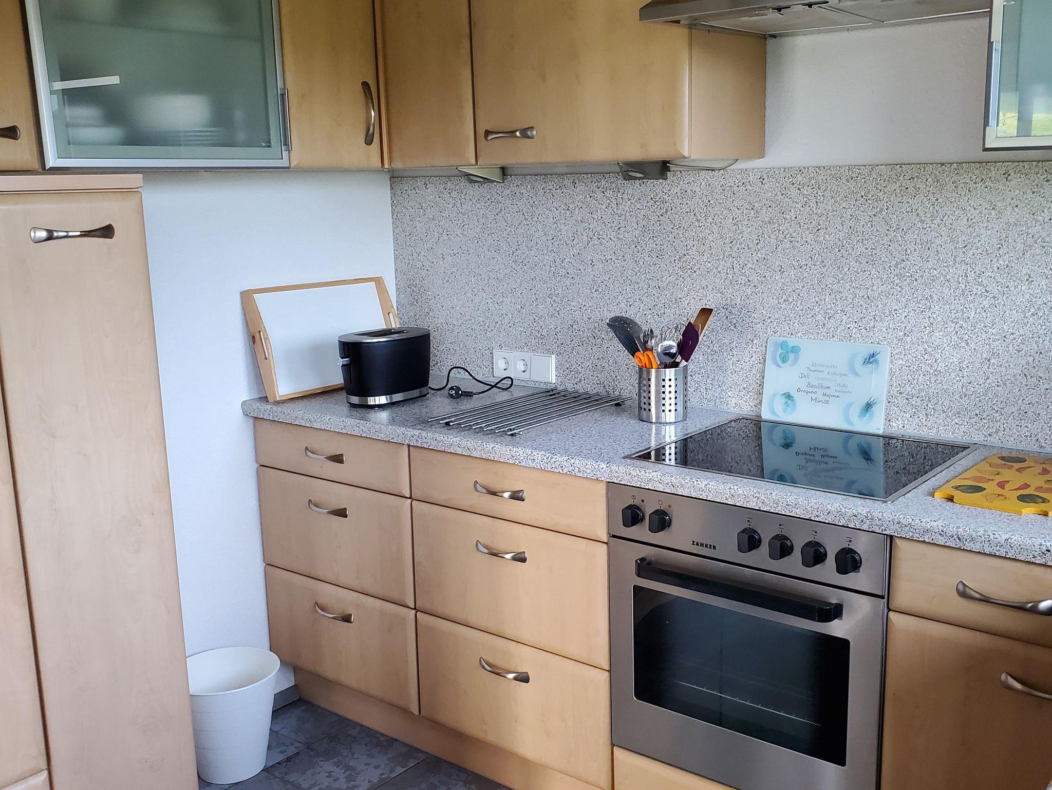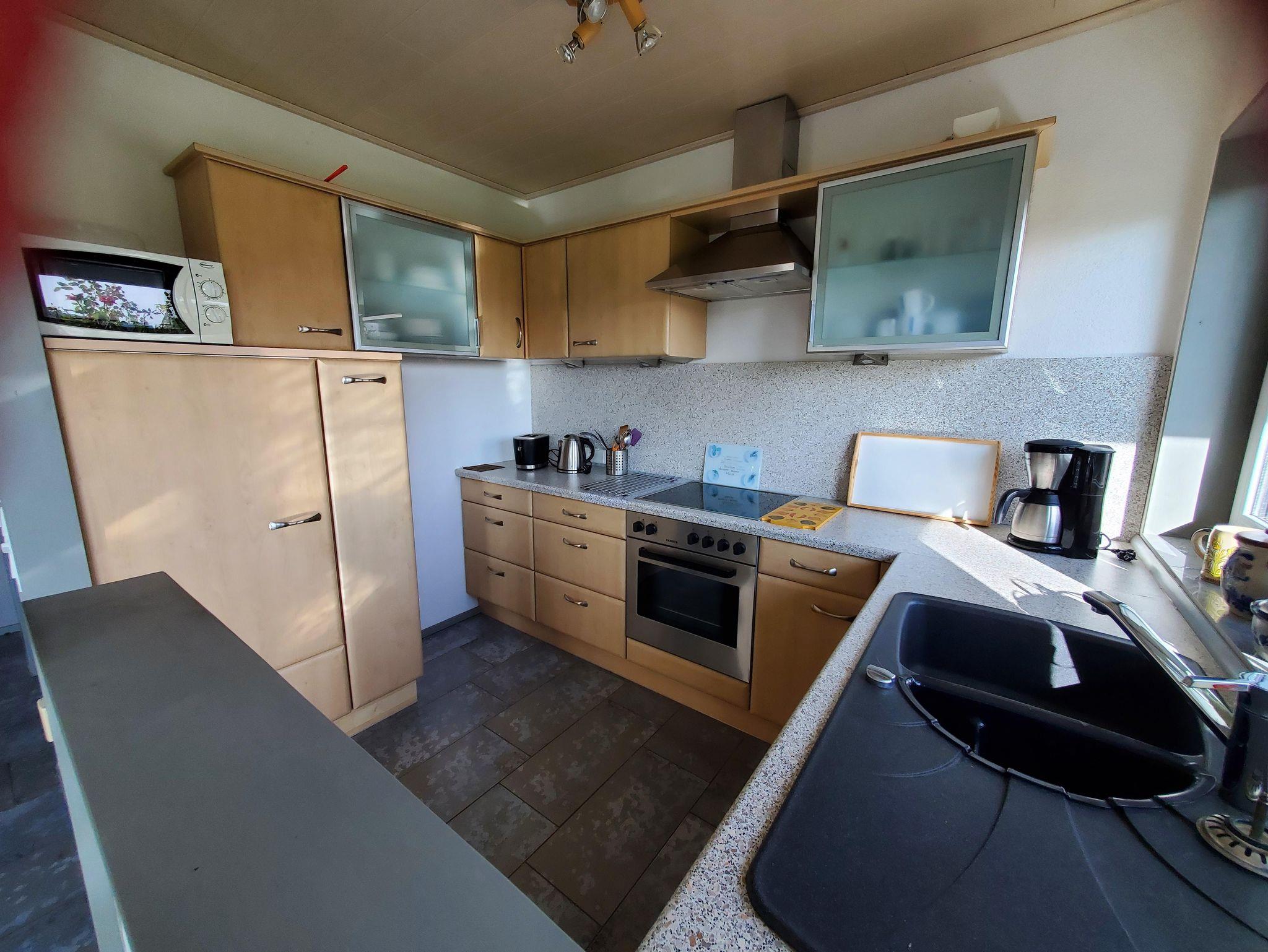 Die Küche ist komplett mit Spülmaschine, Backofen, Ceranfeld, Kühlschrank und Mikrowelle ausgestattet.