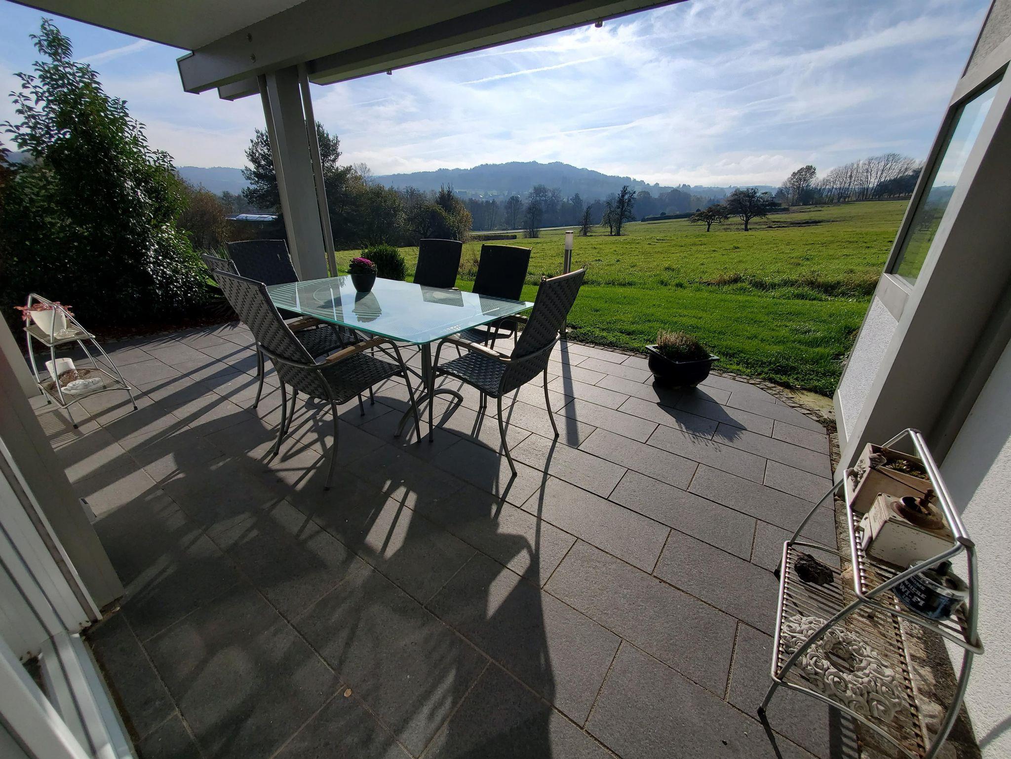 Eine nach Süden ausgerichtete überdachte Terrasse inkl. schönem Elektrogrill ist ganzjährig nutzbar und wird durch einen Windfang vor Regen u. Wind geschützt.