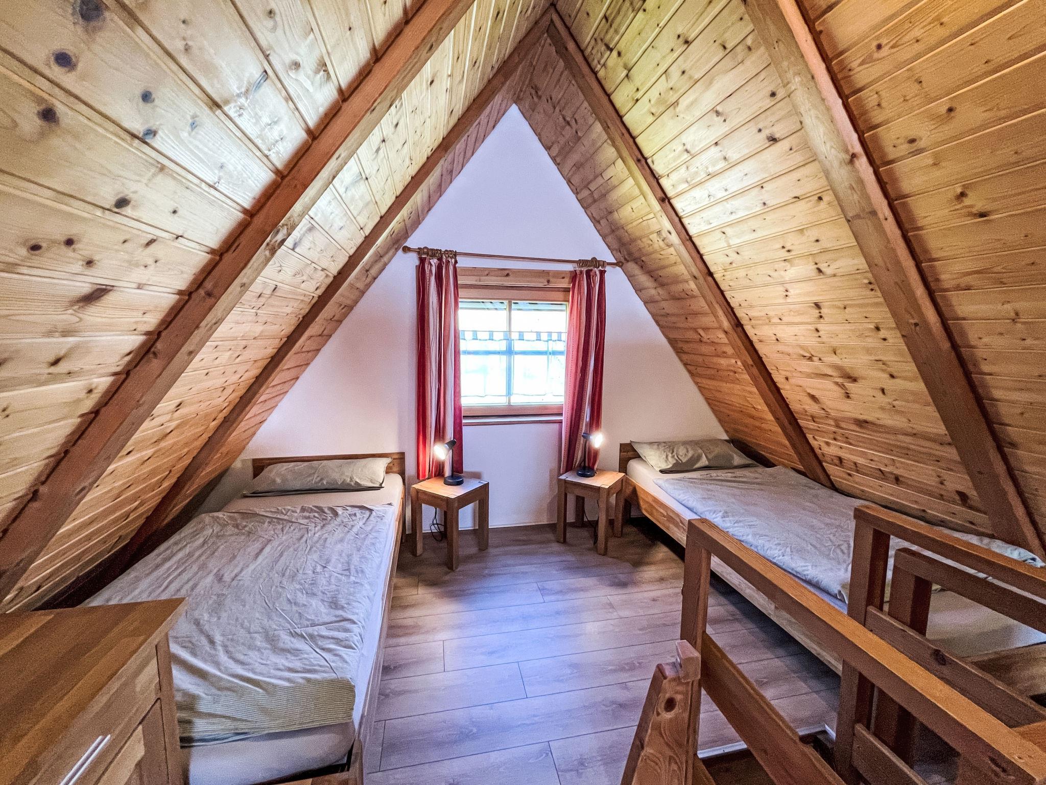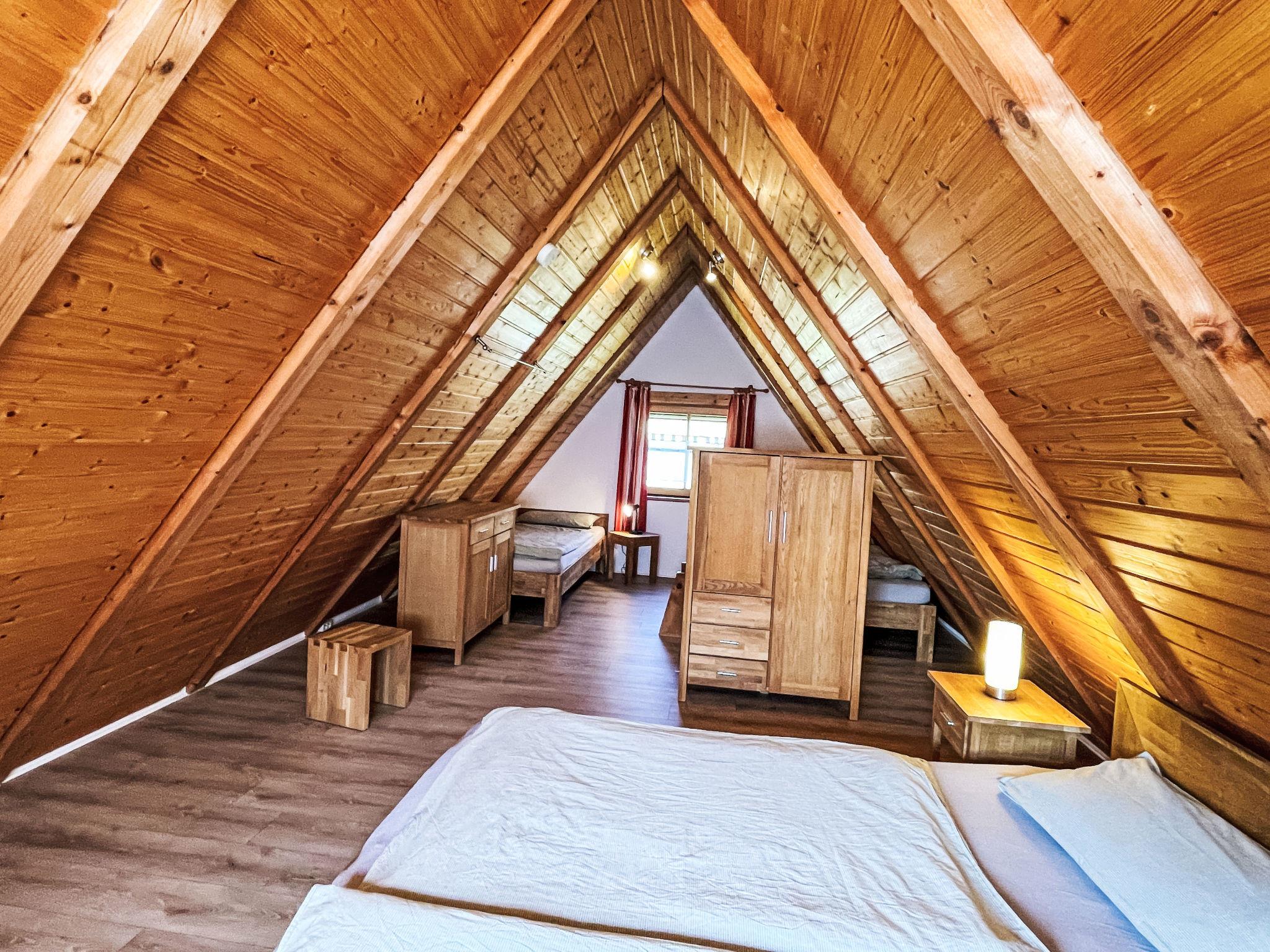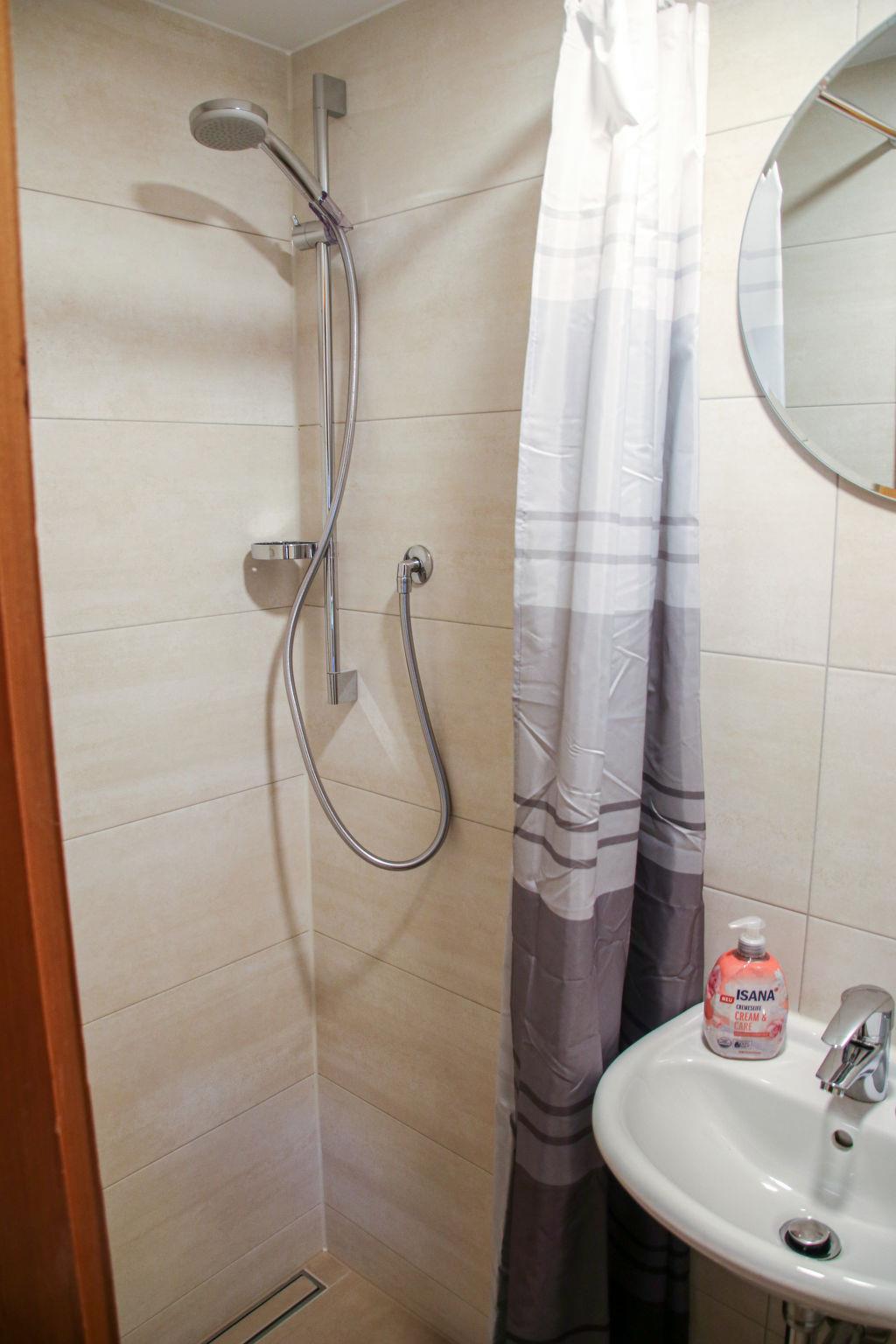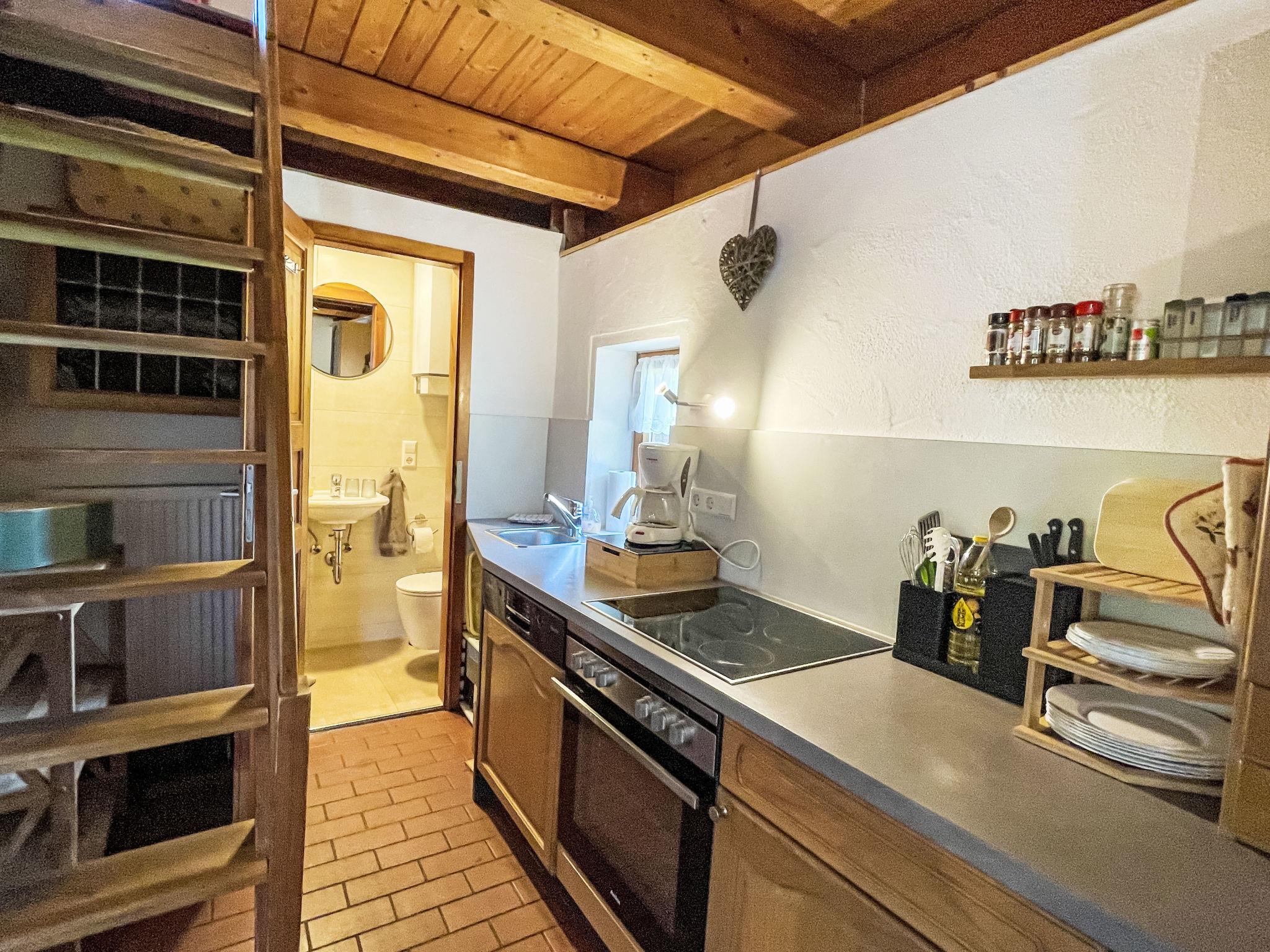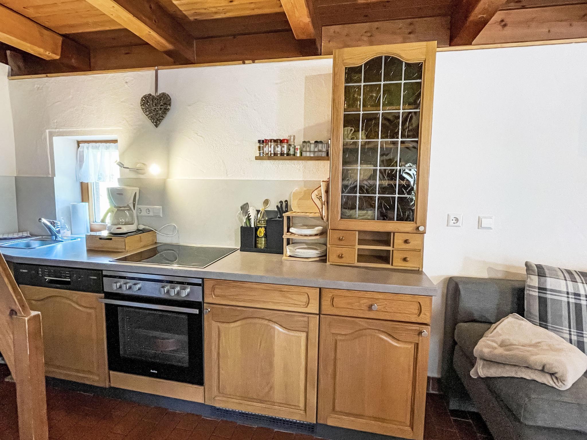 "Backhäusle", 2-room house 45 m2 on 2 levels. Simple and rustic furnishings: kitchen-/living room (oven, dishwasher, 4 ceramic glass hob hotplates, toaster, kettle, electric coffee machine) with dining table and satellite TV. Exit to the terrace. Shower/WC. Oil heating. Top floor: (steep stair), 1 open room with sloping ceilings with 2 beds and 1 double bed. Electric heating. Parquet floors. Terrace. Terrace furniture, barbecue, deck chairs. Facilities: baby cot. Please note: non-smoking house. Maximum 1 pet/ dog allowed. Smoke alarm. Note: From the kitchen-living room steep wooden stairs/ladder through open floor hatch into the attic.