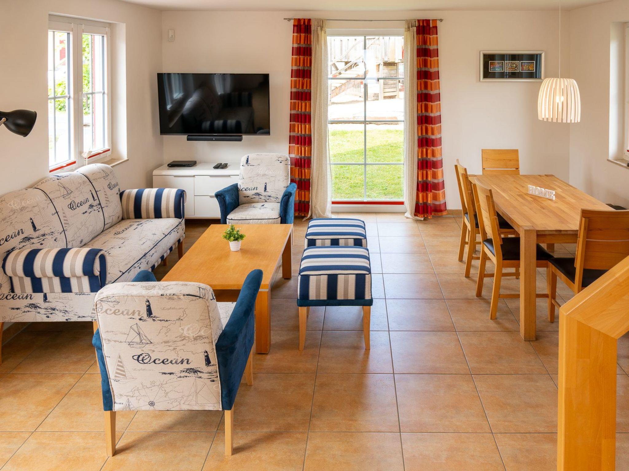 Outside, the garden for exclusive use invites you to linger and relax. A terrace with ample seating is available for cosy hours outdoors. The pool, which is intended for shared use with other guests at the Blaue Wiek Baltic Sea Park, is great fun for swimming. Here you can unwind and enjoy the fresh Baltic Sea air.