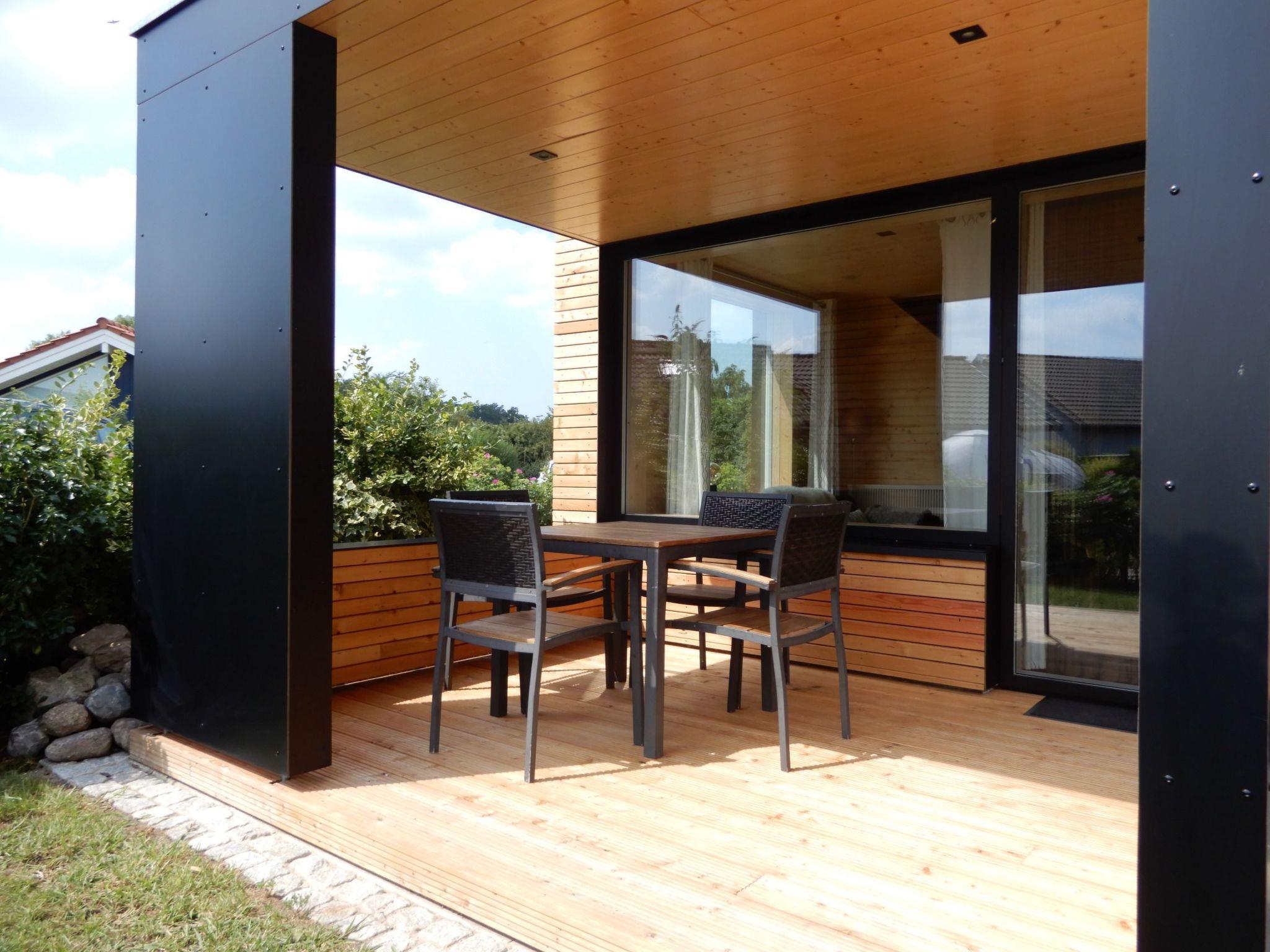 The outdoor area completes the feel-good ambience with a large, covered wooden terrace and a small lawn. The terrace serves as an extension of the living space, especially in the summer months, and offers protection from wind, rain and prying eyes. Equipped with wooden furniture and a barbecue, it invites you to linger outdoors. There is a parking space for your car right next to the house.