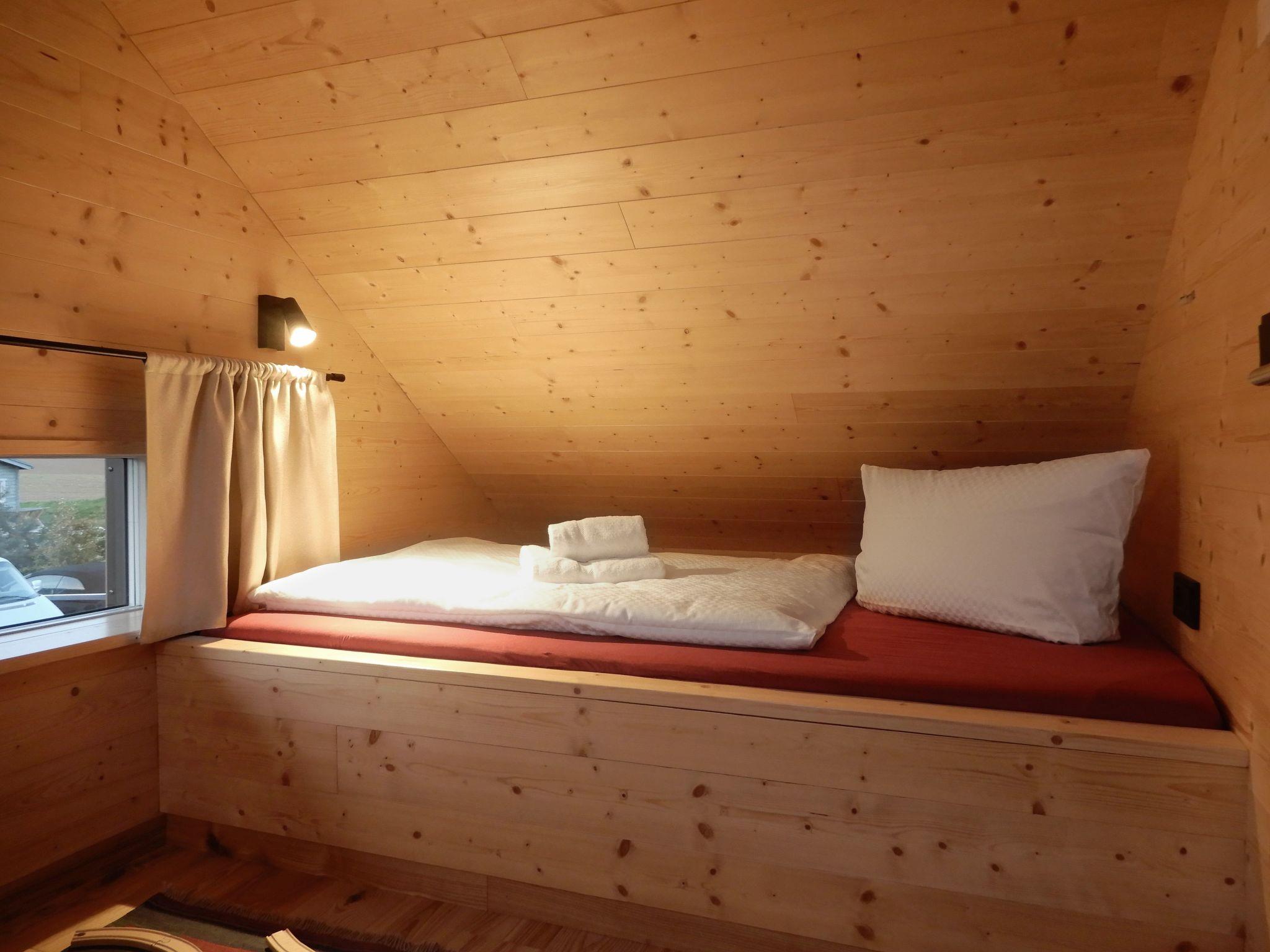 The inner values of the chalet are characterised by a fully equipped, open-plan kitchen that leaves nothing to be desired. With a fridge, freezer compartment, ceramic hob, oven, extractor bonnet, dishwasher, sink, kettle, coffee machine and toaster, it has everything your heart desires. There are also pots and pans, crockery and all the utensils needed for up to four people. The cosy bedrooms, one with a 1.80 m wide double bed and the other with two single beds, together with the high-quality bedding, ensure a restful night's sleep. The modern bathroom has a rain shower and pleasant underfloor heating.