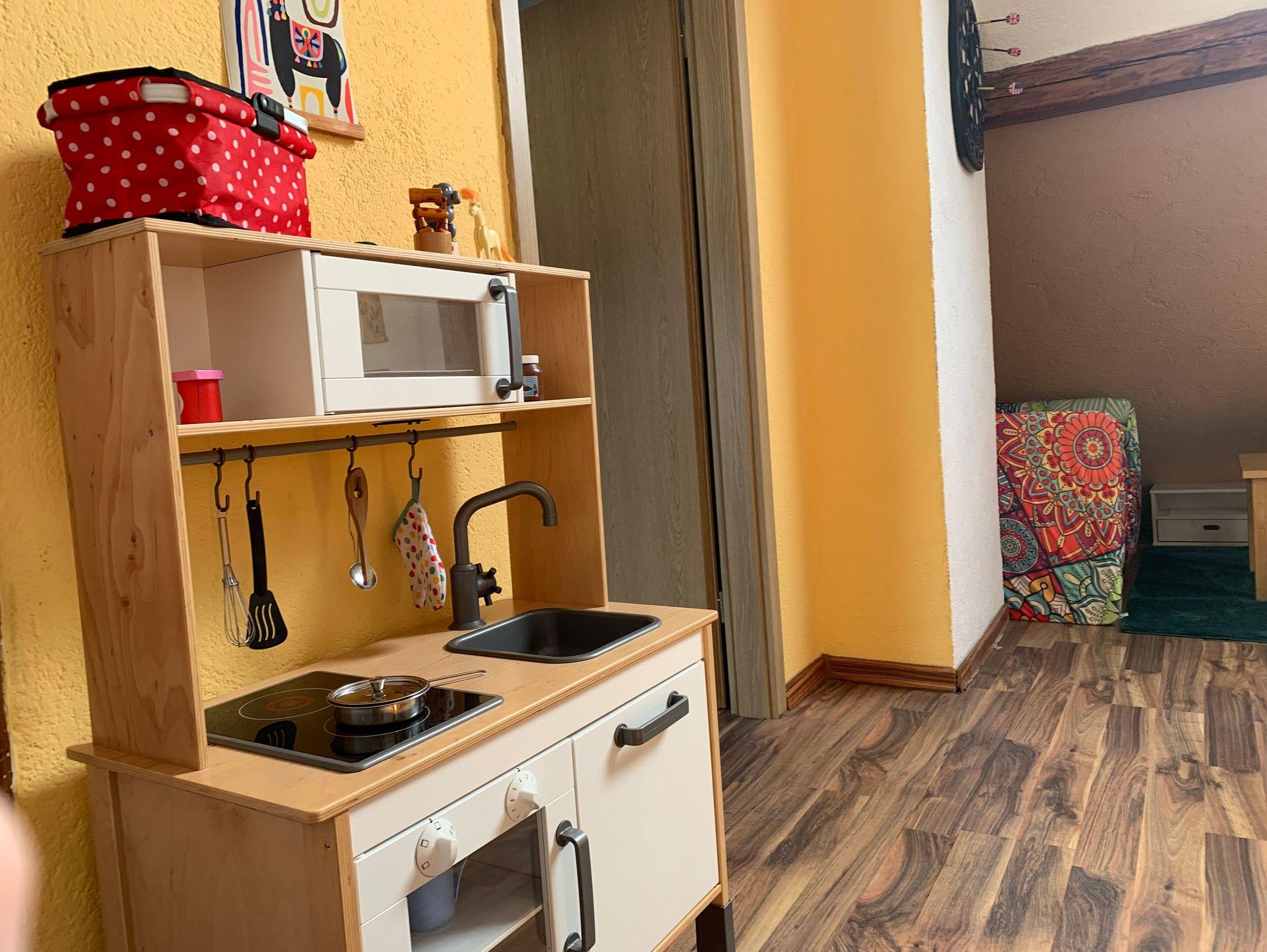 Für Ihre Kinder gibt es zusätzlich auf der Galerie einen Spielbereich mit allerhand Zeitvertreib, so dass genug Zeit für einen gemütlichen Kaffee auf der Terasse bleibt. Die Galerie ist dabei mit einem Treppenschutzgitter gesichert, damit einem unbesorgtem Spiel nichts im Wege steht.