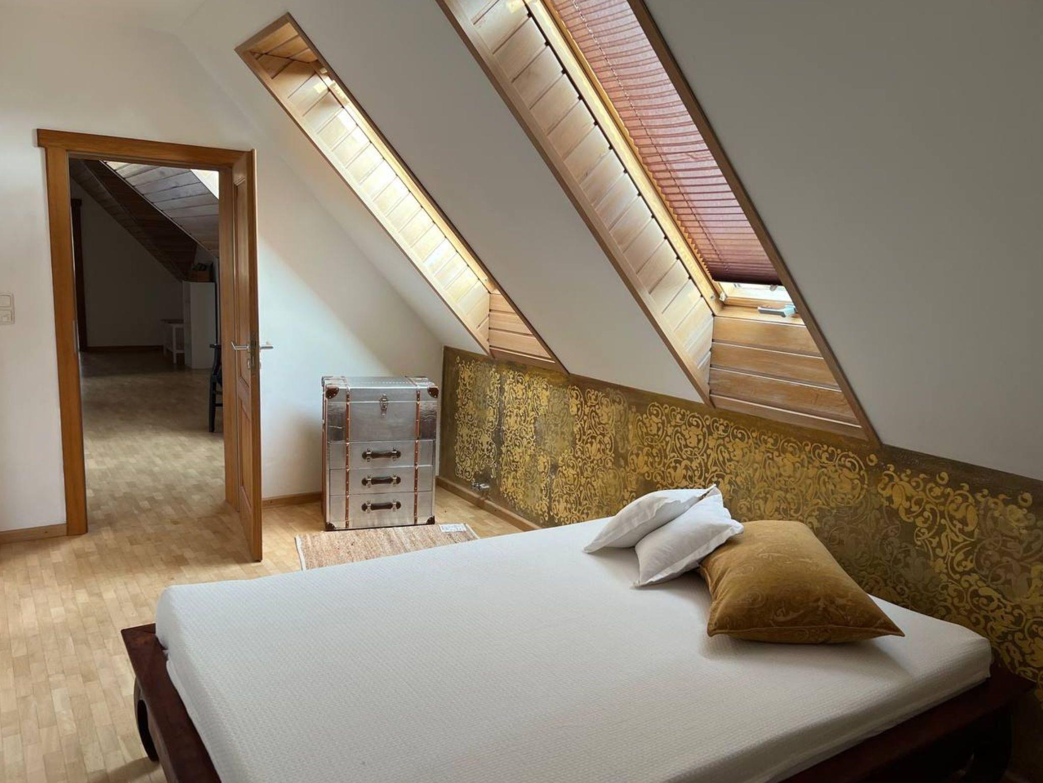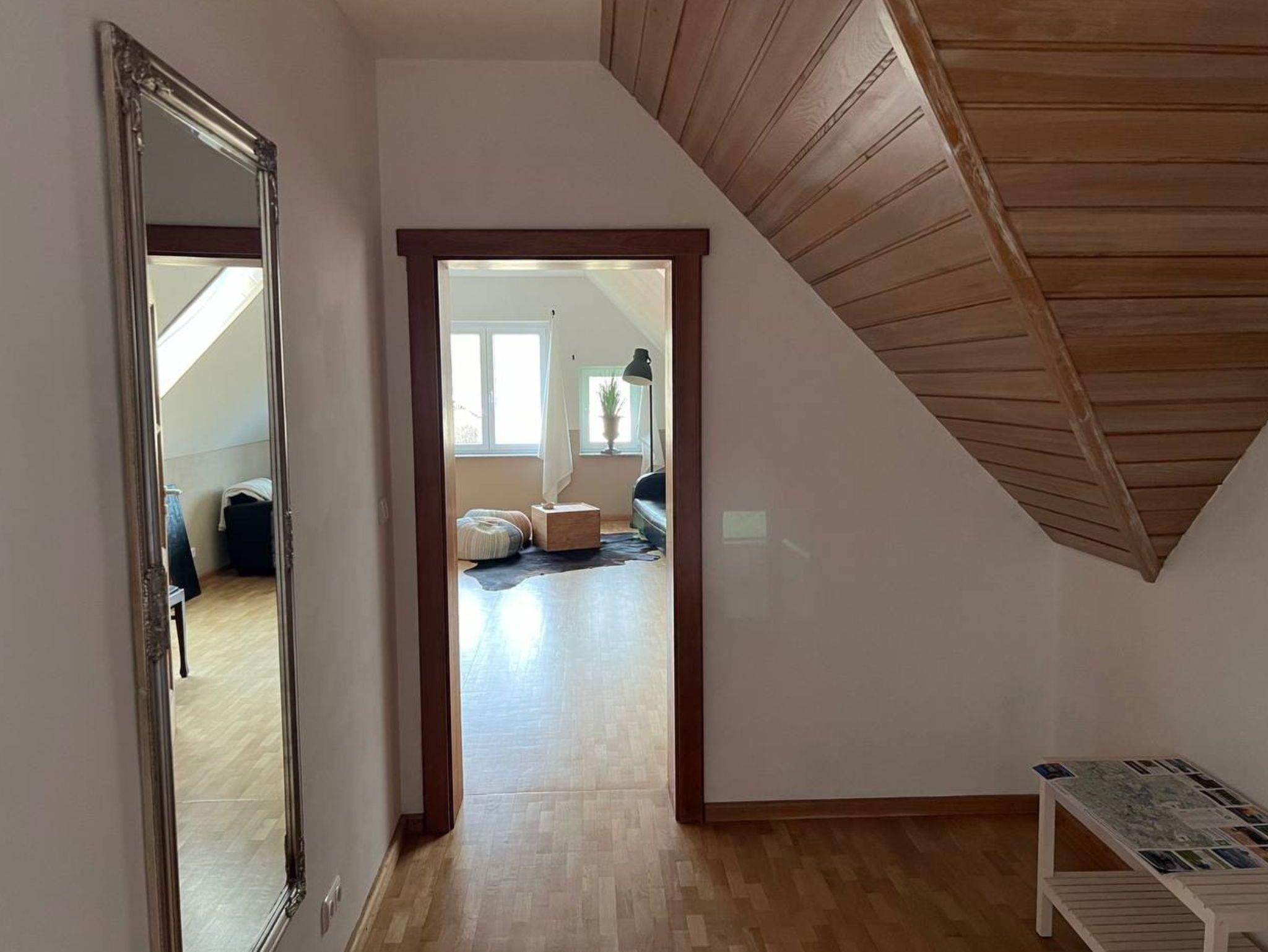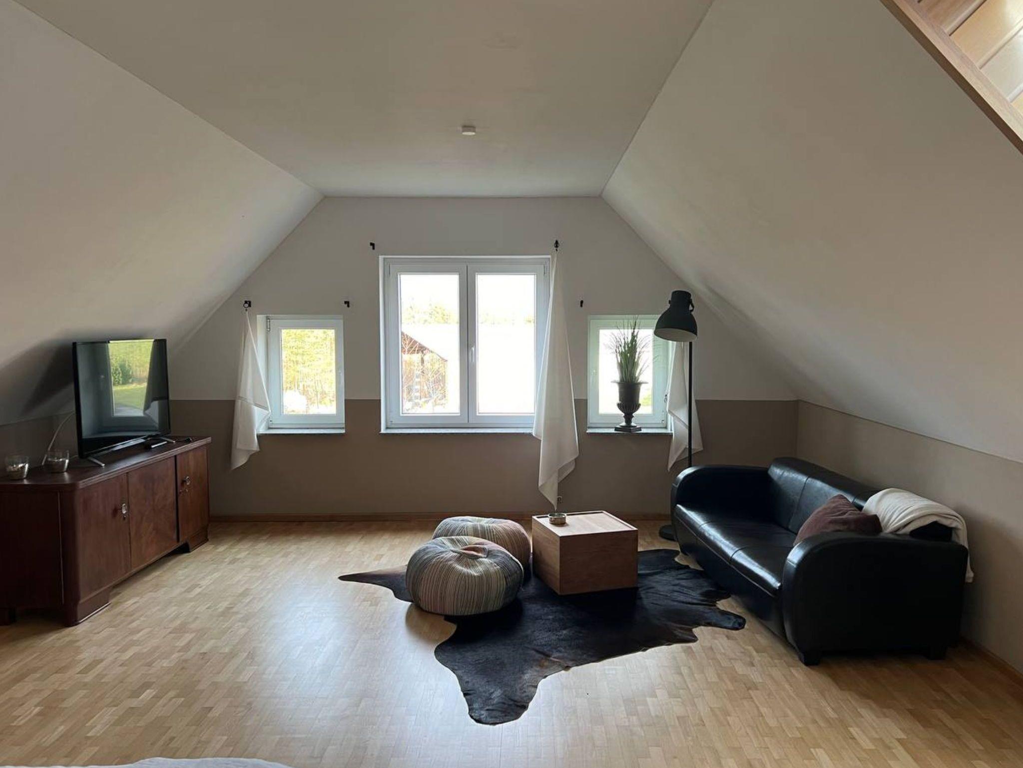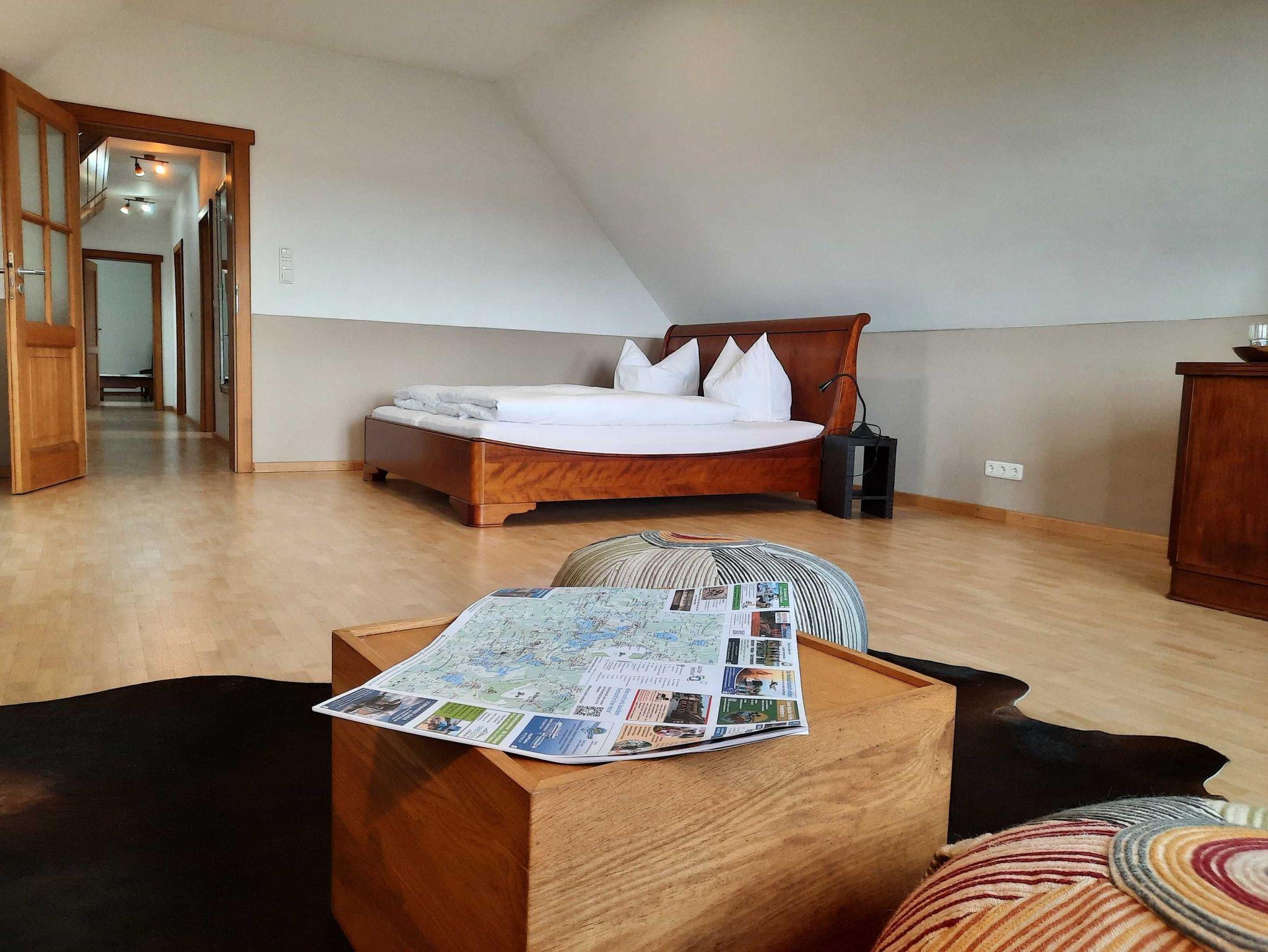 Für 1-4 Personen bietet die 90 qm Dachgeschoss Wohnung alles was für entspannte Tage benötigt wird. Es erwartet Sie eine helle, voll ausgestattete Wohnung OHNE Verpflegung. Ein kombinierter Wohn-Schlafraum mit einem Doppelbett (180x180) und einem separaten Schlafraum mit einem französsischem Bett (140x180), die Küche ist komplett ausgestattet und bietet Platzmöglichkeiten für 4 Personen. Das Bad ist mit einer Badewanne und Duche/WC sehr geräumig.
