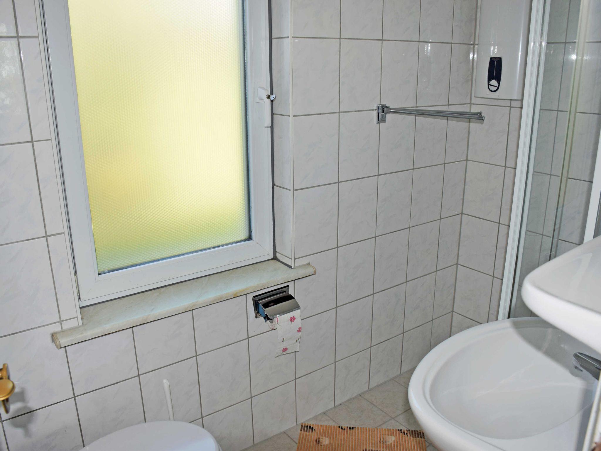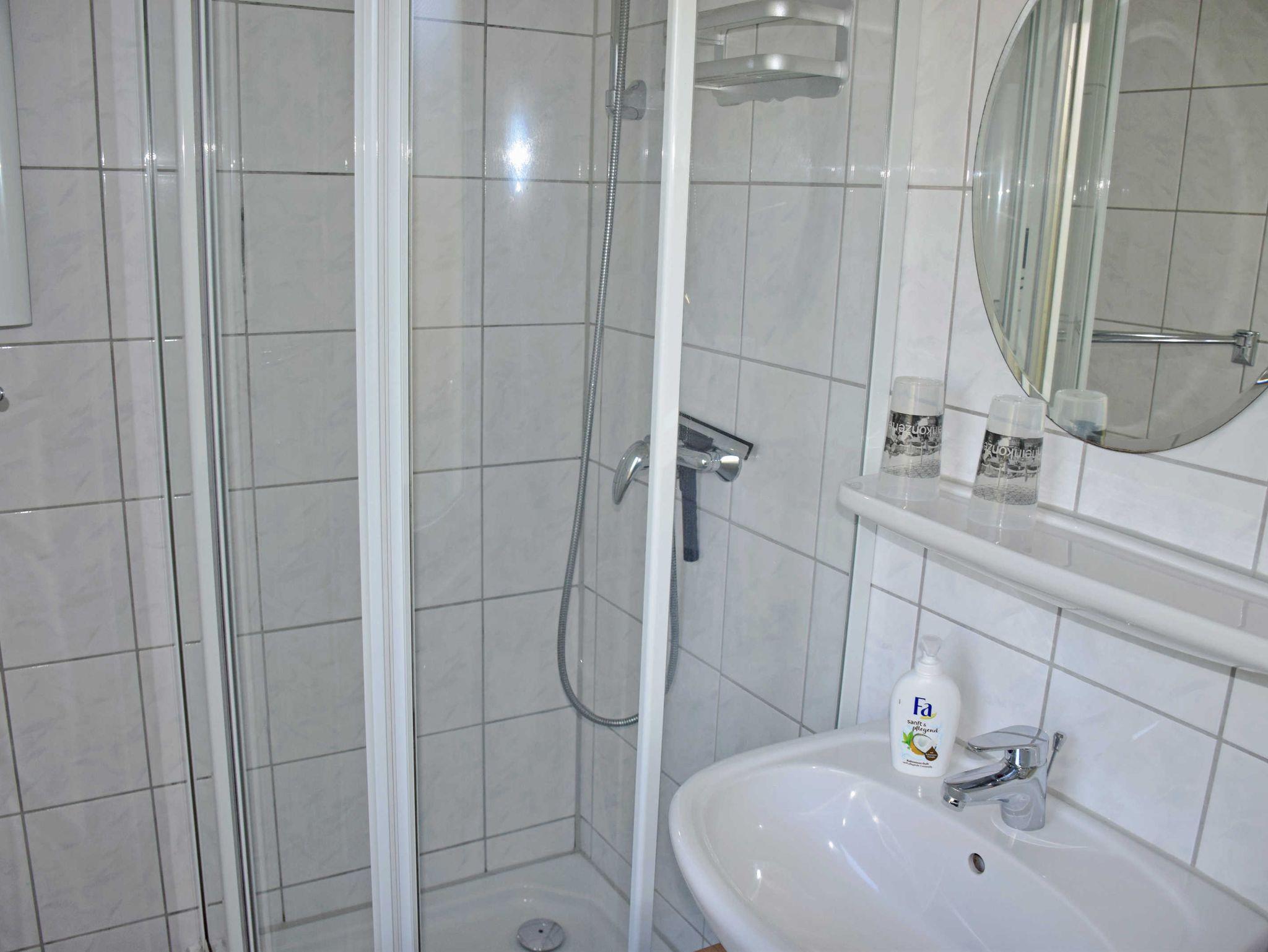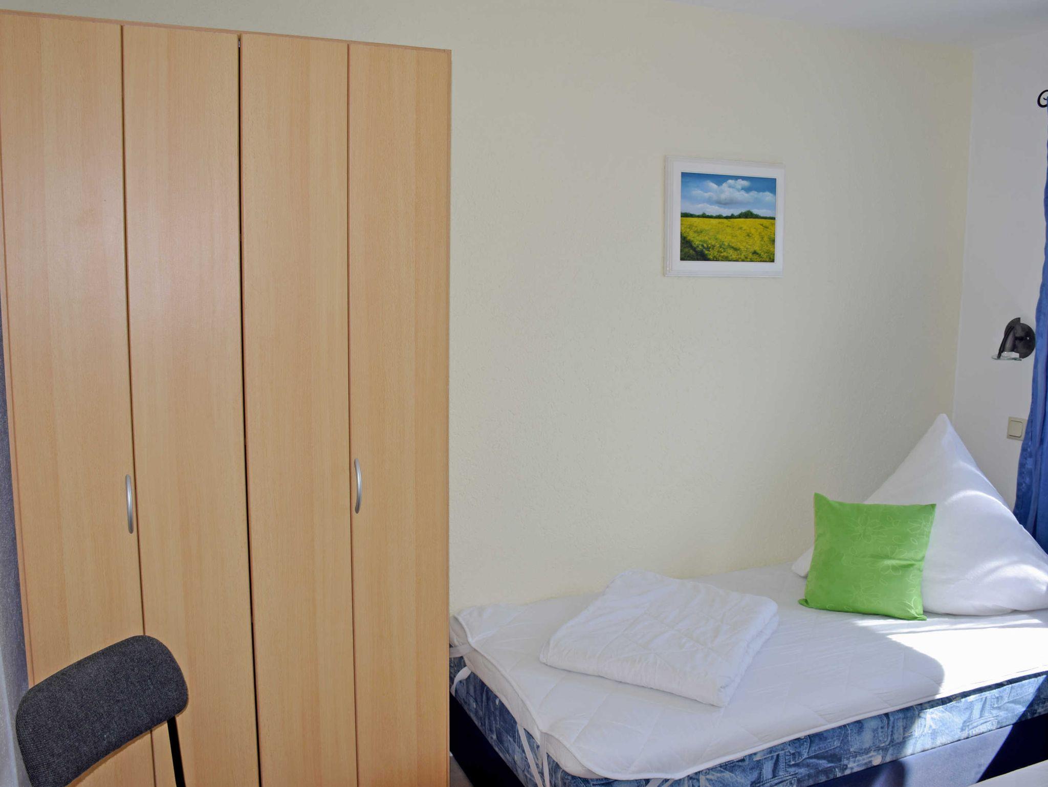 Das Schlafzimmer verfügt über zwei Einzelbetten mit Nachttischen und Leselampen sowie einen Kleiderschrank. Das helle Bad bietet eine Dusche, Waschtisch und WC, es verfügt über Tageslicht. Bei Ihrer Anreise sind die Betten bereits mit Bettwäsche bezogen. Handtücher können Sie selbst mitbrungen oder gegen Aufpreis zubuchen.