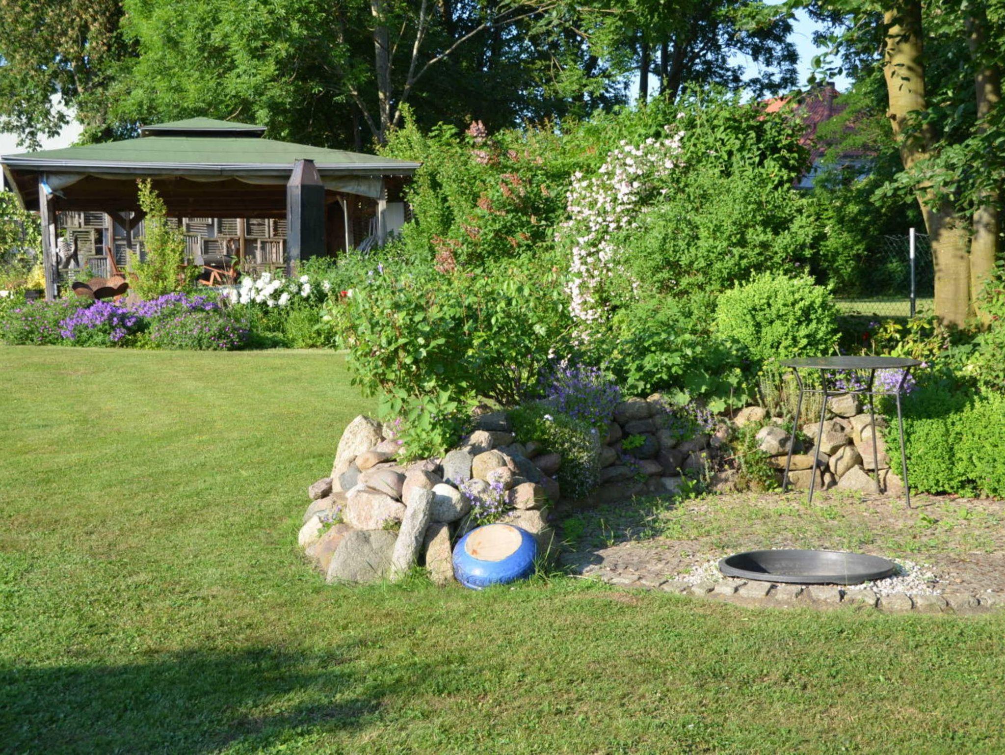 Auf der Terrasse im Garten befinden sich die Gartenmöbel sowie ein Grill. Hier ist auch eine große Wiese zum Spielen und Sonnen. Parkmöglichkeiten sind kostenlos auf dem Grundstück zu nutzen.