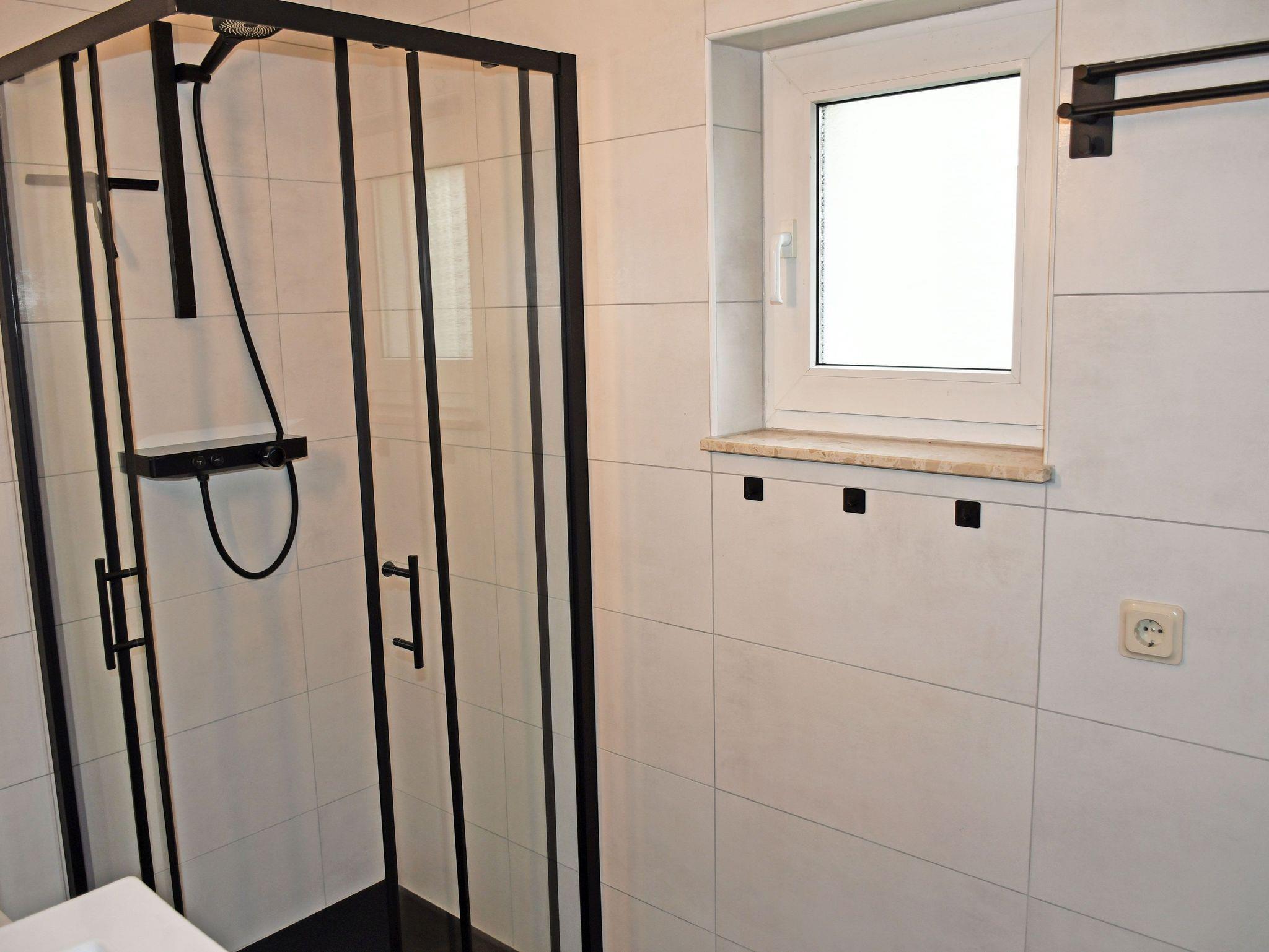 Das Schlafzimmer verfügt über ein bequemes Doppelbett mit Nachttischen und Leselampen sowie einen Kleiderschrank. Das helle Bad bietet eine Dusche, Waschtisch und WC, es verfügt über Tageslicht.