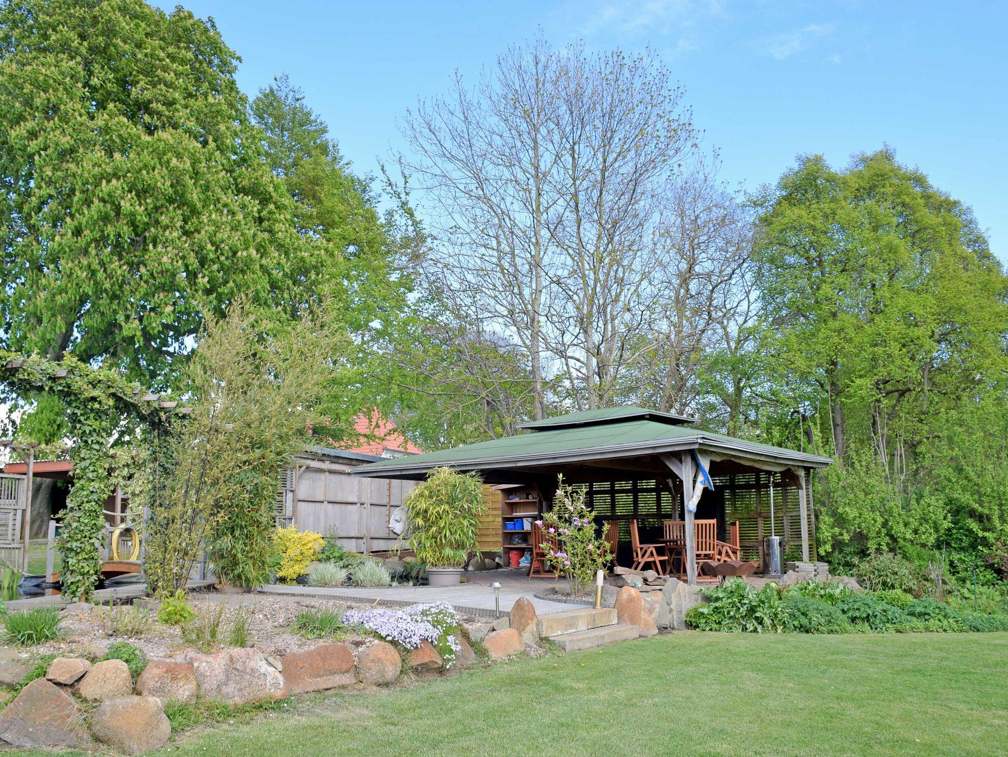 Im Garten können Gäste dieser Ferienwohnung eine Terrasse mit Gartenmöbeln und Grillmöglichkeit nutze