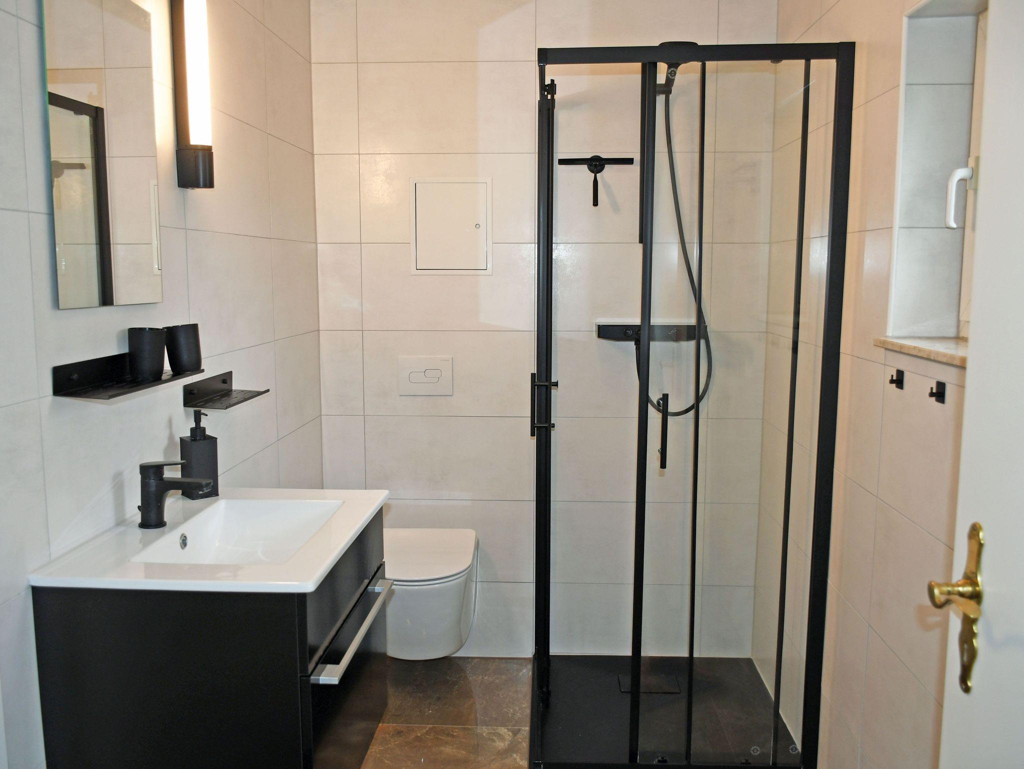 Das Schlafzimmer verfügt über ein bequemes Doppelbett mit Nachttischen und Leselampen sowie einen Kleiderschrank. Das helle Bad bietet eine Dusche, Waschtisch und WC, es verfügt über Tageslicht. Bei Ihrer Anreise sind die Betten bereits mit Bettwäsche bezogen. Handtücher können Sie selbst mitbrungen oder gegen Aufpreis zubuchen.