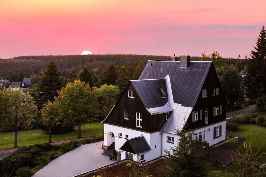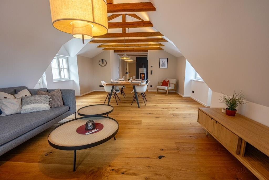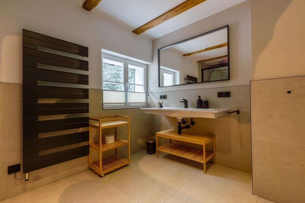 There is space and relaxation for the whole family on over 100m². Here, the four of you can simply be together and share unforgettable experiences. A family pizza can be easily conjured up in the open and spacious kitchen. You can toast your friends to a delicious meal and spend a fun evening playing games at the large dining table right in front of the warm fireplace. The cozy living area and the view towards the Ore Mountains forest invite you to cozy evenings. The two bedrooms with double beds and a color-lit wellness shower round off the comfort.